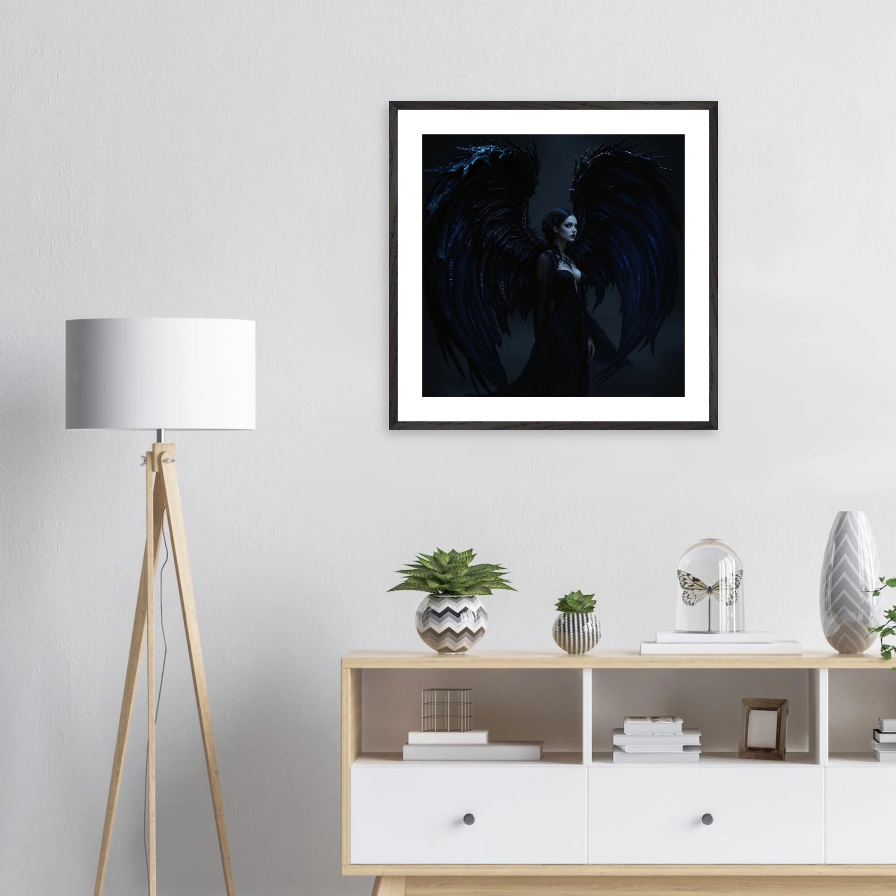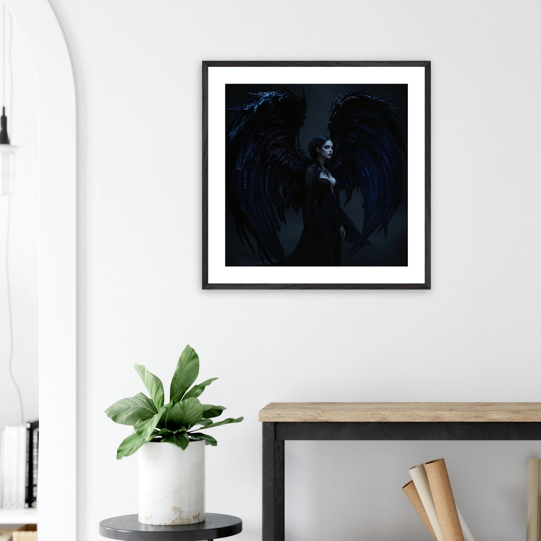 Dieses Premium-Poster aus der Dark Angel-Serie zeigt dunkle Schönheit in all ihrer Tiefe. Der elegante Rahmen bringt das Motiv auf ruhige, aber kraftvolle Weise zur Geltung – perfekt für moderne Räume mit Charakter.