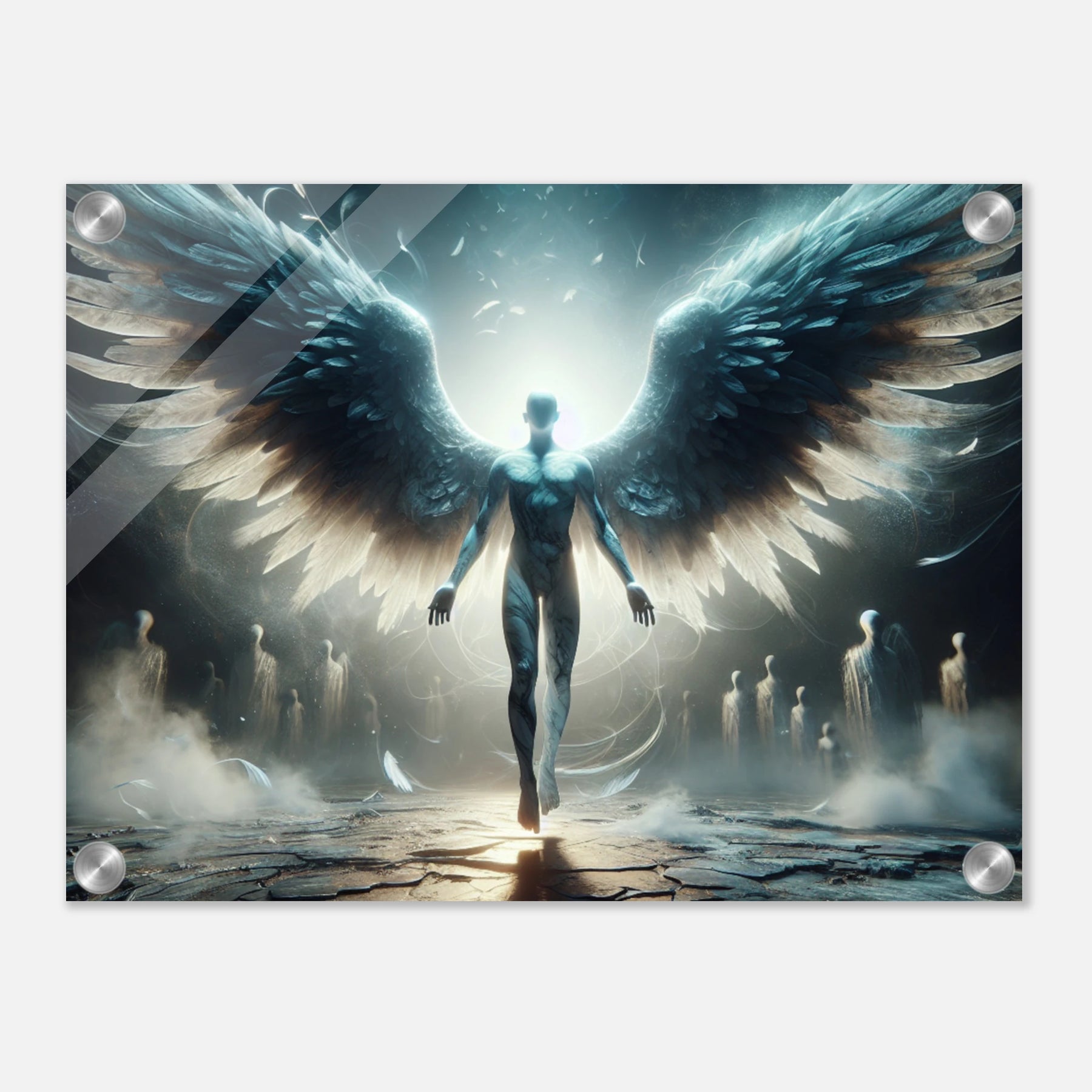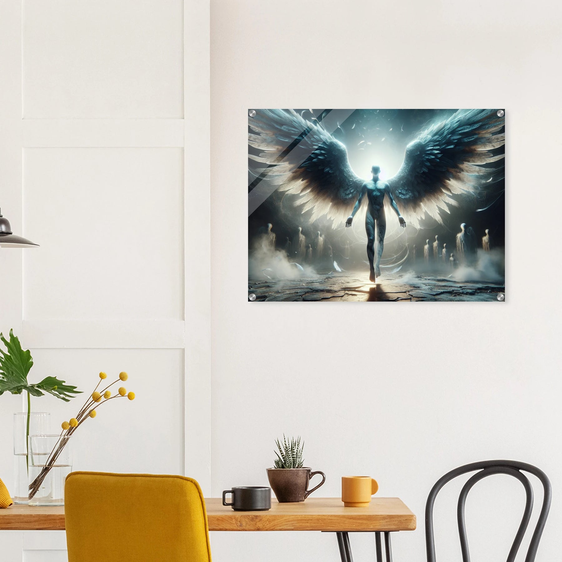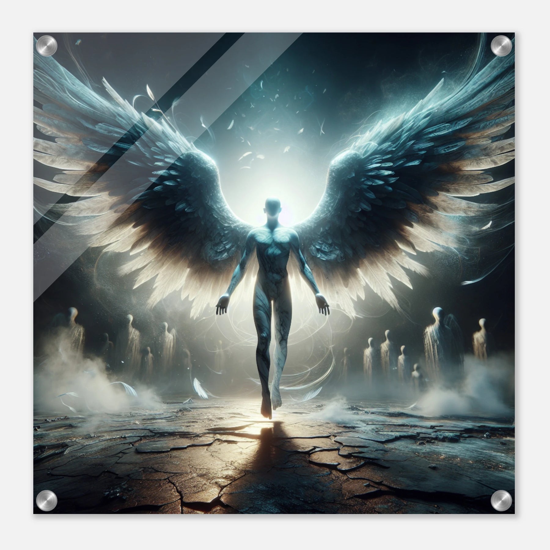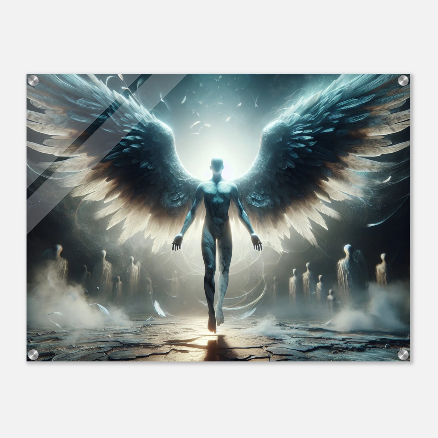 Acrylglasdruck: Männlicher Engel steht im Jüngsten Gericht, Welt bereits untergegangen, eindrucksvolle Wandkunst für Liebhaber von apokalyptischen Szenen und dramatischer Kunst