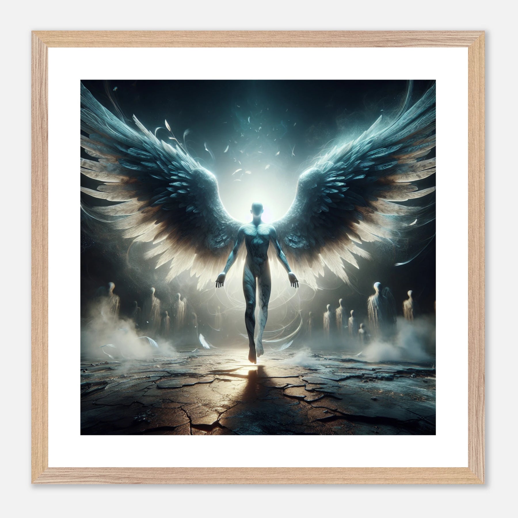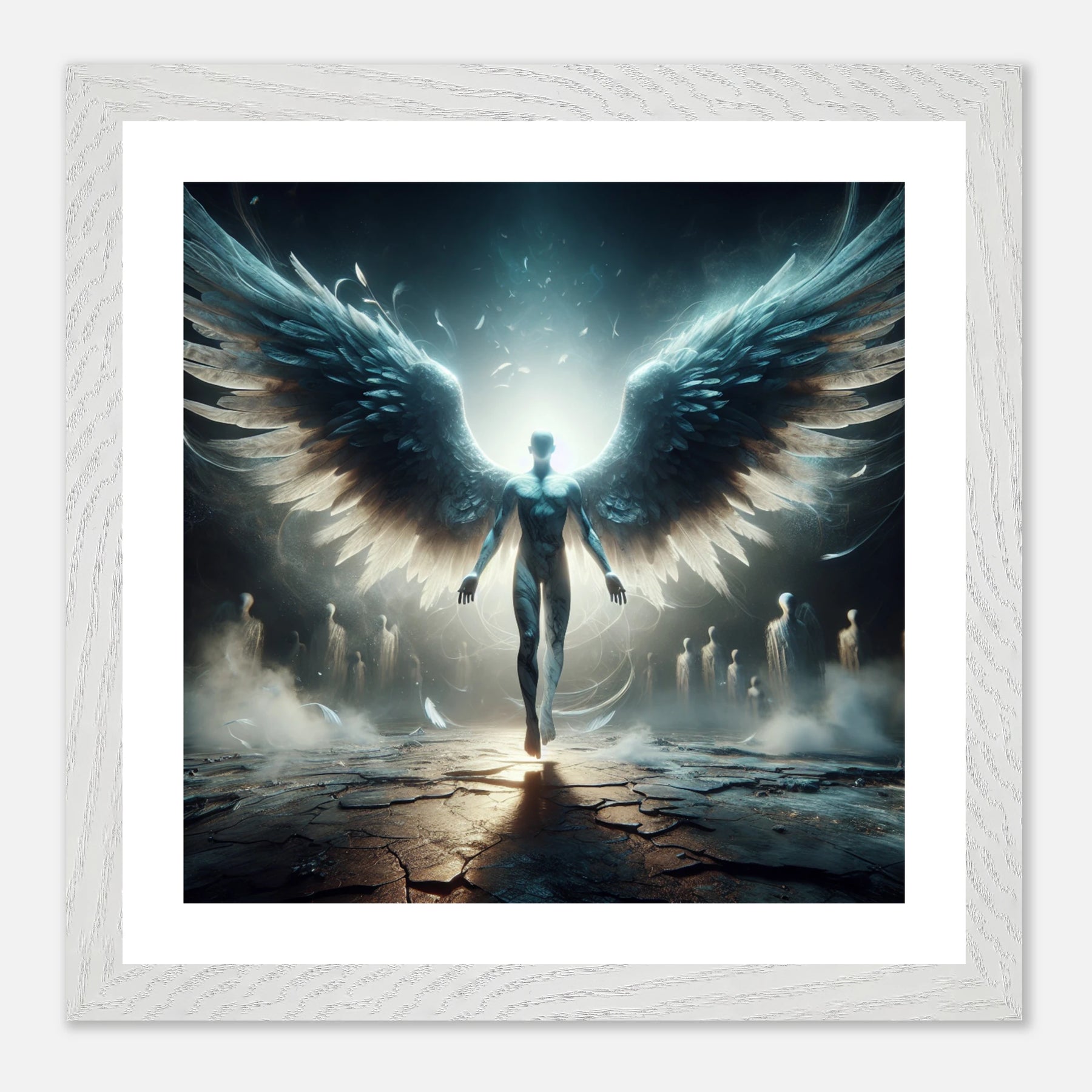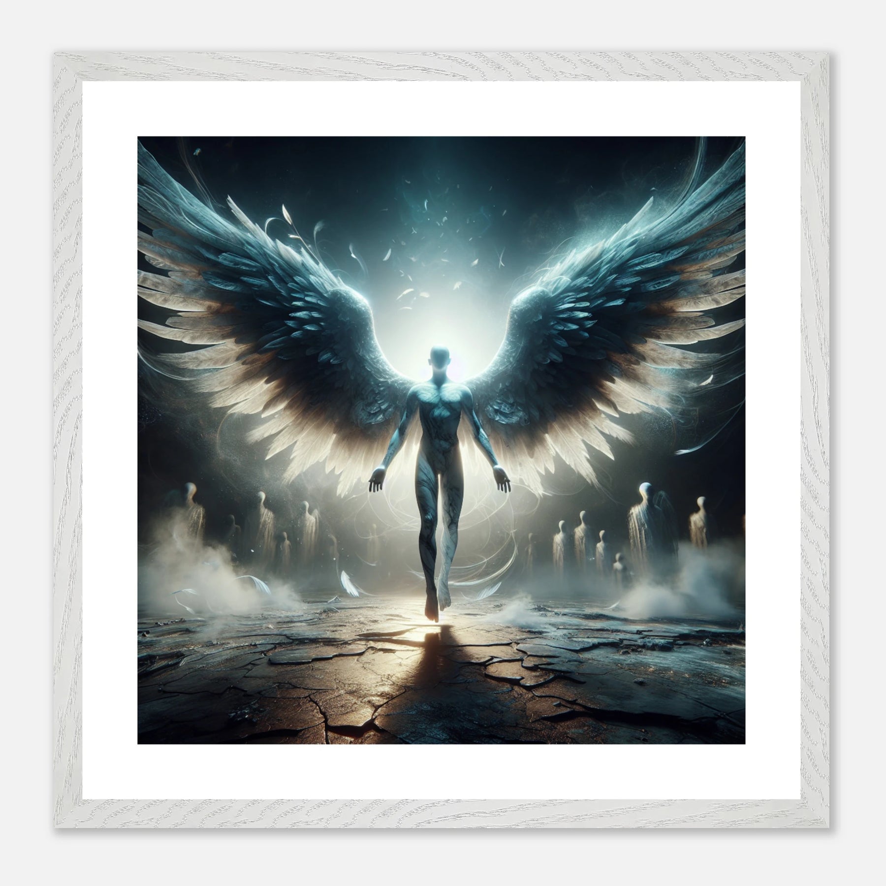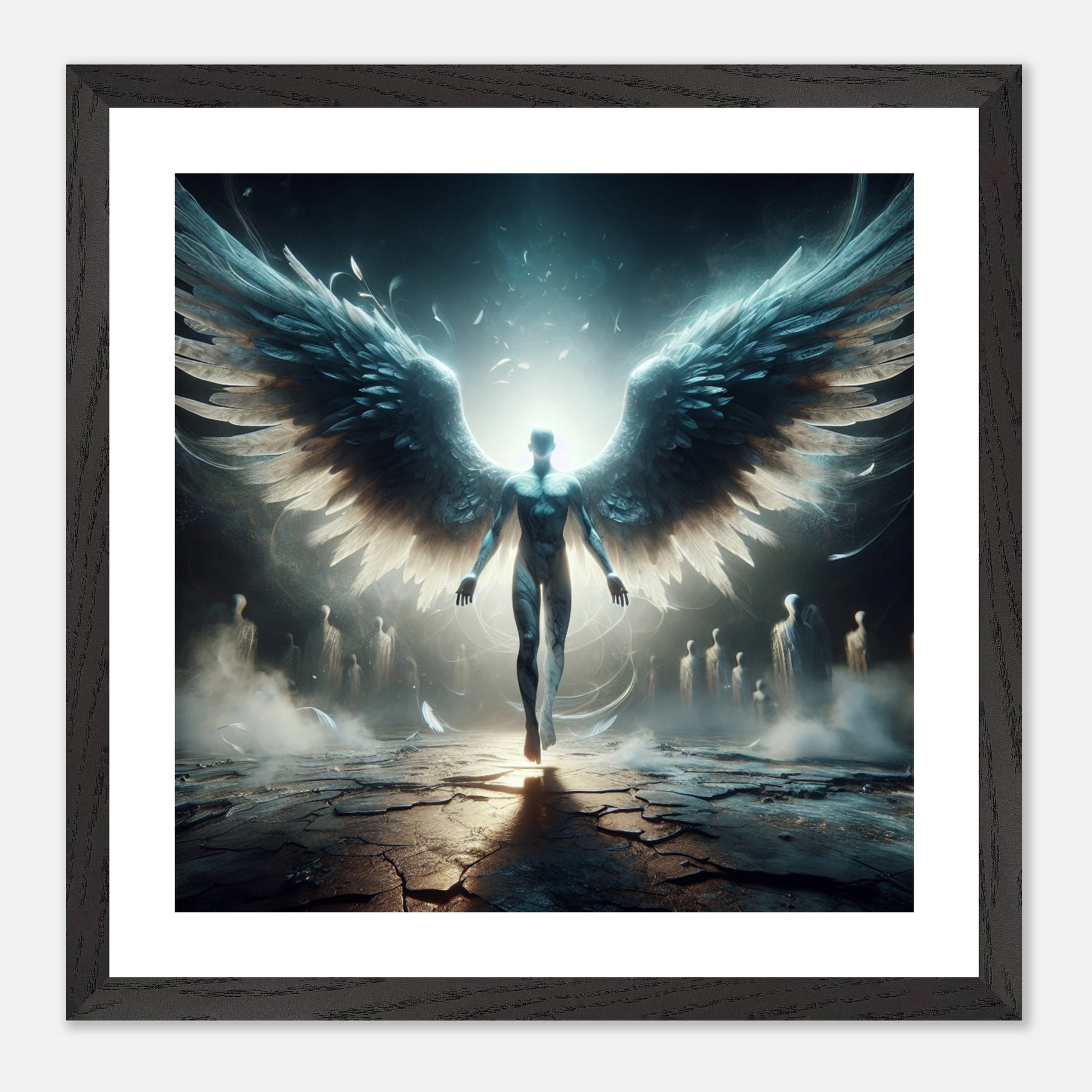 Gerahmtes Premium-Poster: Männlicher Engel steht im Jüngsten Gericht, Welt bereits untergegangen, ideale Wandkunst für nachdenkliche und künstlerische zimmer