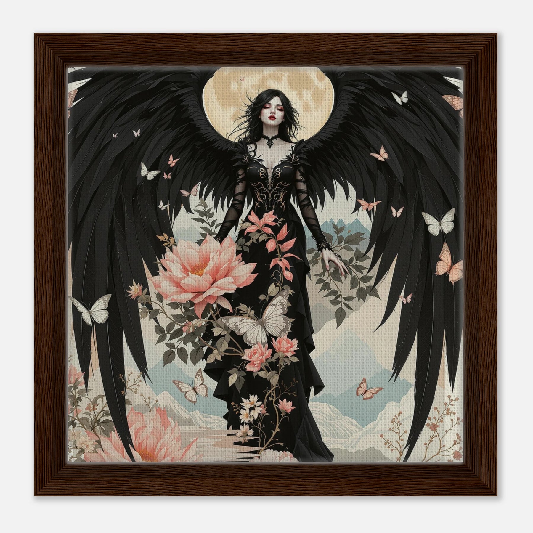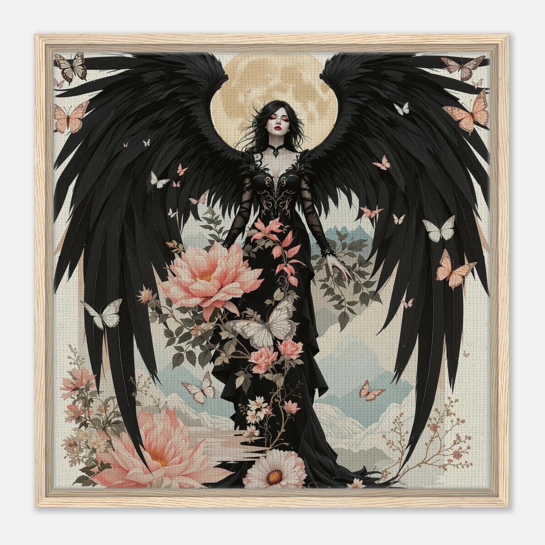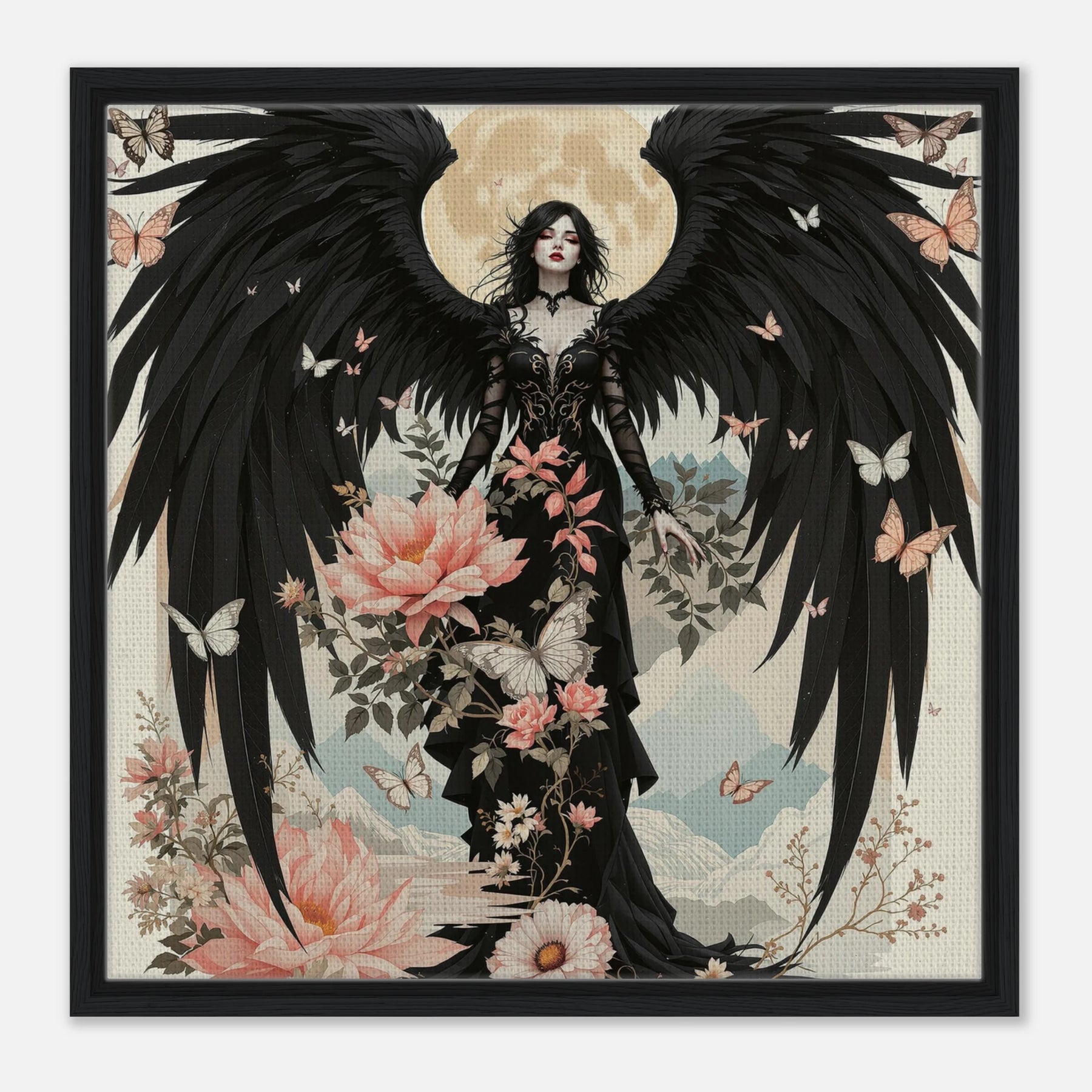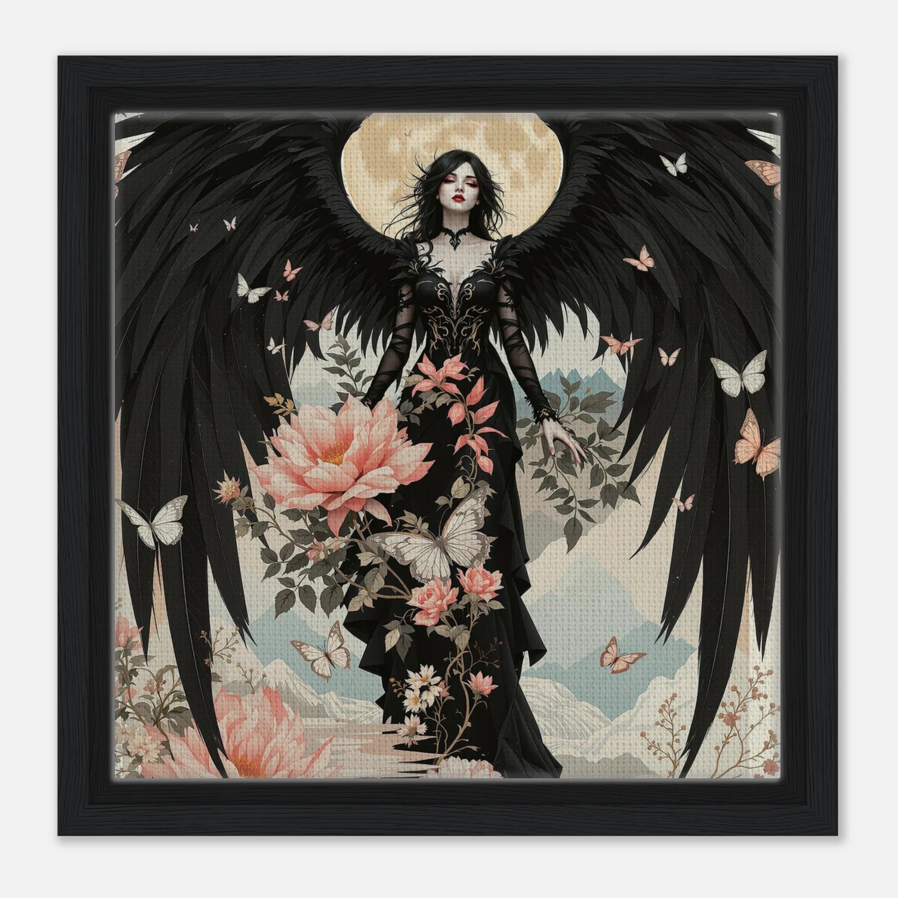 Diese gerahmte Leinwand zeigt einen Engel aus der Dark Angel-Serie – mit starker Symbolik und dunkler Ästhetik. Die Leinwandstruktur intensiviert das Motiv, der Rahmen verleiht dem Werk seine dramatische Präsenz.