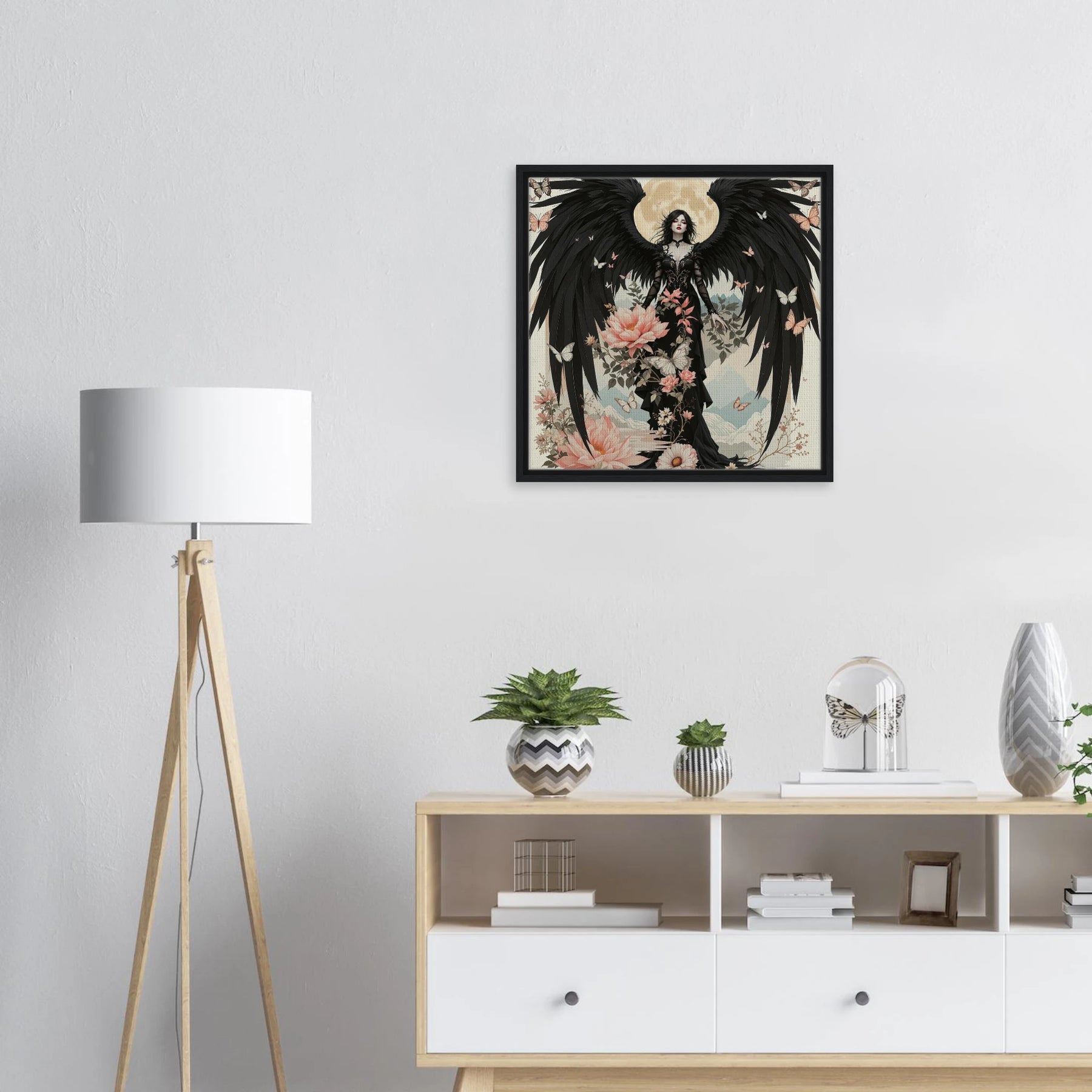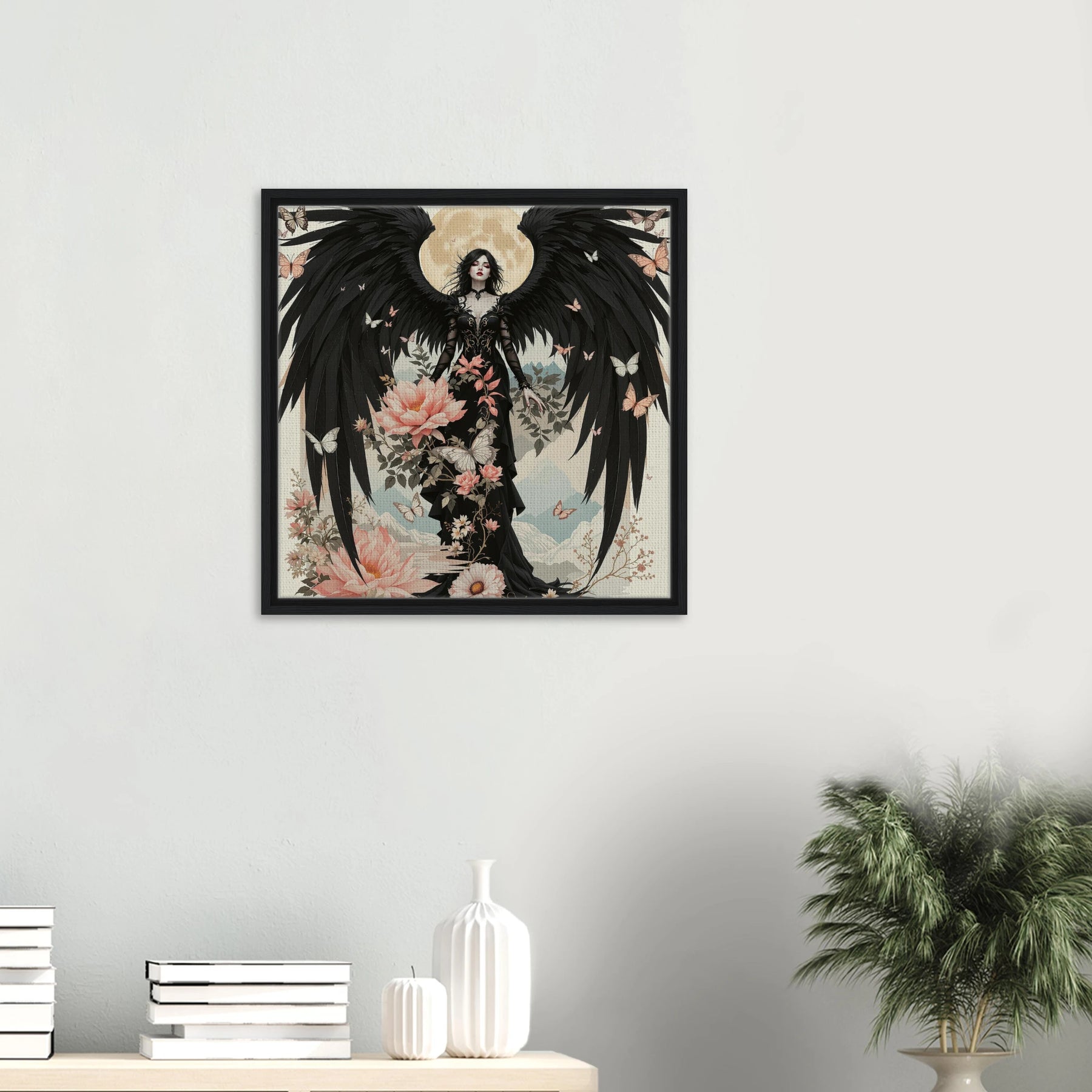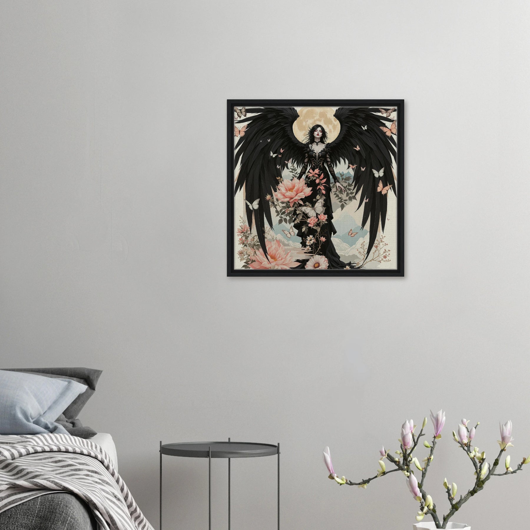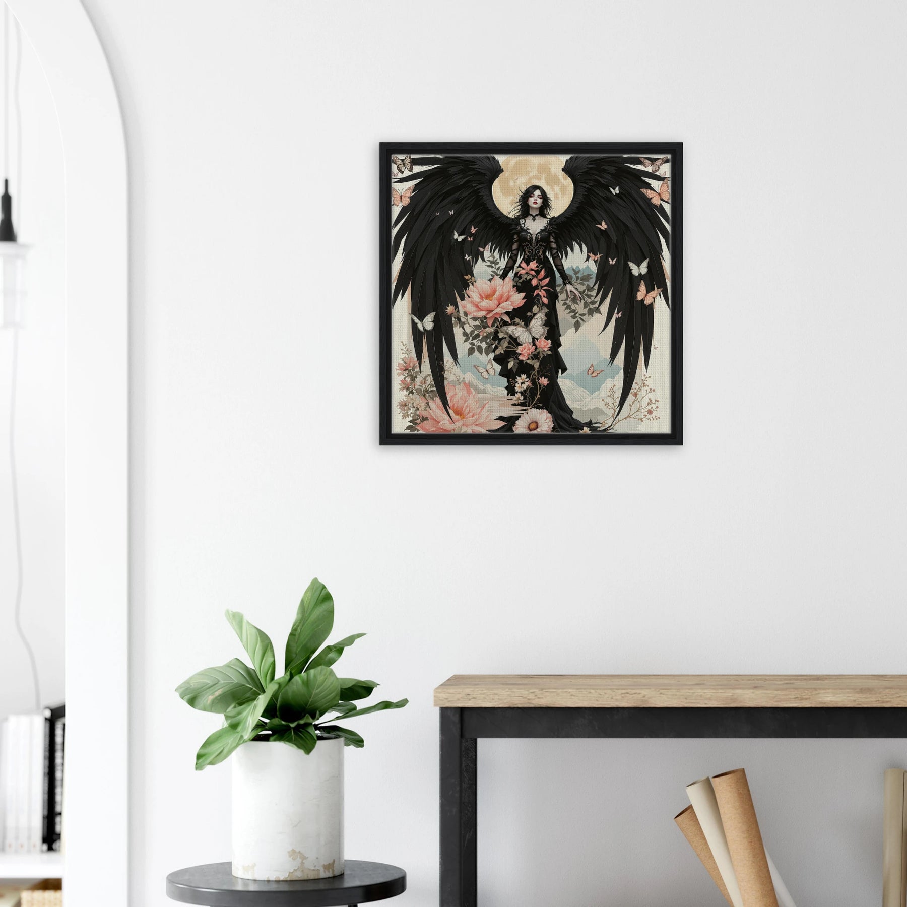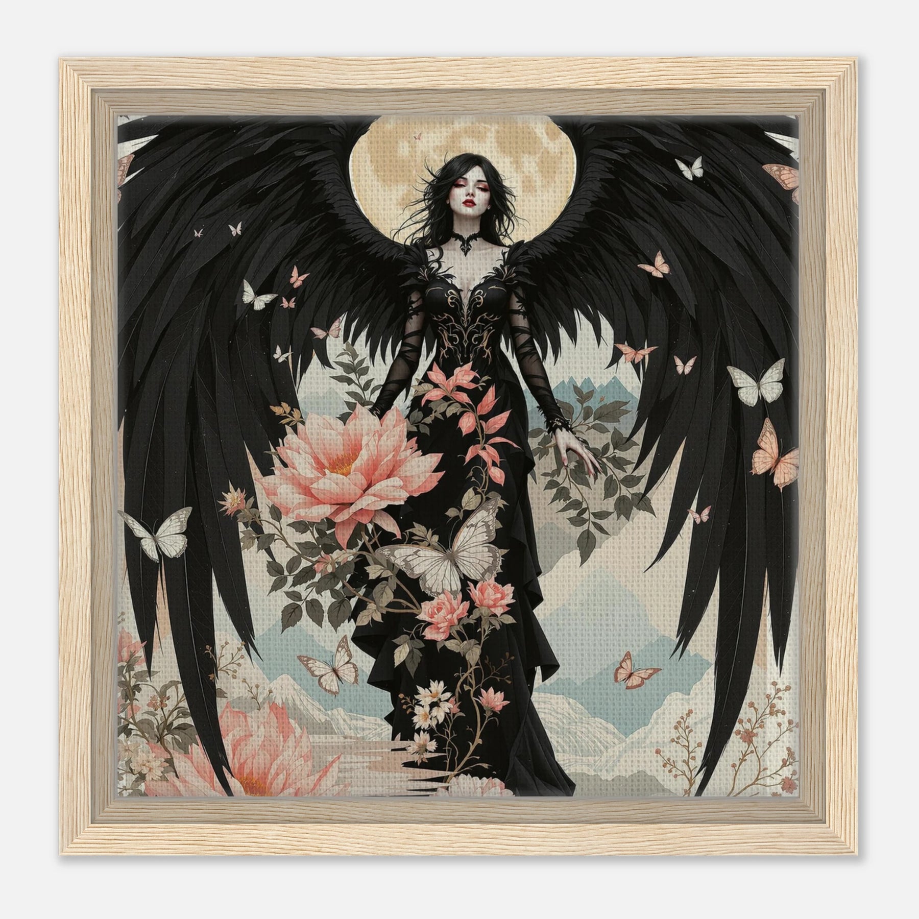 Diese gerahmte Leinwand zeigt einen Engel aus der Dark Angel-Serie – mit starker Symbolik und dunkler Ästhetik. Die Leinwandstruktur intensiviert das Motiv, der Rahmen verleiht dem Werk seine dramatische Präsenz.