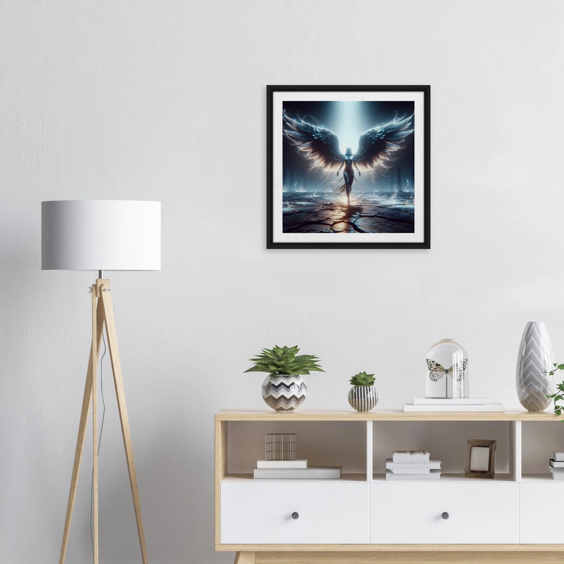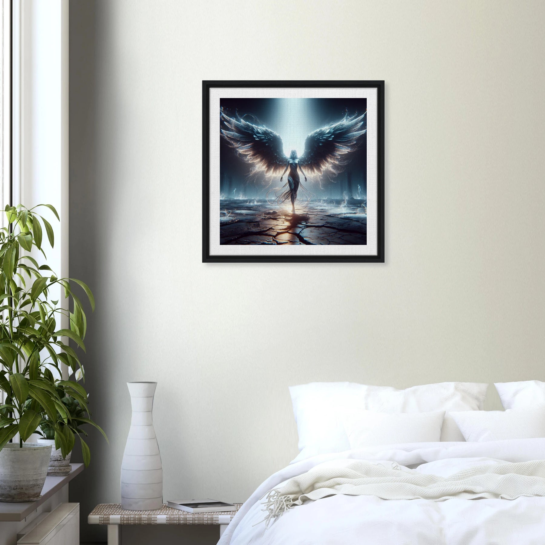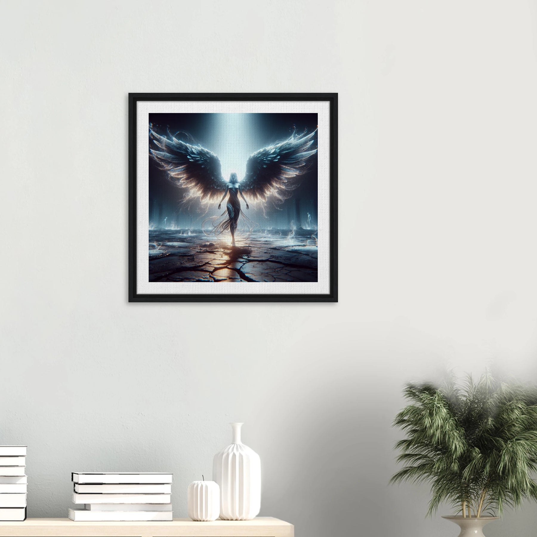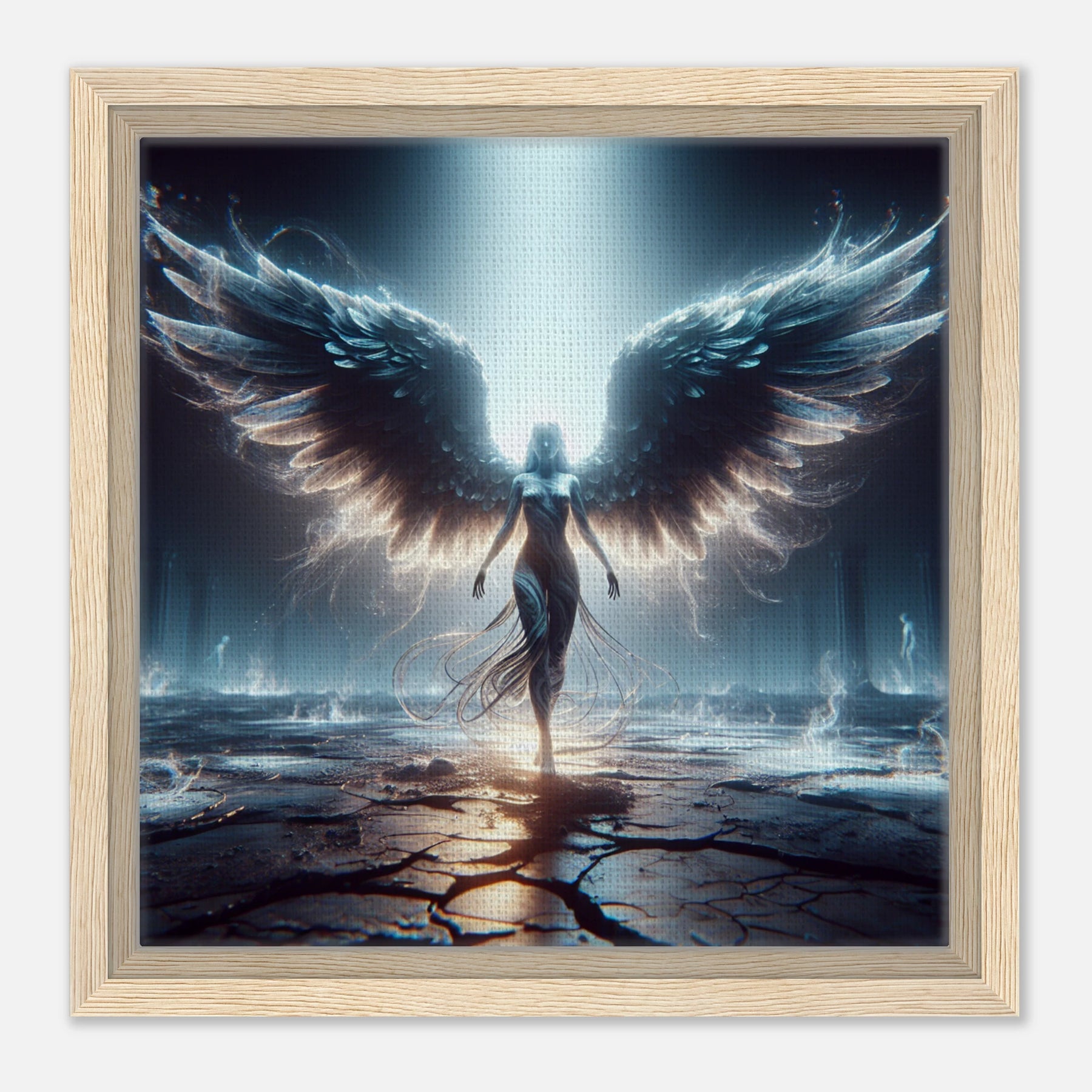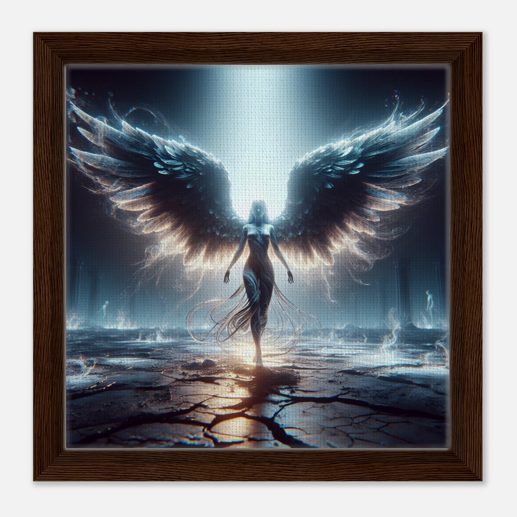 Diese gerahmte Leinwand zeigt einen Engel aus der Dark Angel-Serie – mit starker Symbolik und dunkler Ästhetik. Die Leinwandstruktur intensiviert das Motiv, der Rahmen verleiht dem Werk seine dramatische Präsenz.