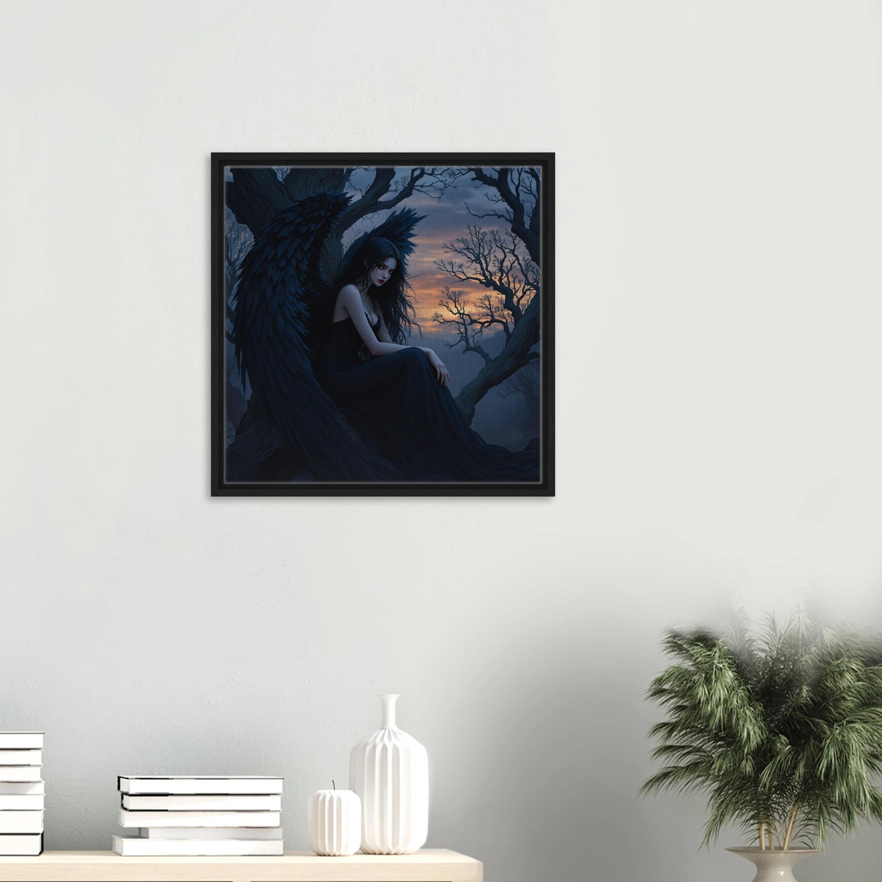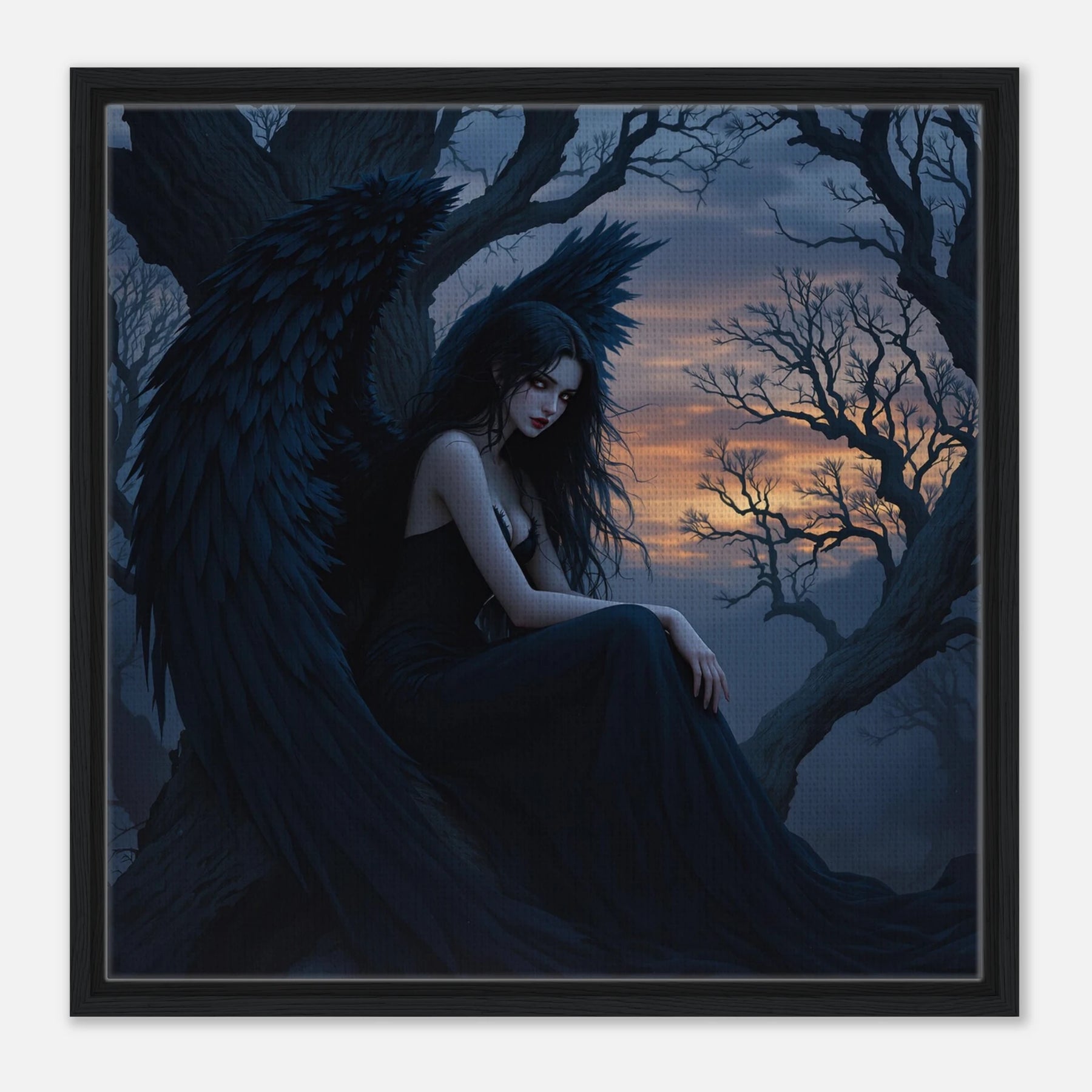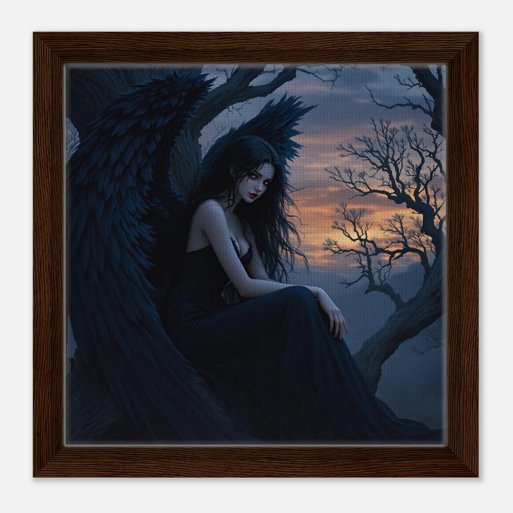 Diese gerahmte Leinwand zeigt einen Engel aus der Dark Angel-Serie – mit starker Symbolik und dunkler Ästhetik. Die Leinwandstruktur intensiviert das Motiv, der Rahmen verleiht dem Werk seine dramatische Präsenz.