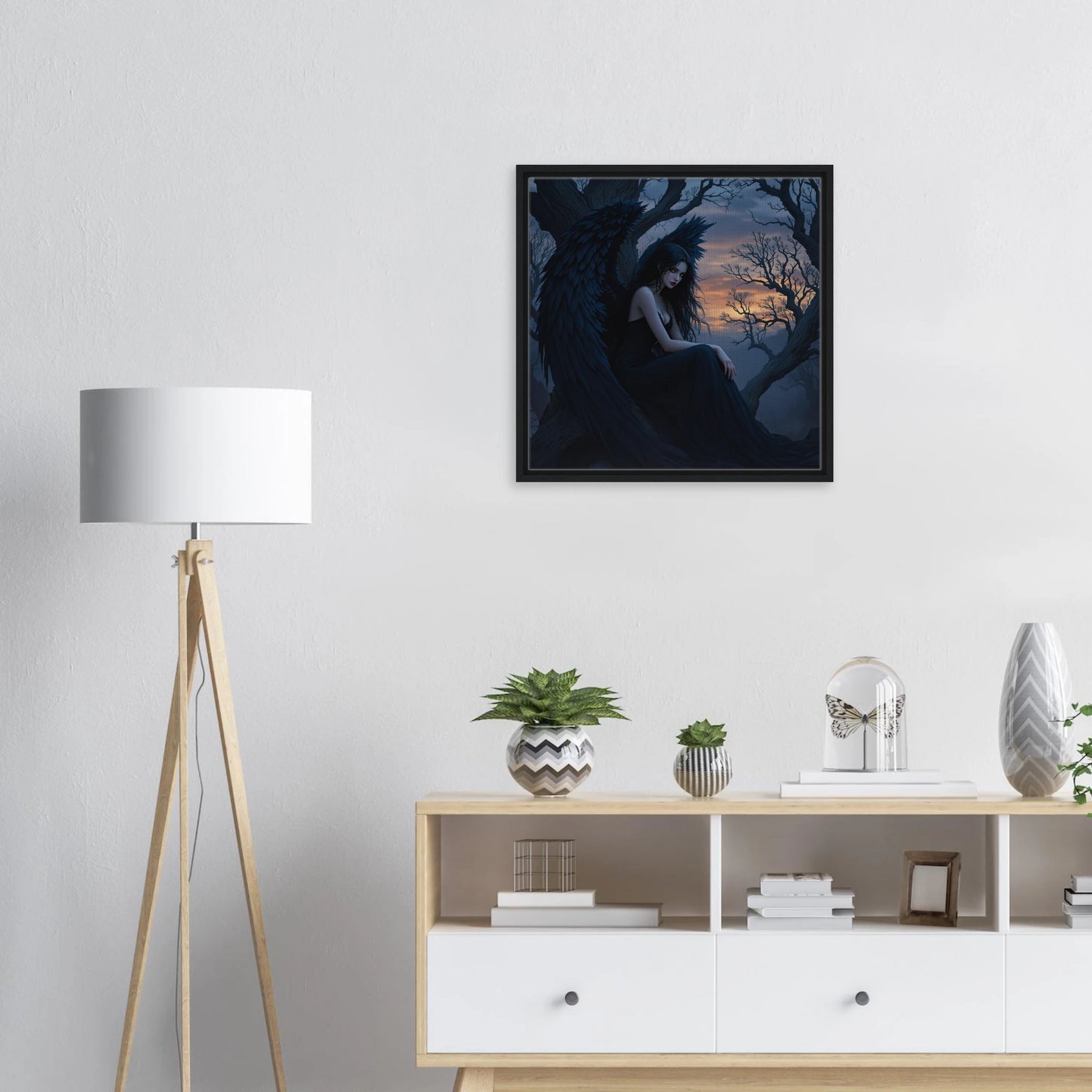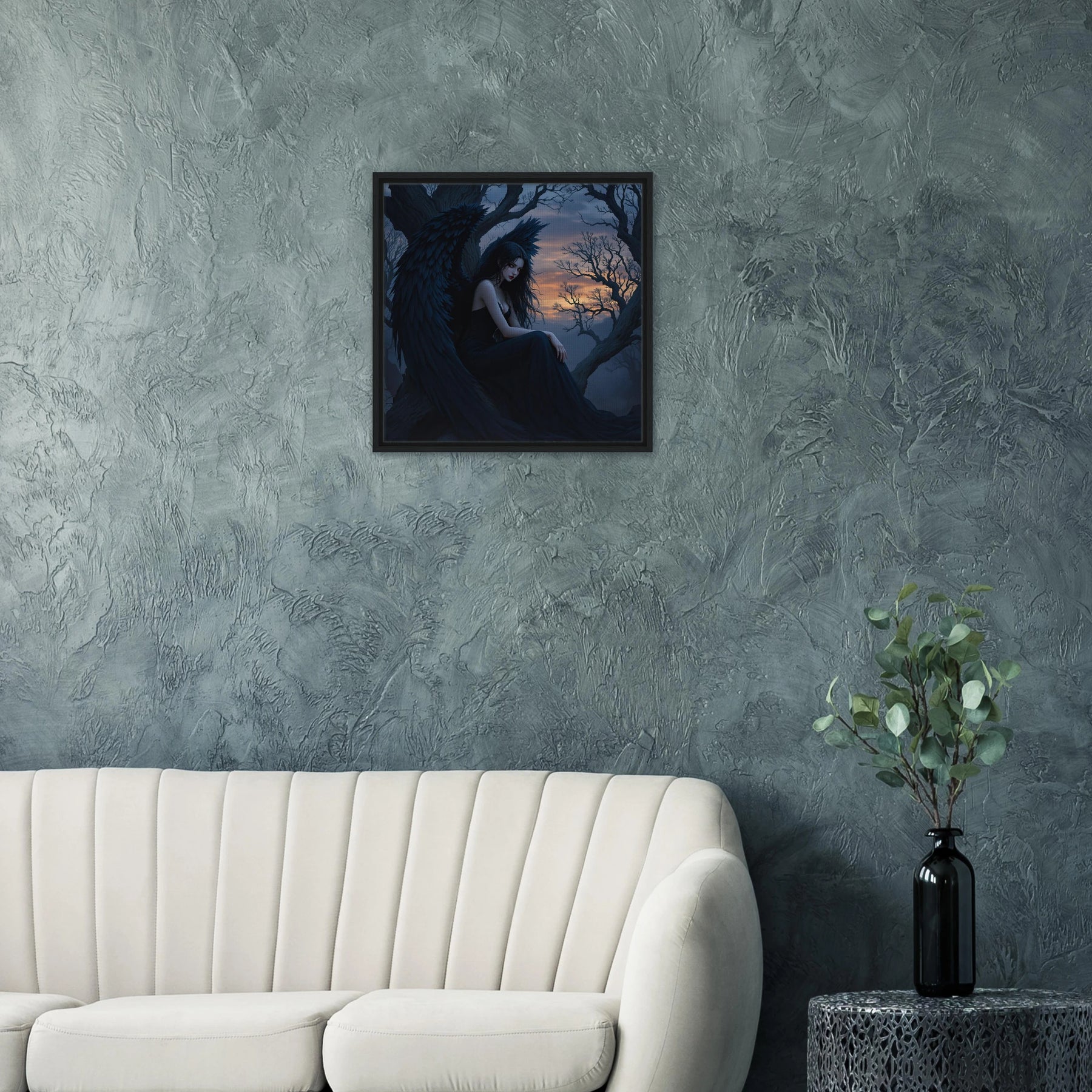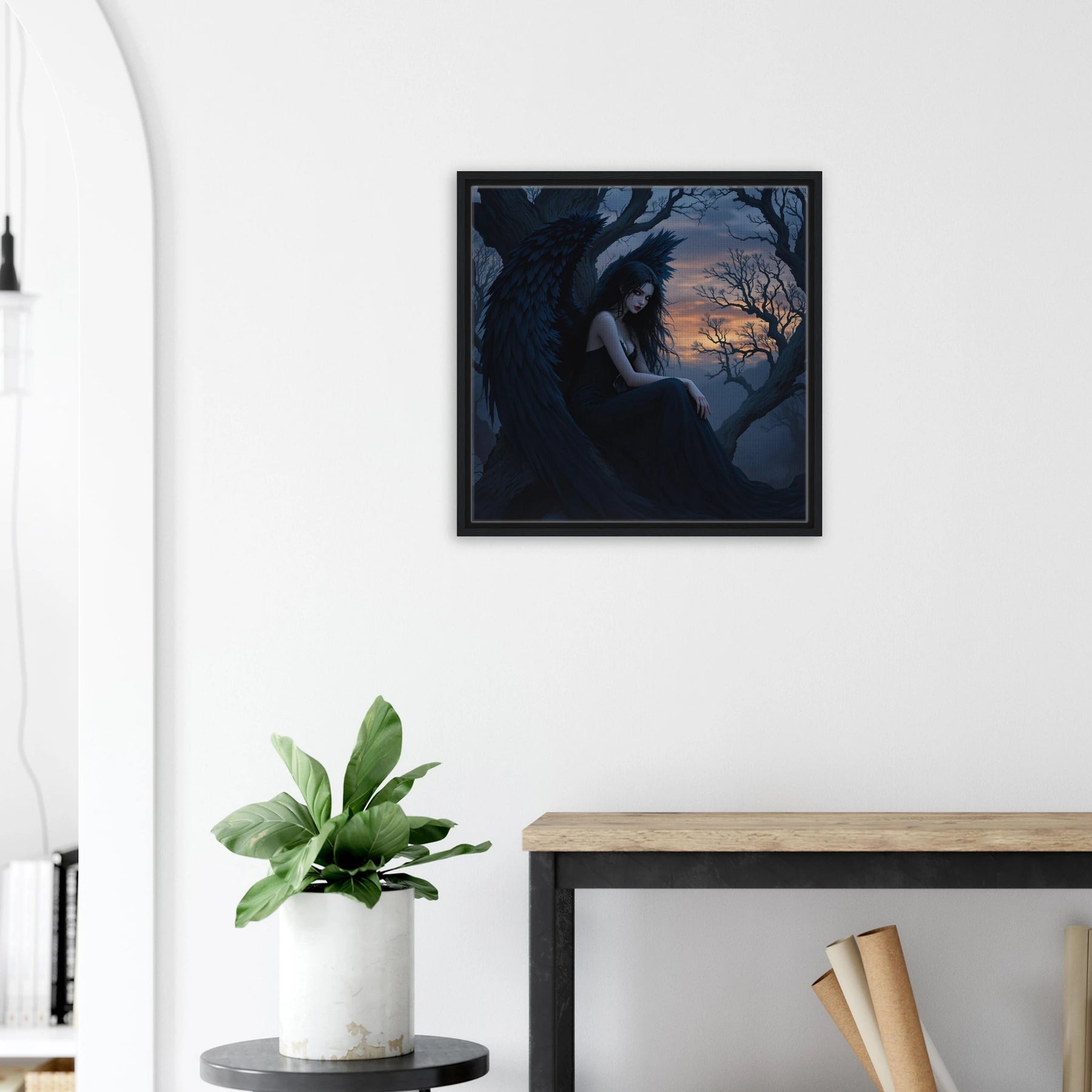 Diese gerahmte Leinwand zeigt einen Engel aus der Dark Angel-Serie – mit starker Symbolik und dunkler Ästhetik. Die Leinwandstruktur intensiviert das Motiv, der Rahmen verleiht dem Werk seine dramatische Präsenz.
