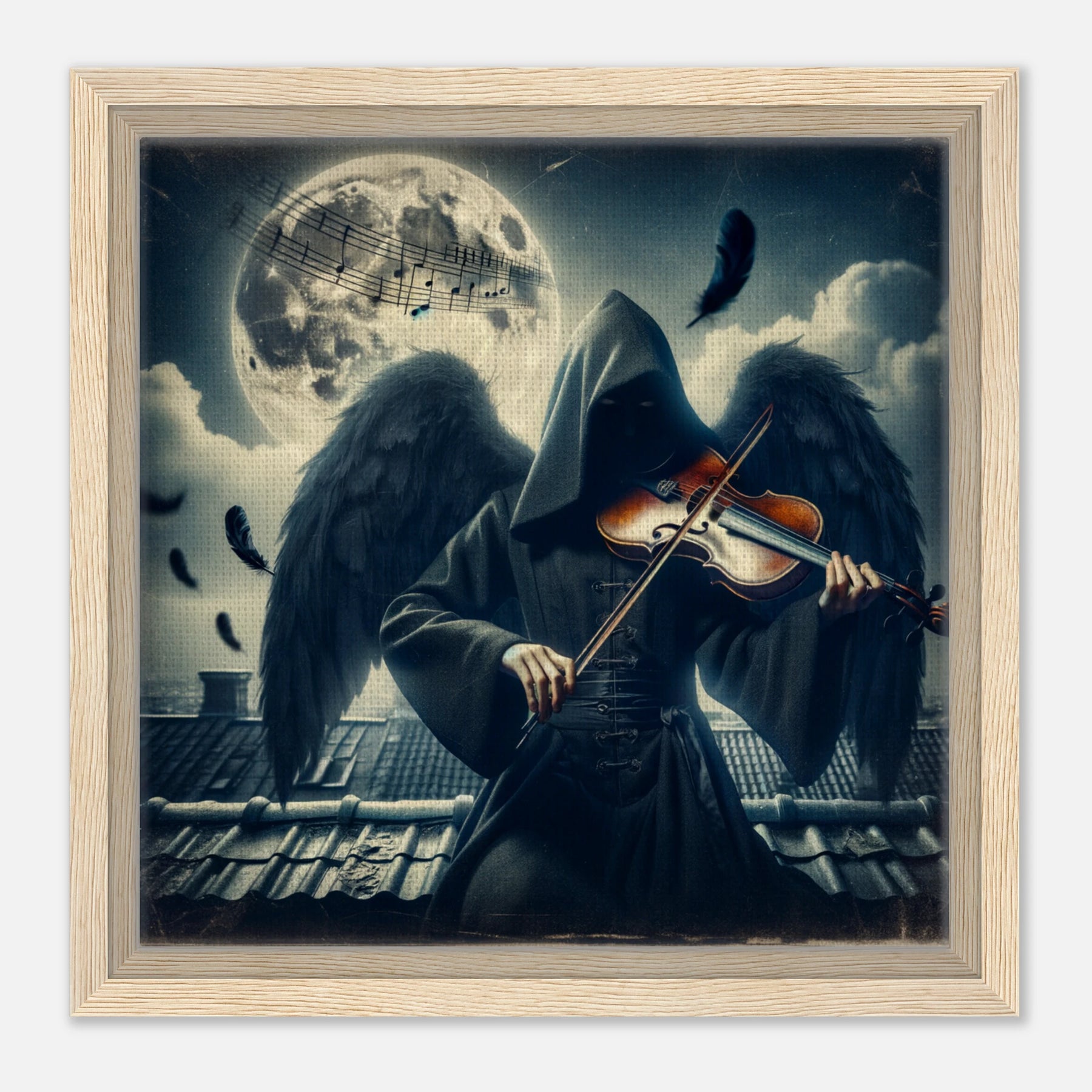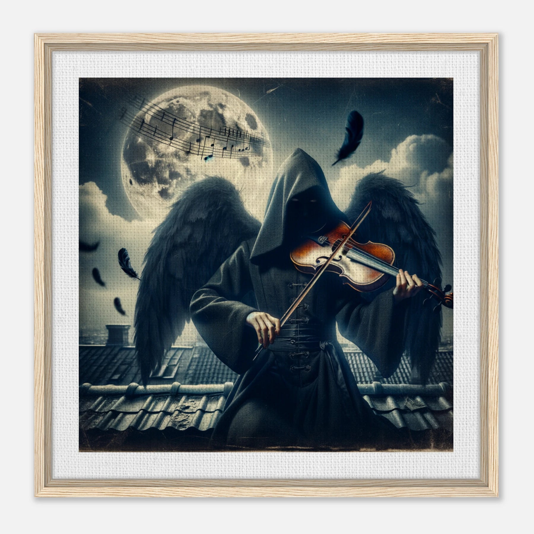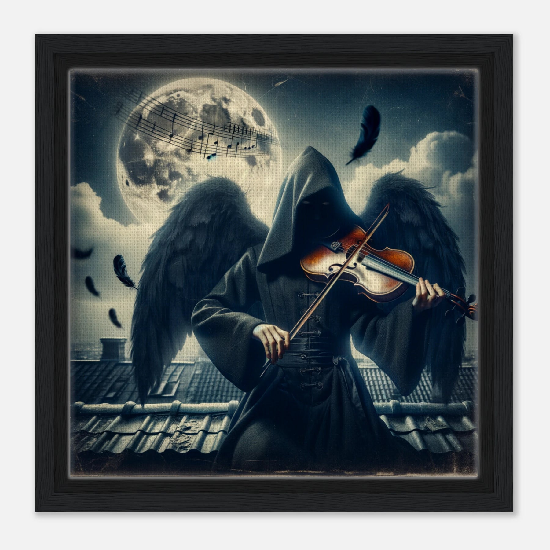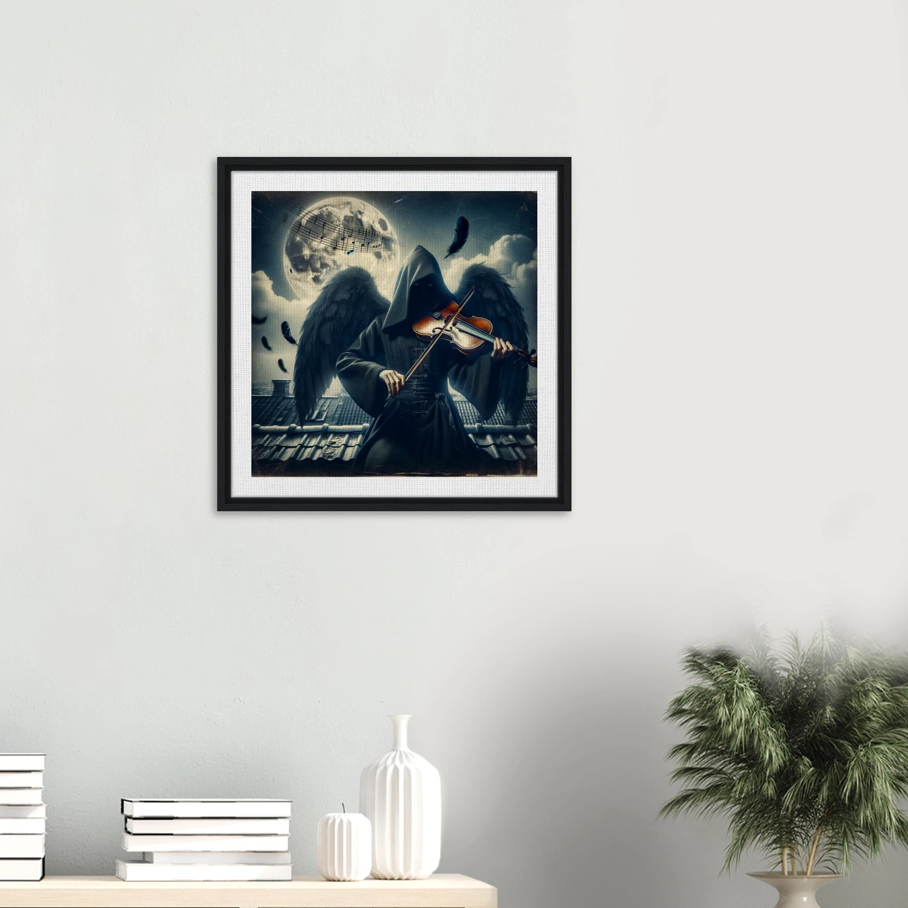 Gerahmte Leinwand: The Phantom’s Melody, mysteriöser Musiker mit Engelsflügeln spielt Geige bei Mitternacht, melancholische Wanddekoration für Wohnzimmer und Musikräume