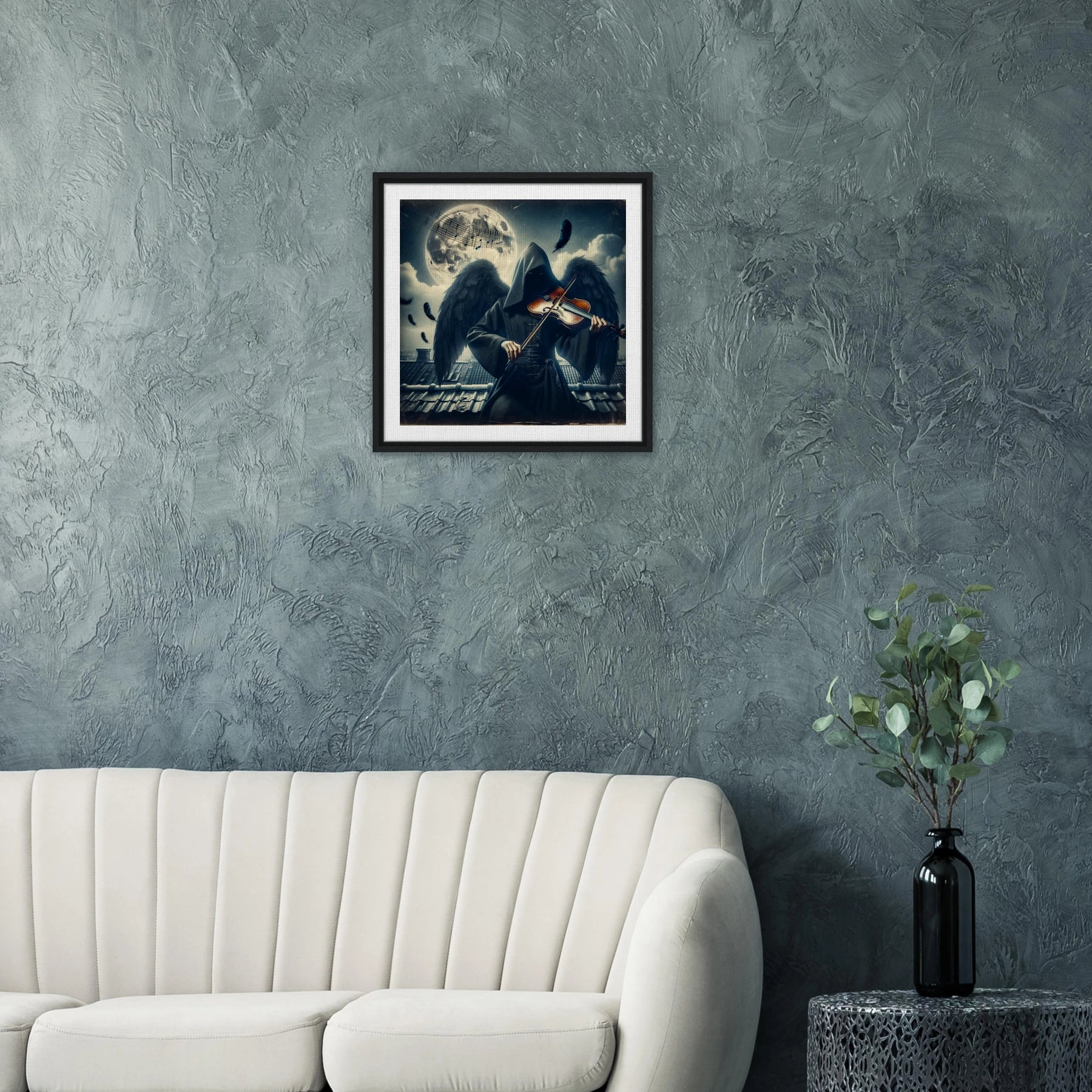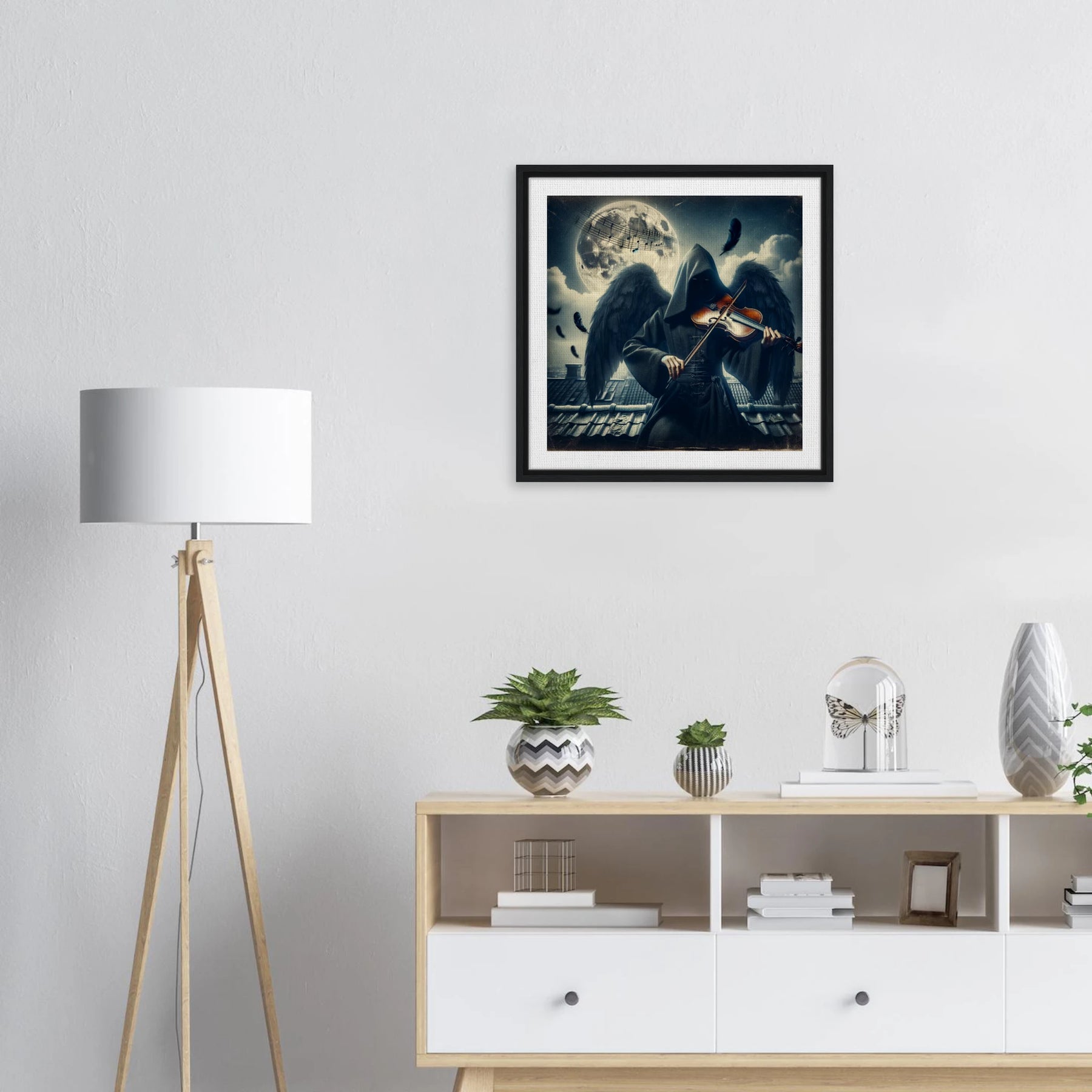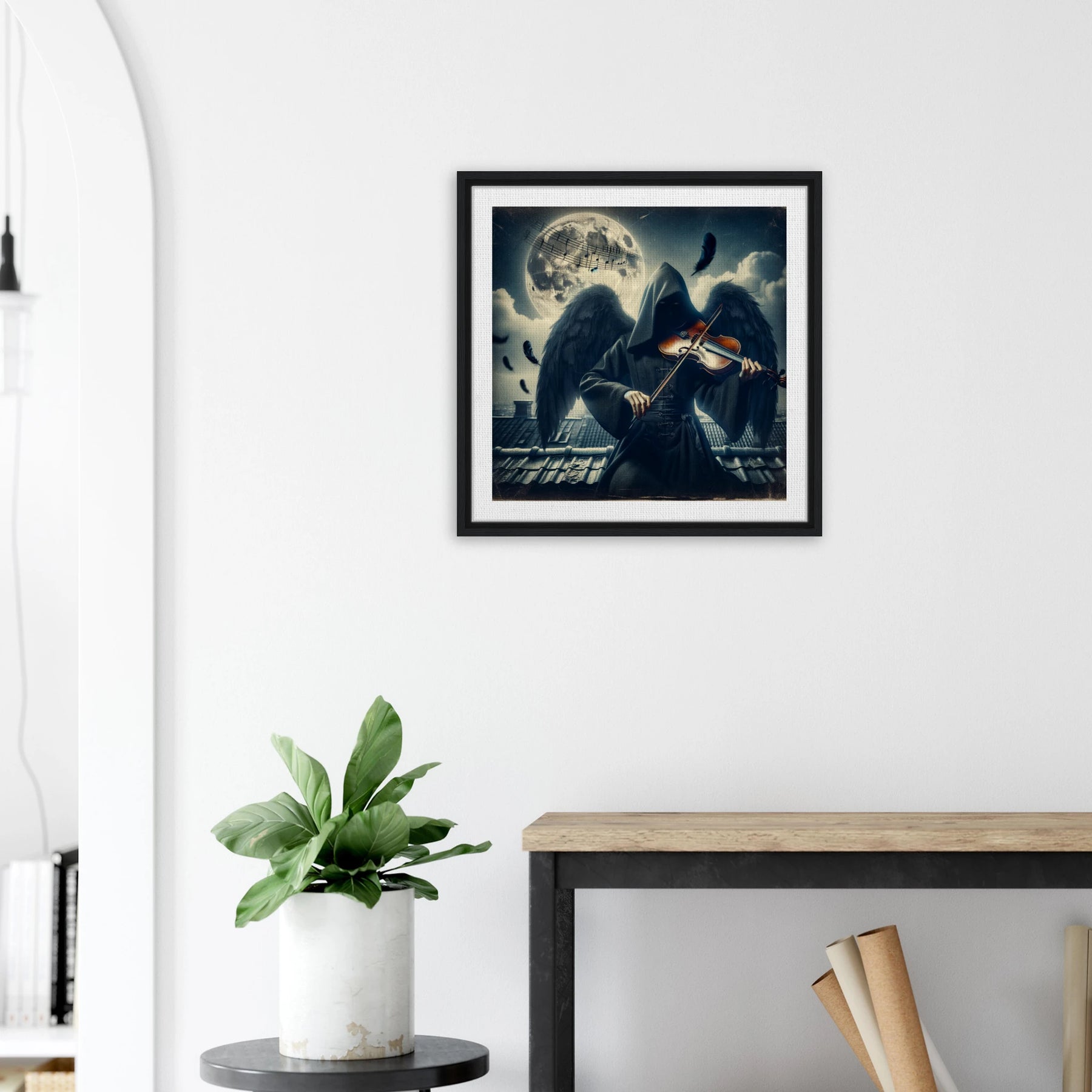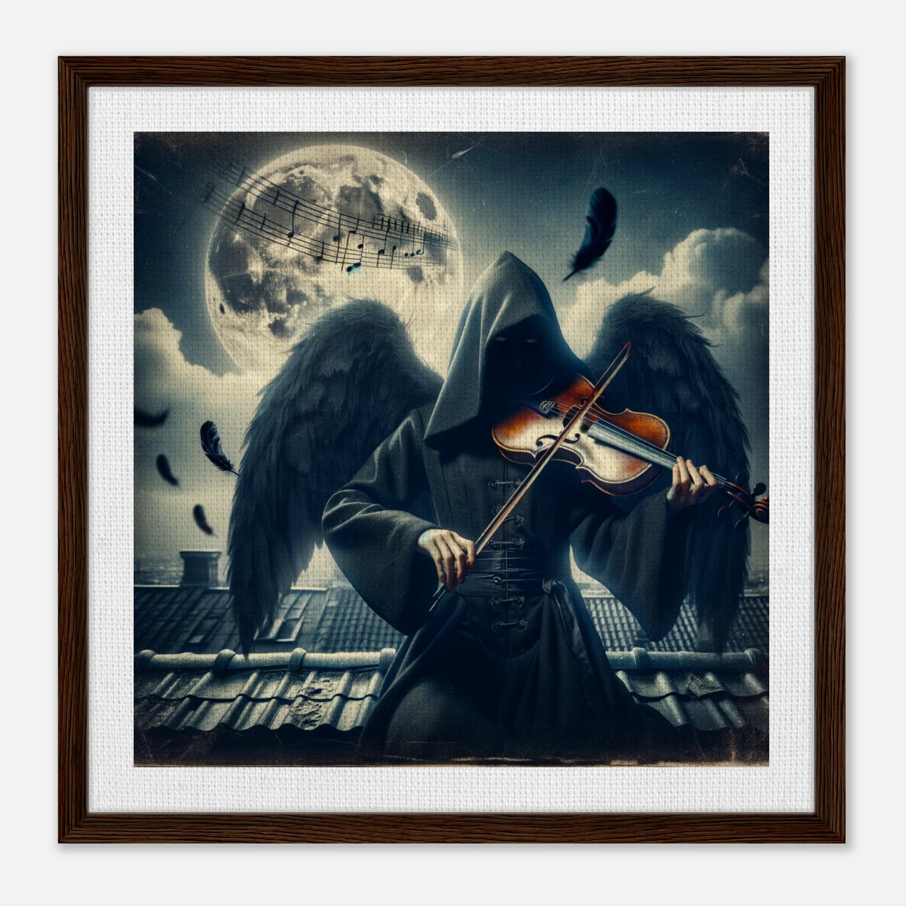 Gerahmte Leinwand: The Phantom’s Melody, mysteriöser Musiker mit Engelsflügeln spielt Geige bei Mitternacht, melancholische Wanddekoration für Wohnzimmer und Musikräume