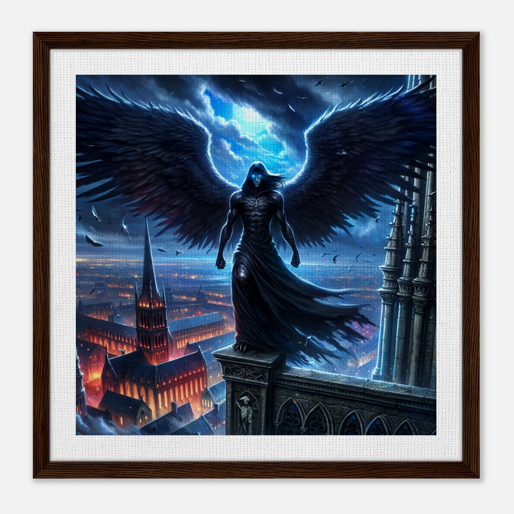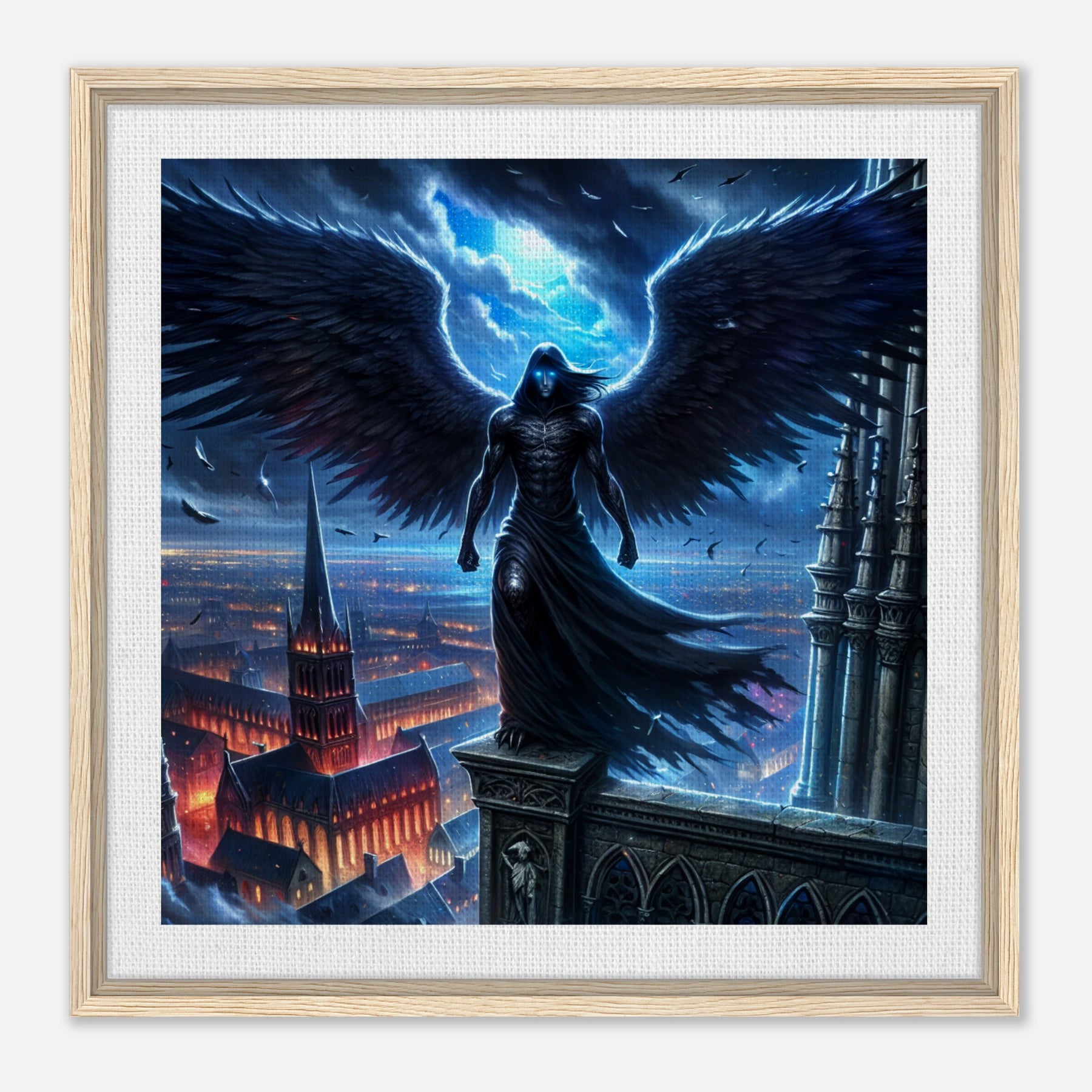 Diese gerahmte Leinwand zeigt einen Engel aus der Dark Angel-Serie – mit starker Symbolik und dunkler Ästhetik. Die Leinwandstruktur intensiviert das Motiv, der Rahmen verleiht dem Werk seine dramatische Präsenz.