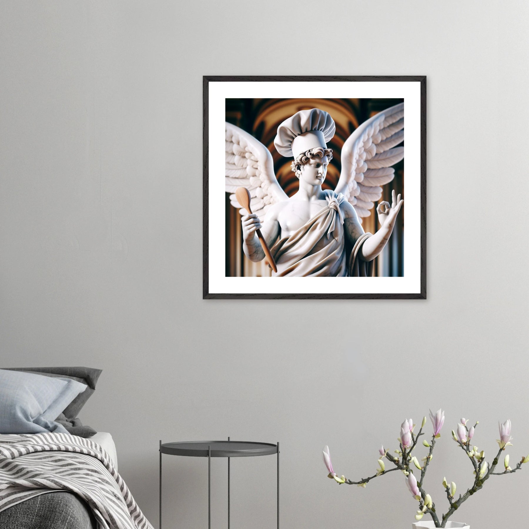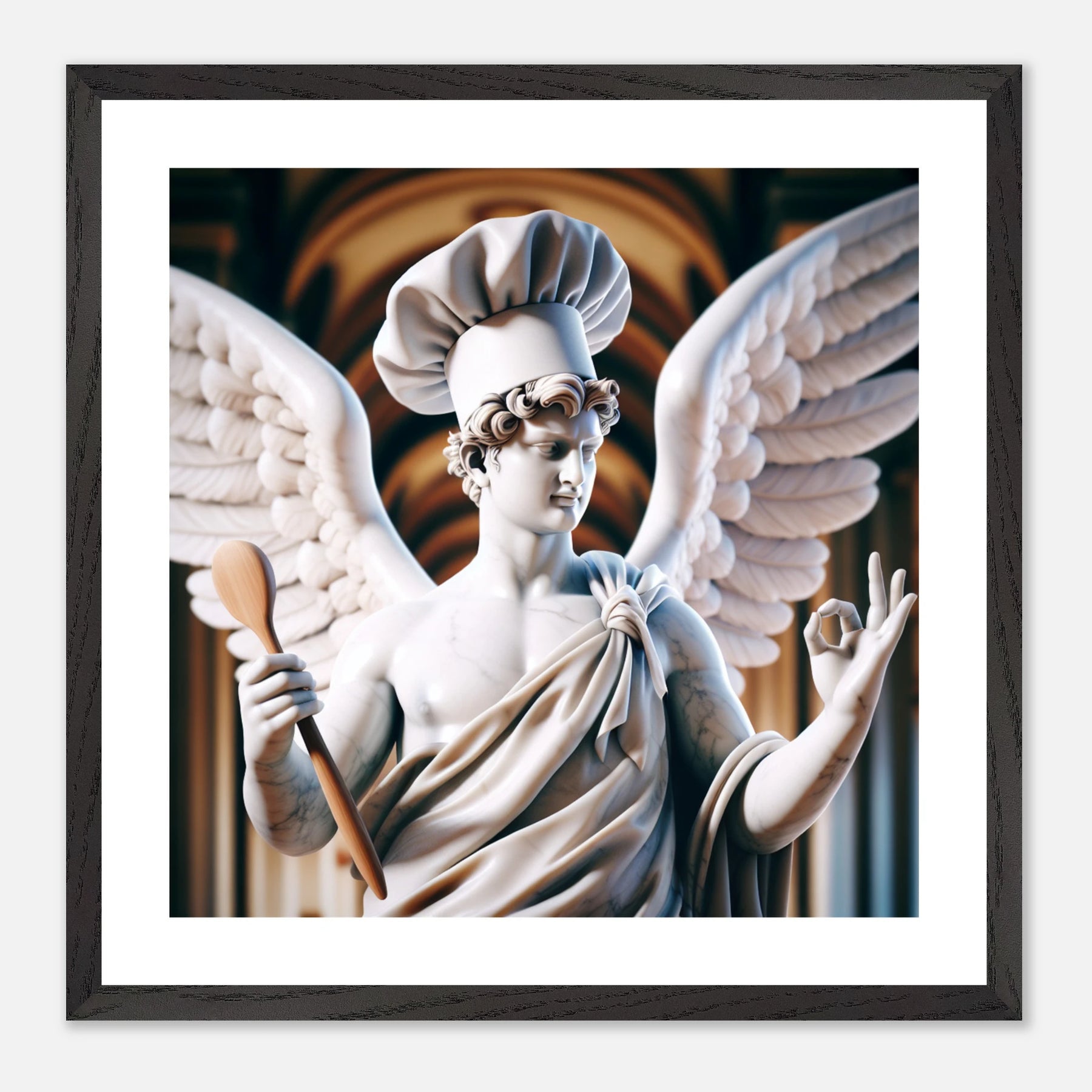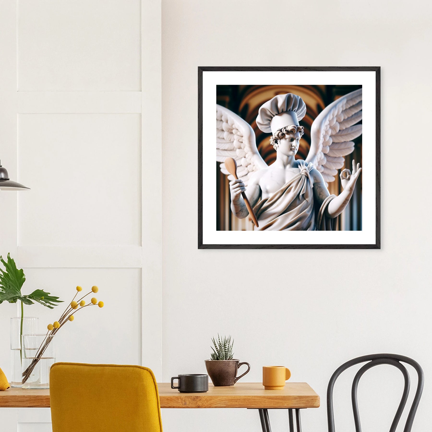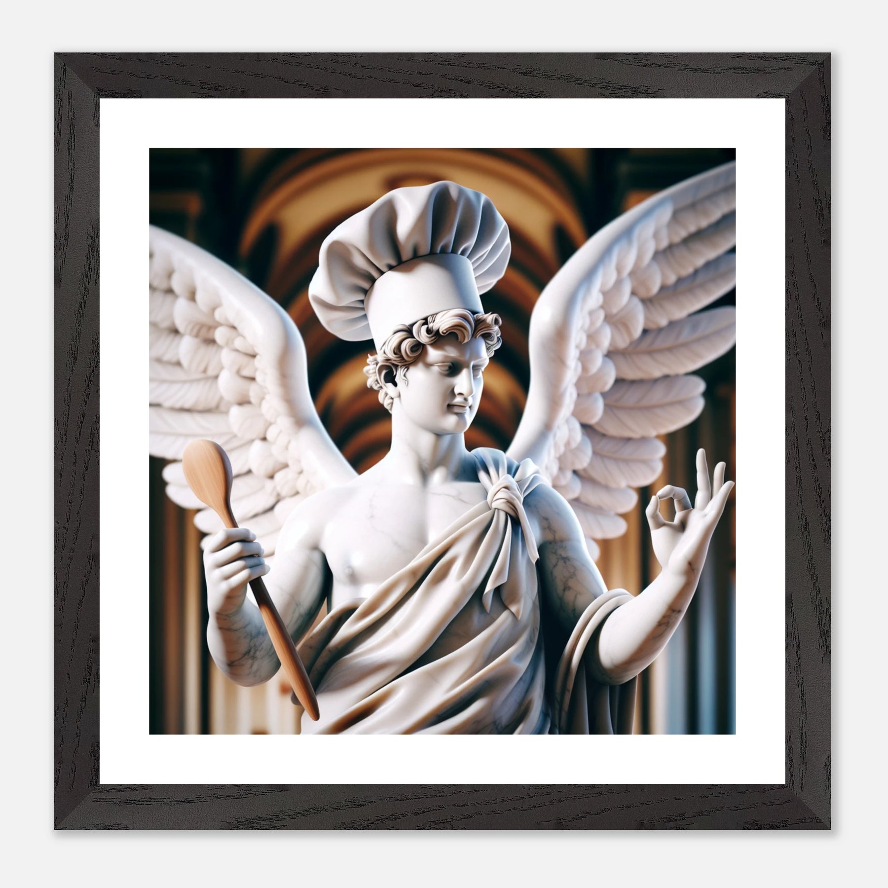 Premium Poster im Rahmen mit Engel als Marmorstatue als Koch – kulinarisches gesundes Essen | Dreaming Wings