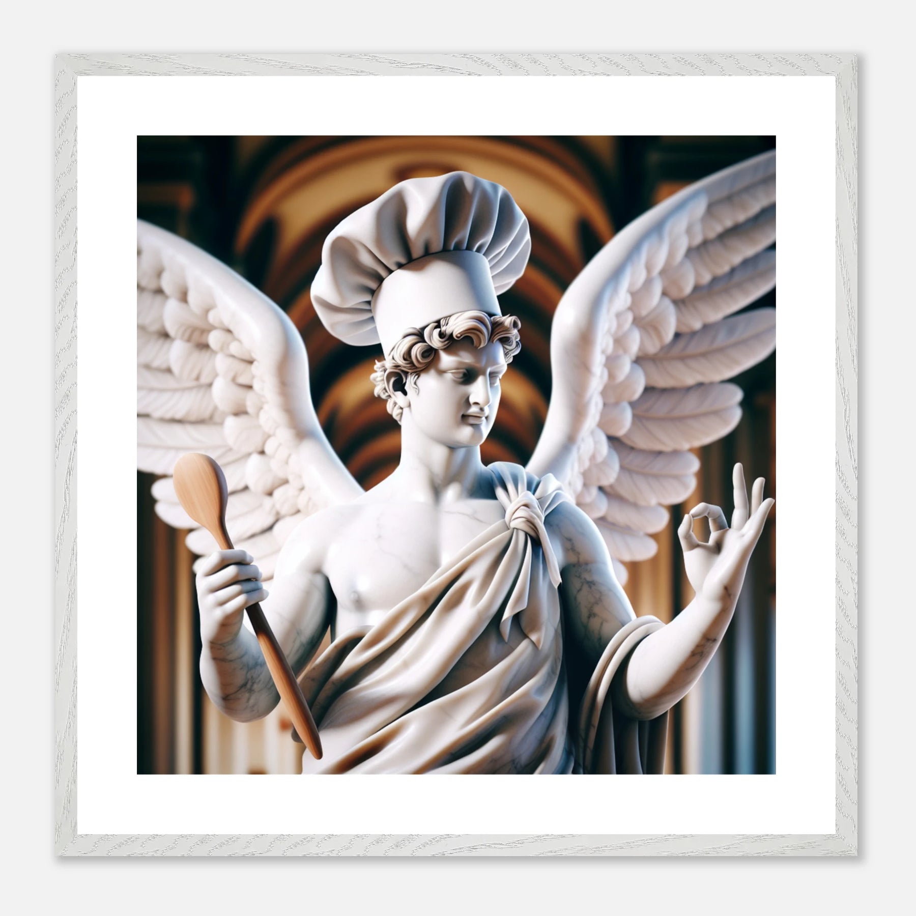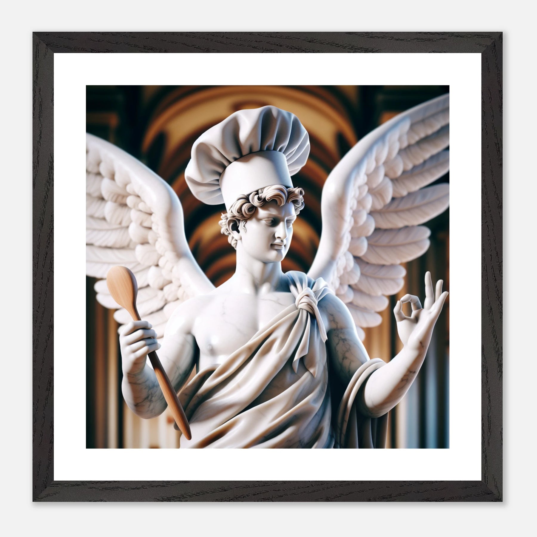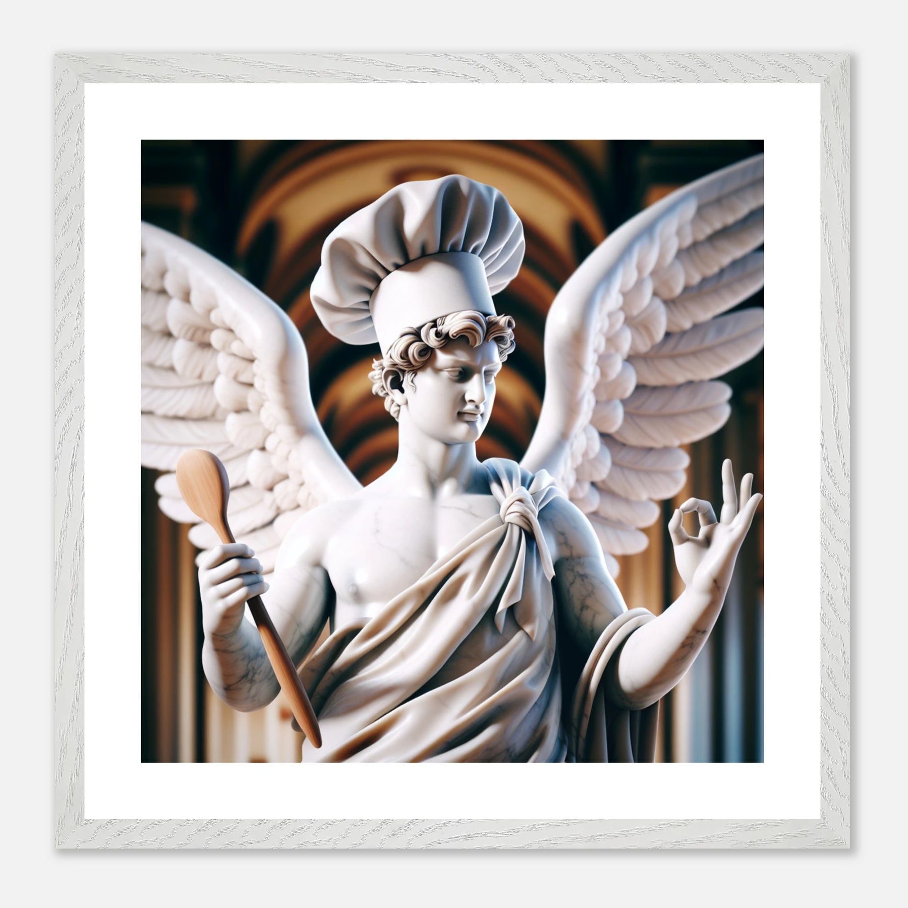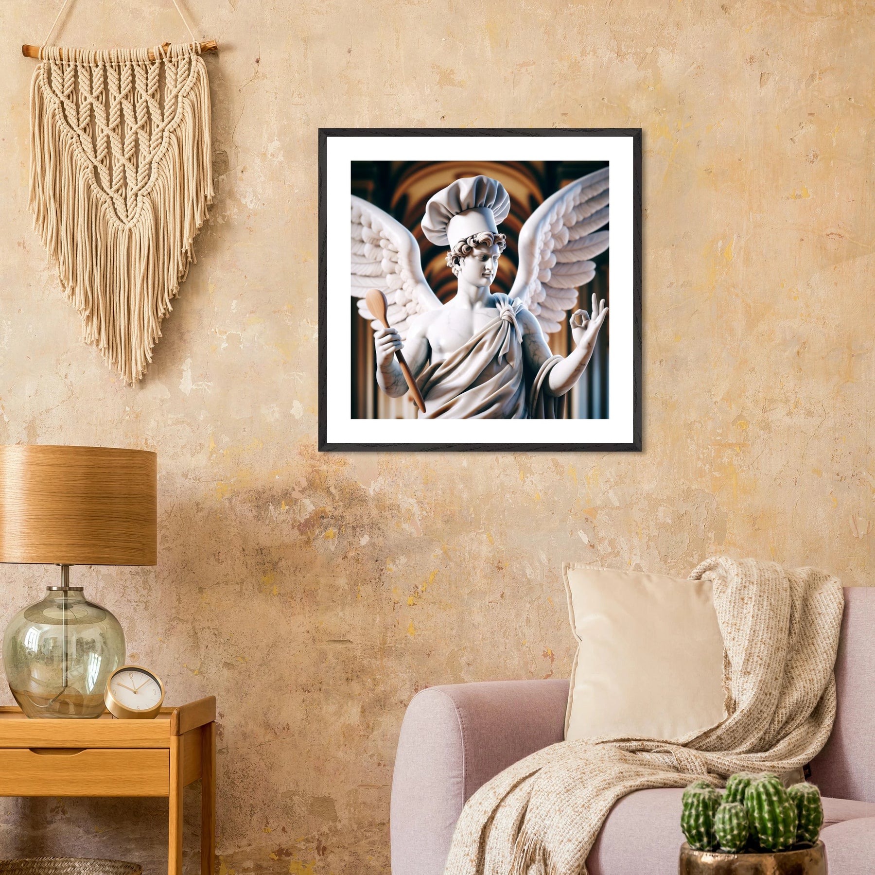 Premium Poster im Rahmen mit Engel als Marmorstatue als Koch – kulinarisches gesundes Essen | Dreaming Wings