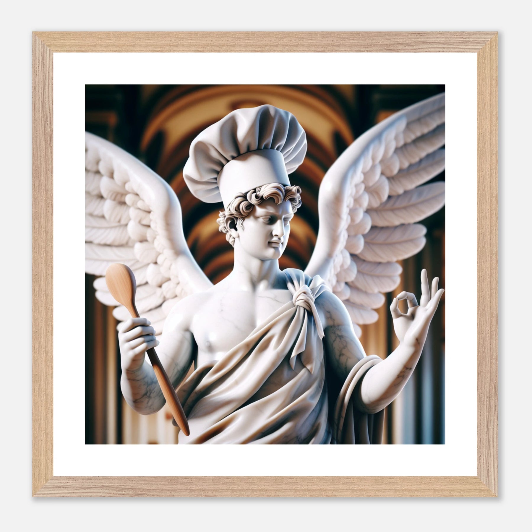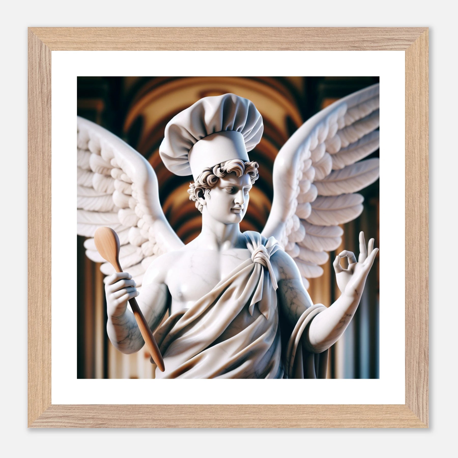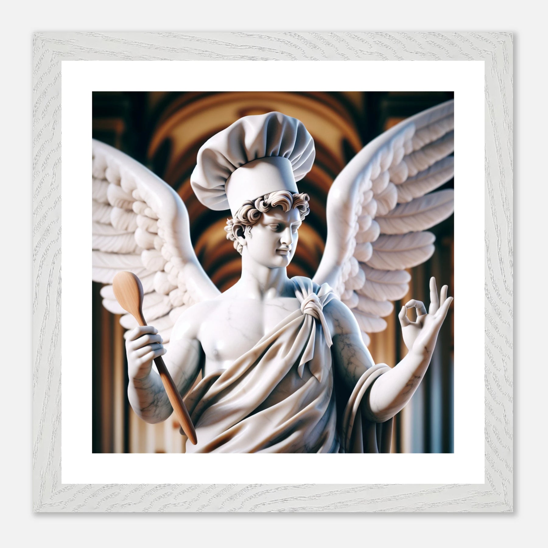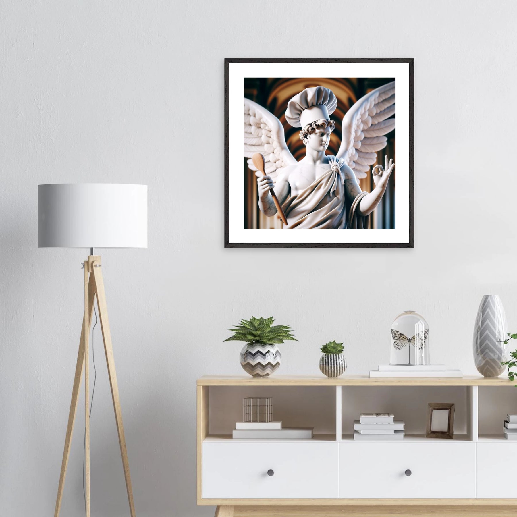 Premium Poster im Rahmen mit Engel als Marmorstatue als Koch – kulinarisches gesundes Essen | Dreaming Wings