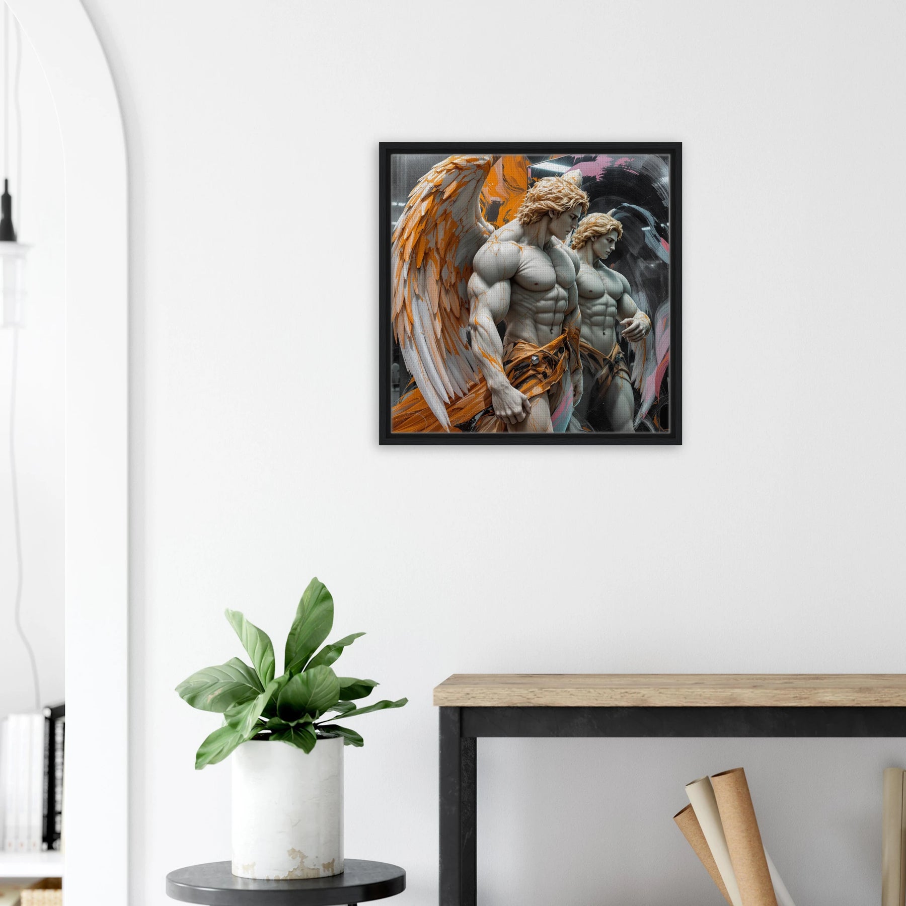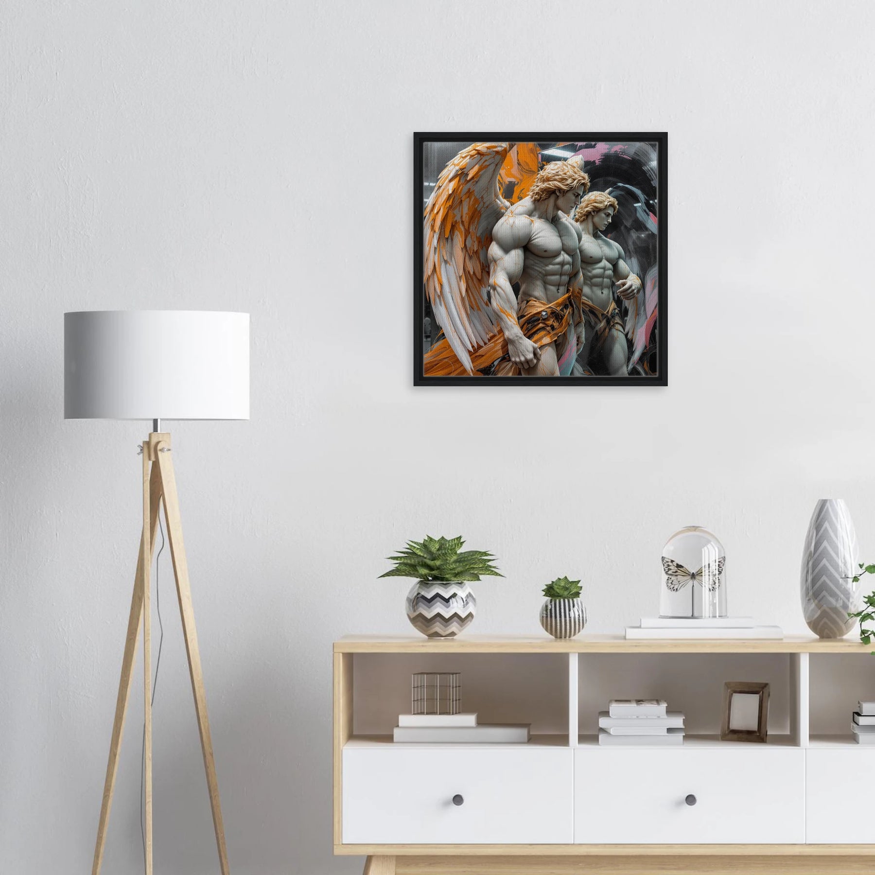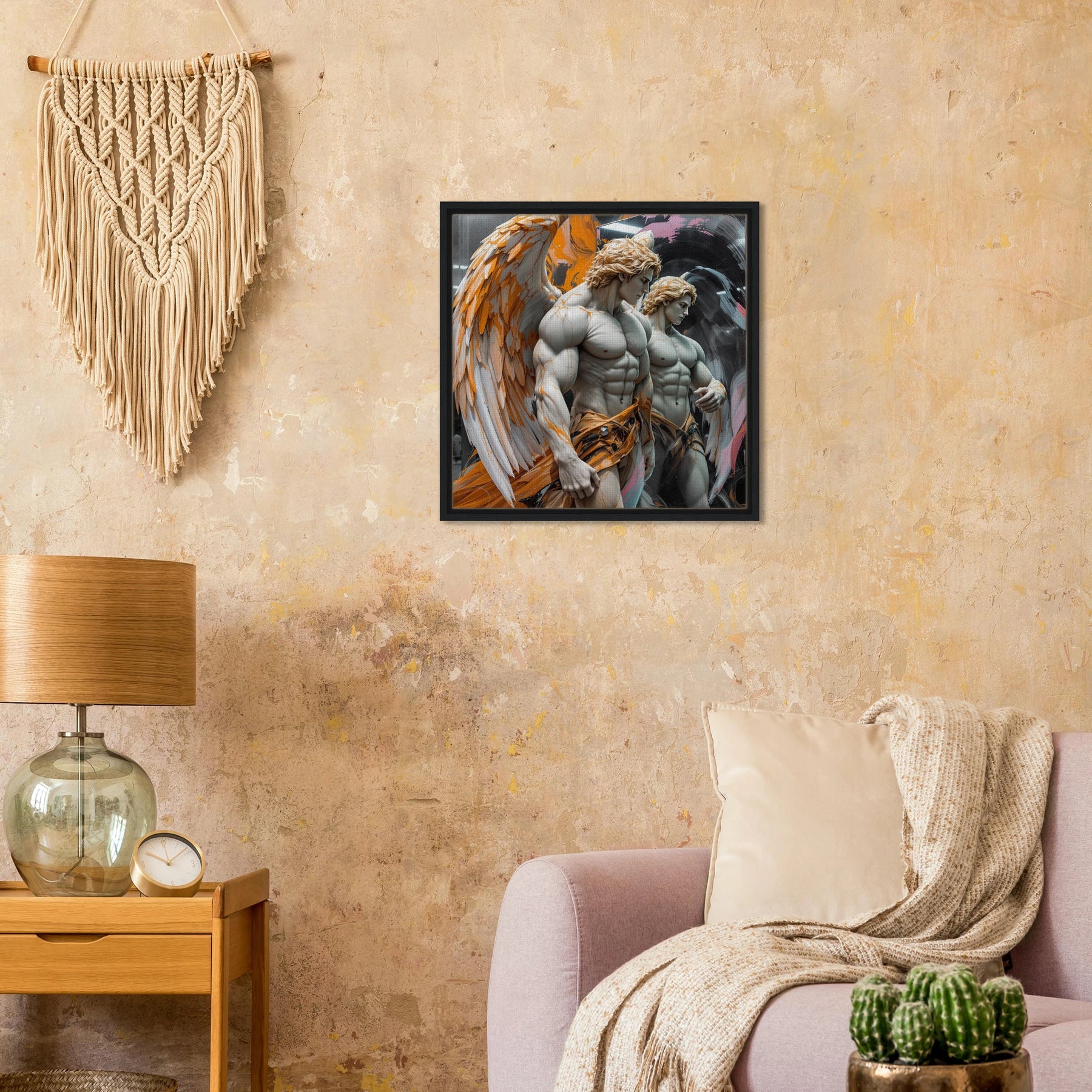 Diese Leinwand zeigt einen Everyday Angel im klassischen Marmor-Stil – ruhig, hell und beständig. Die natürliche Textur der Leinwand und der Rahmen verleihen dem Werk eine stilvolle und beruhigende Präsenz.