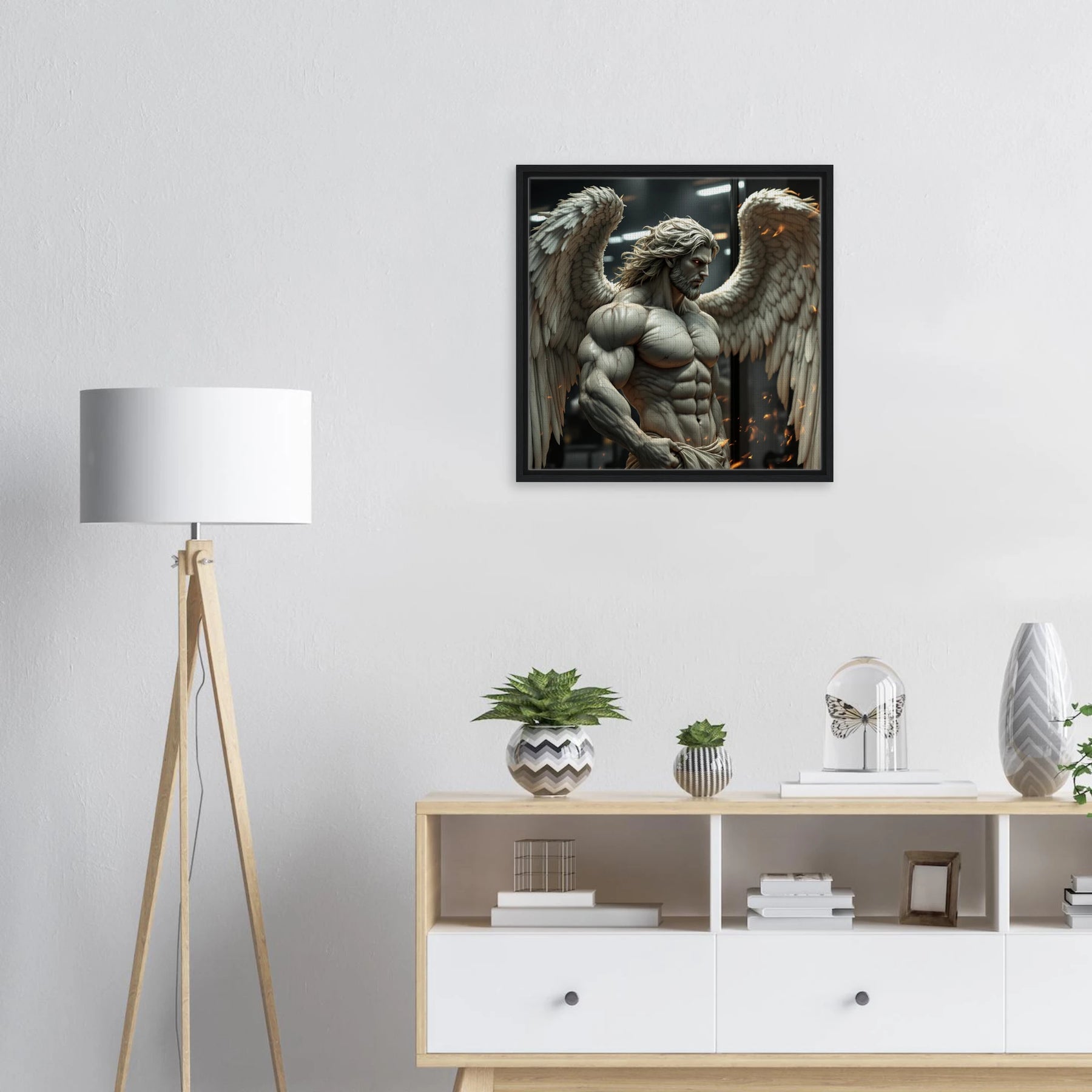 Diese Leinwand zeigt einen Everyday Angel im klassischen Marmor-Stil – ruhig, hell und beständig. Die natürliche Textur der Leinwand und der Rahmen verleihen dem Werk eine stilvolle und beruhigende Präsenz.