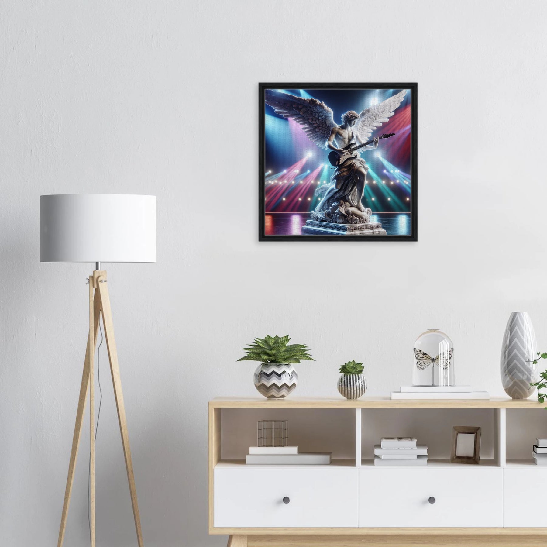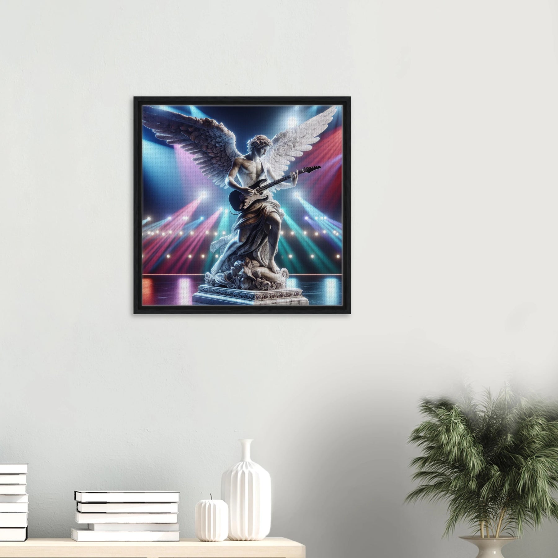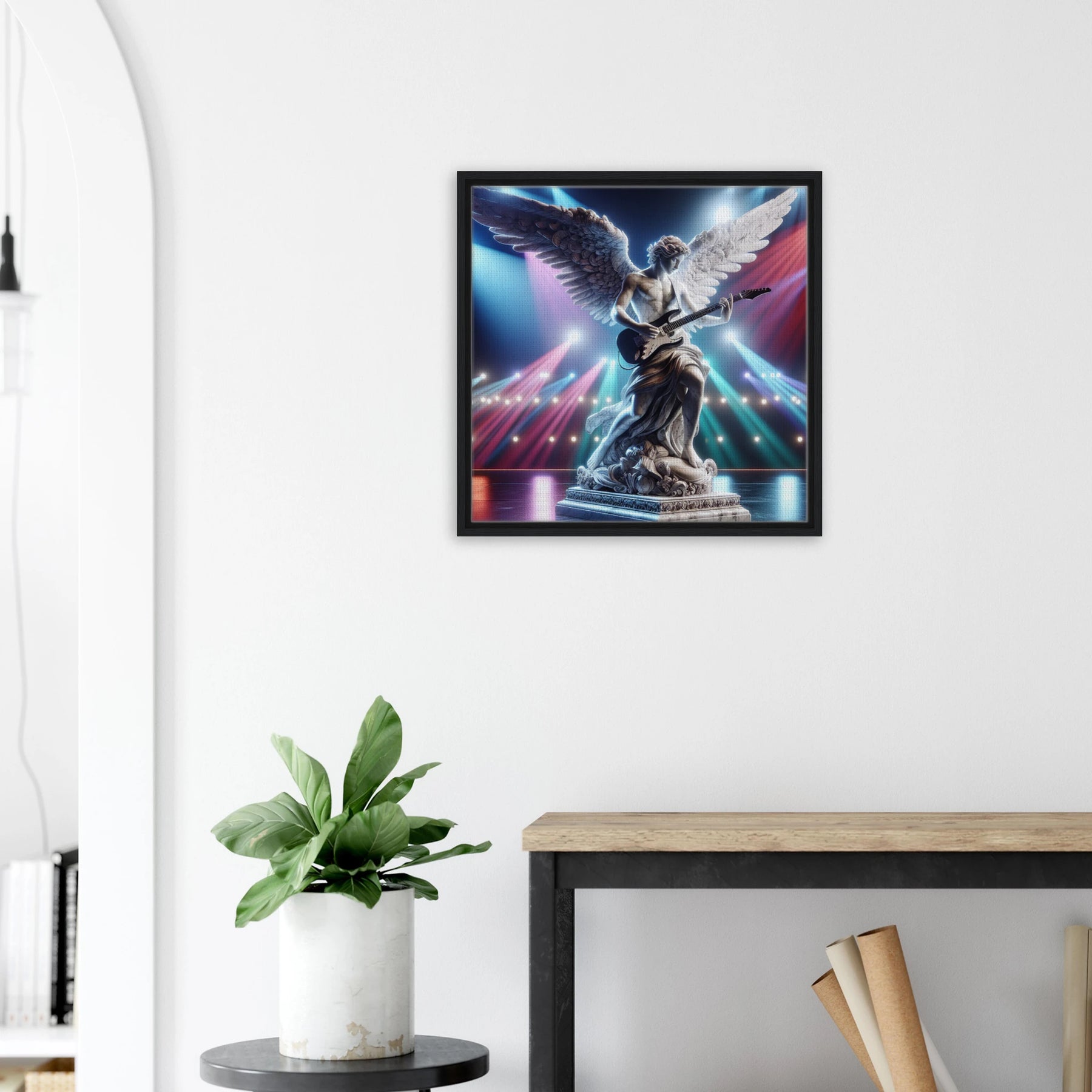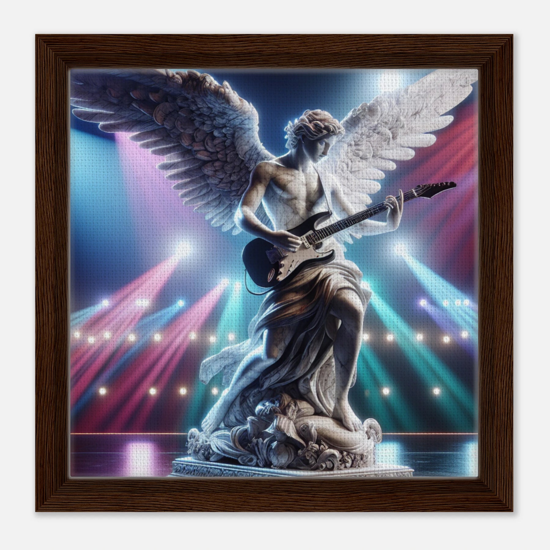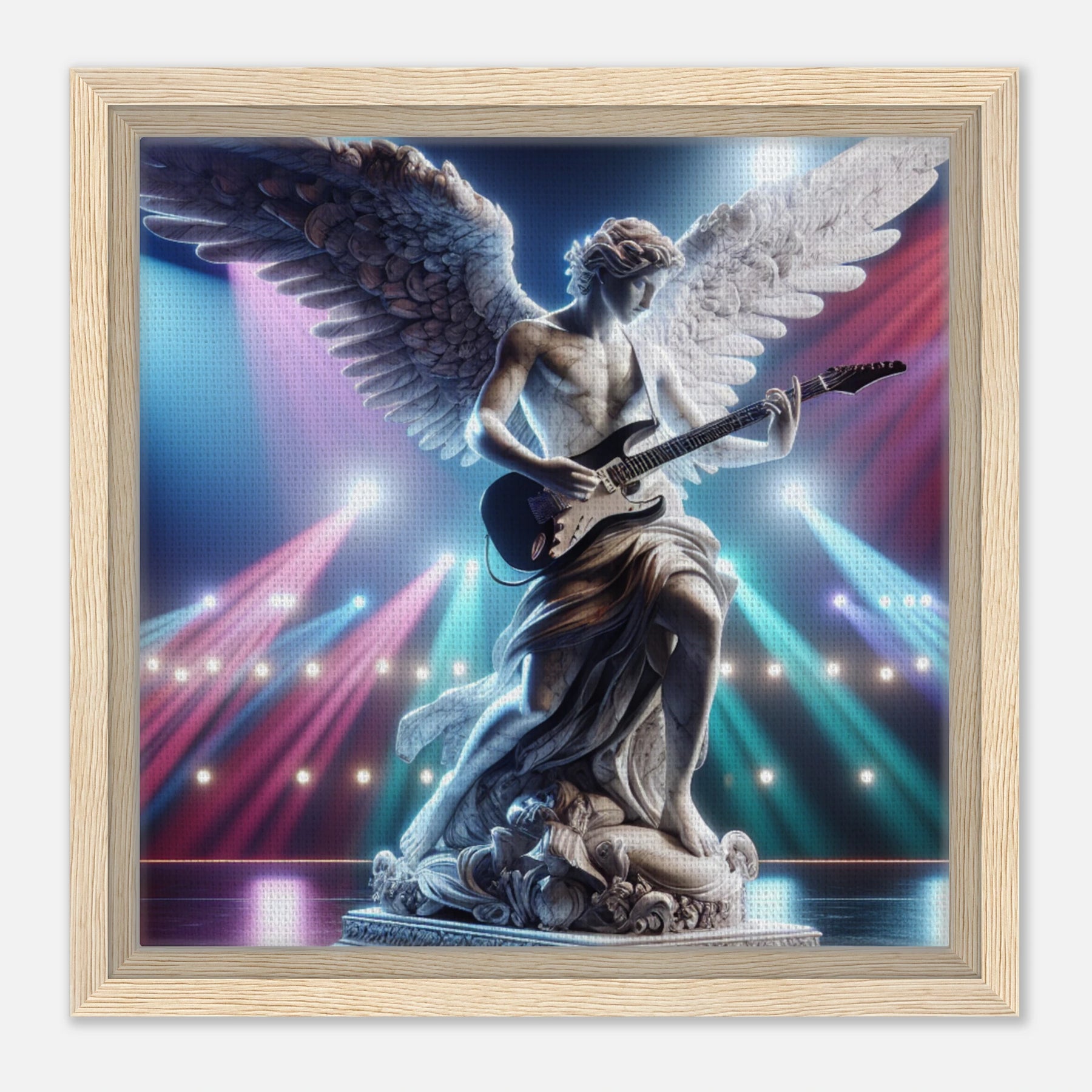Gerahmte Leinwand für das moderne Wohnzimmer - Christentum mit Engelsmotiv trifft Rock Star
