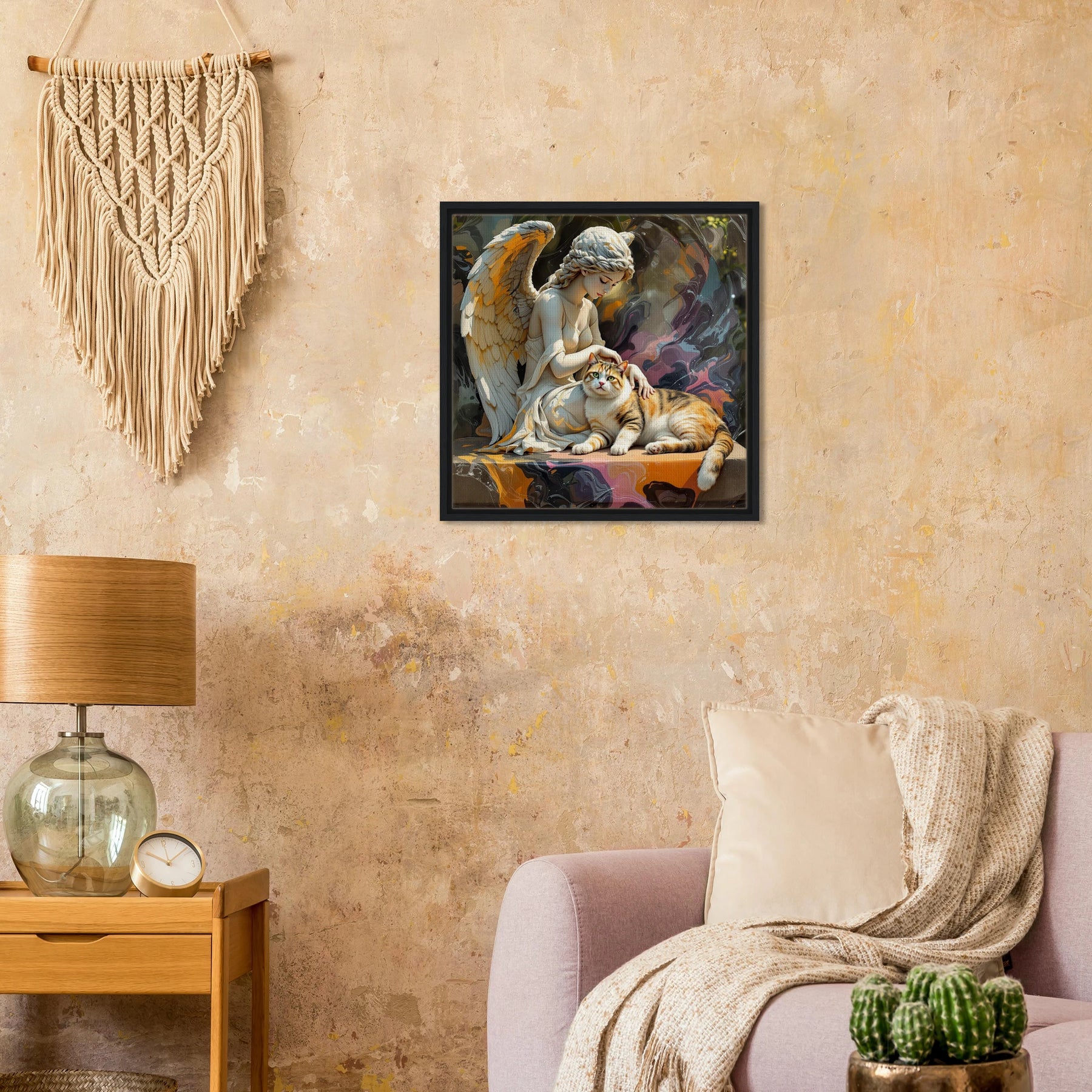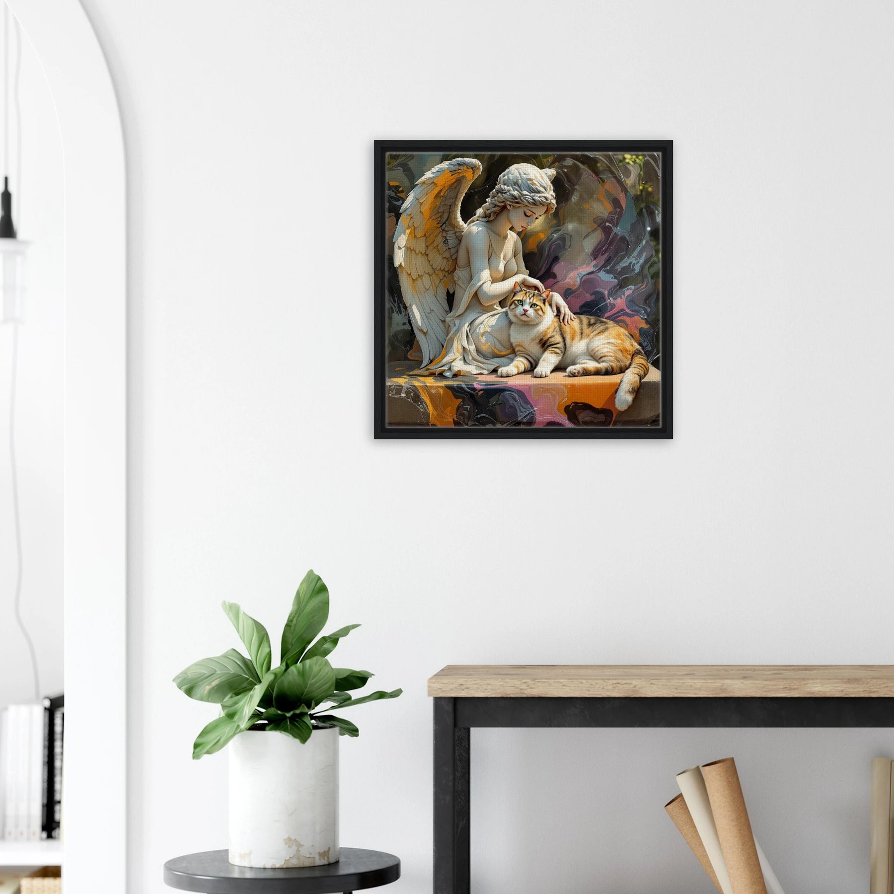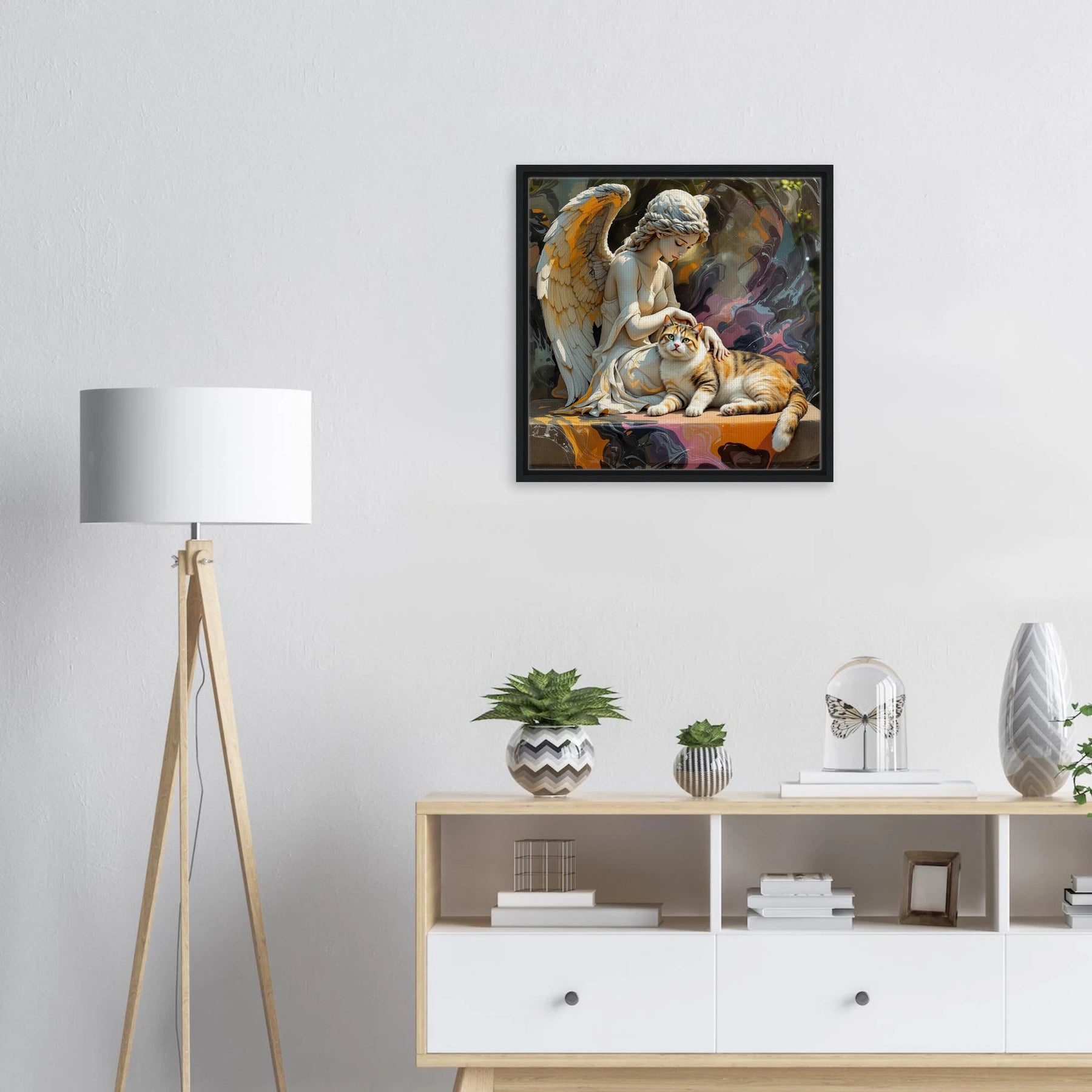 Diese Leinwand zeigt einen Everyday Angel im klassischen Marmor-Stil – ruhig, hell und beständig. Die natürliche Textur der Leinwand und der Rahmen verleihen dem Werk eine stilvolle und beruhigende Präsenz.