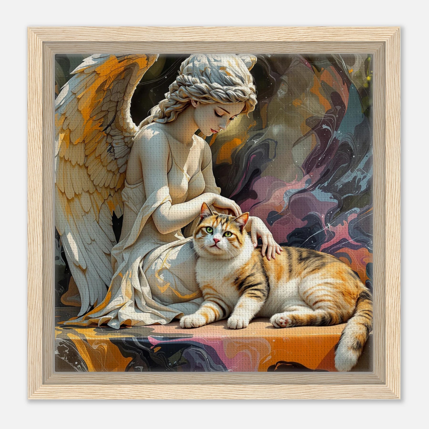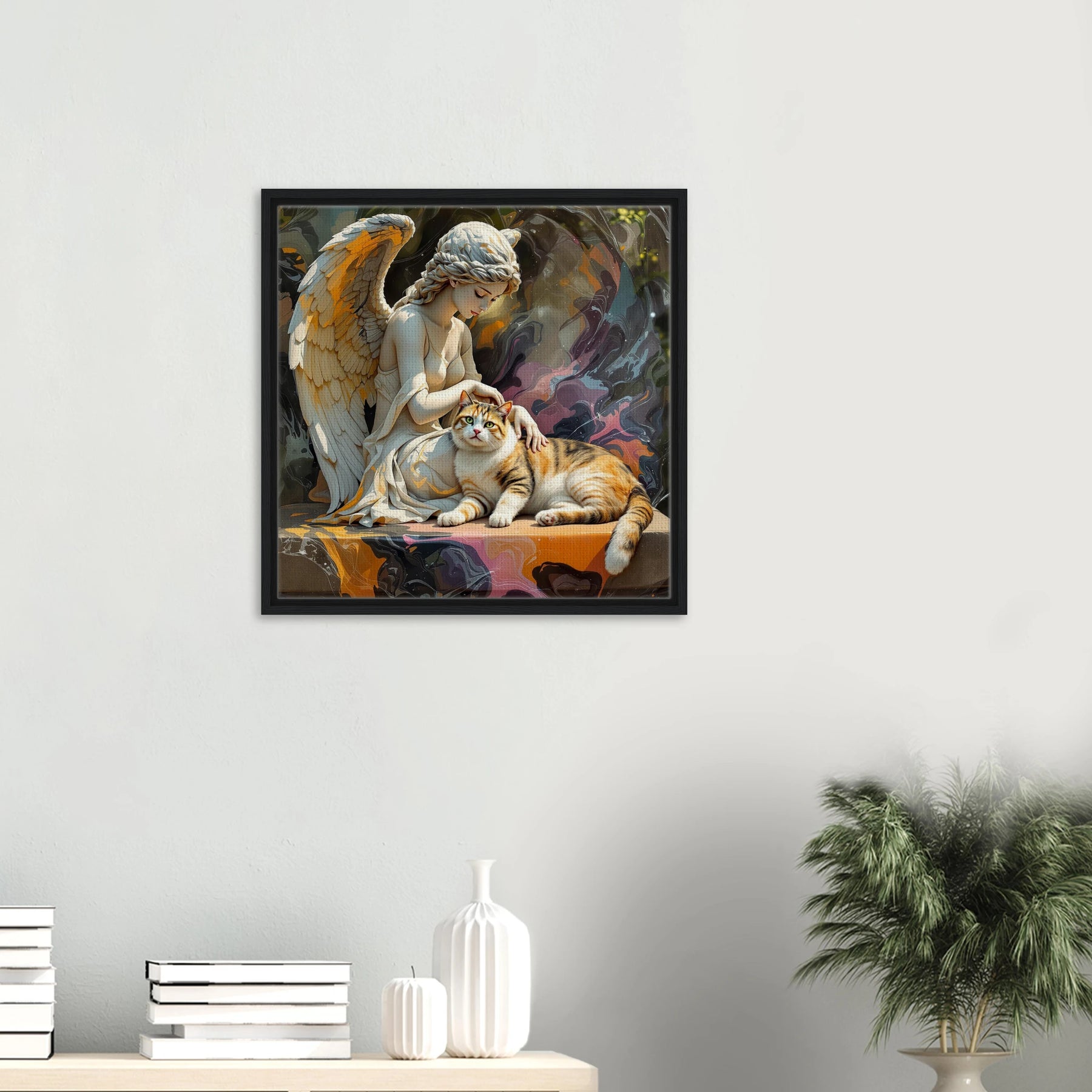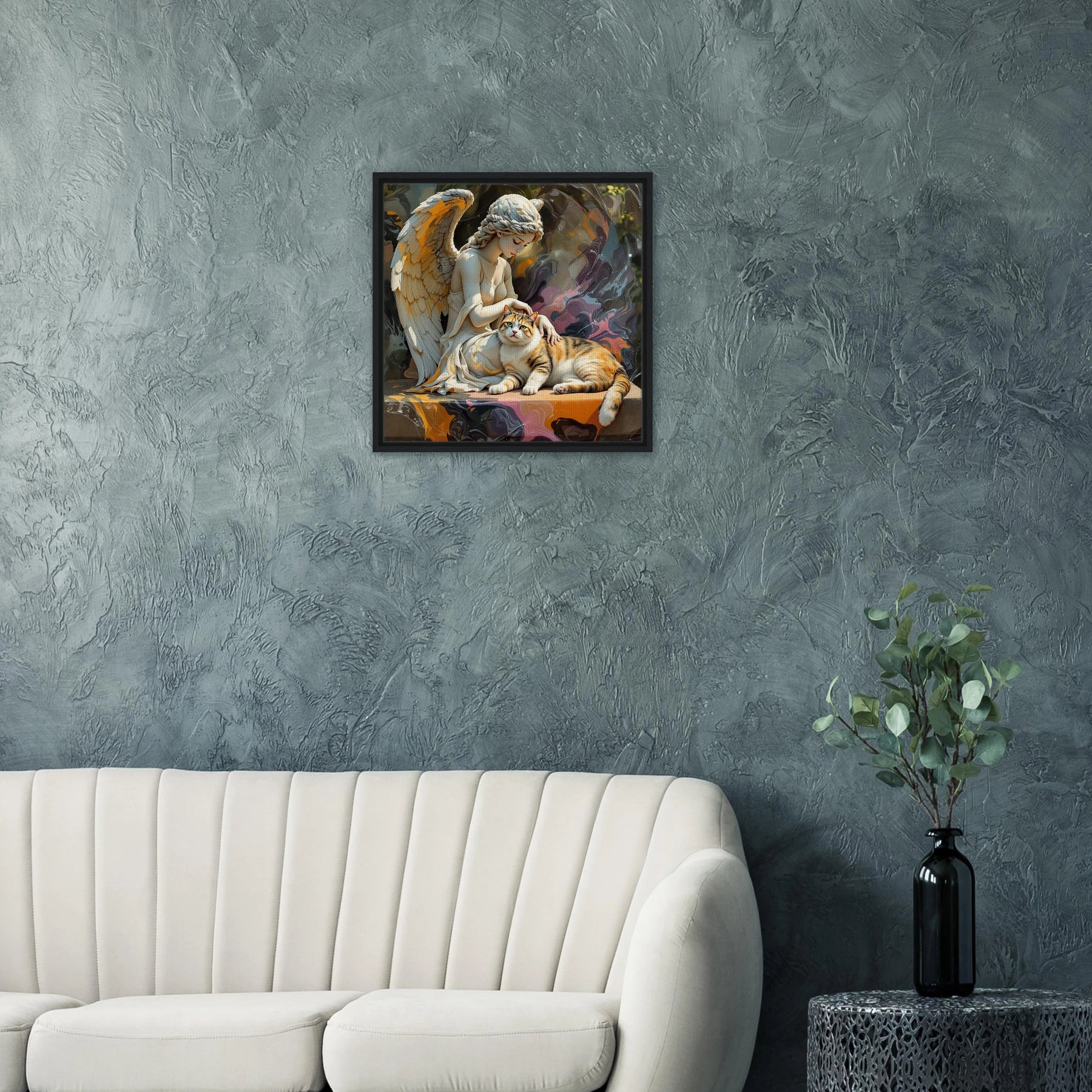 Diese Leinwand zeigt einen Everyday Angel im klassischen Marmor-Stil – ruhig, hell und beständig. Die natürliche Textur der Leinwand und der Rahmen verleihen dem Werk eine stilvolle und beruhigende Präsenz.