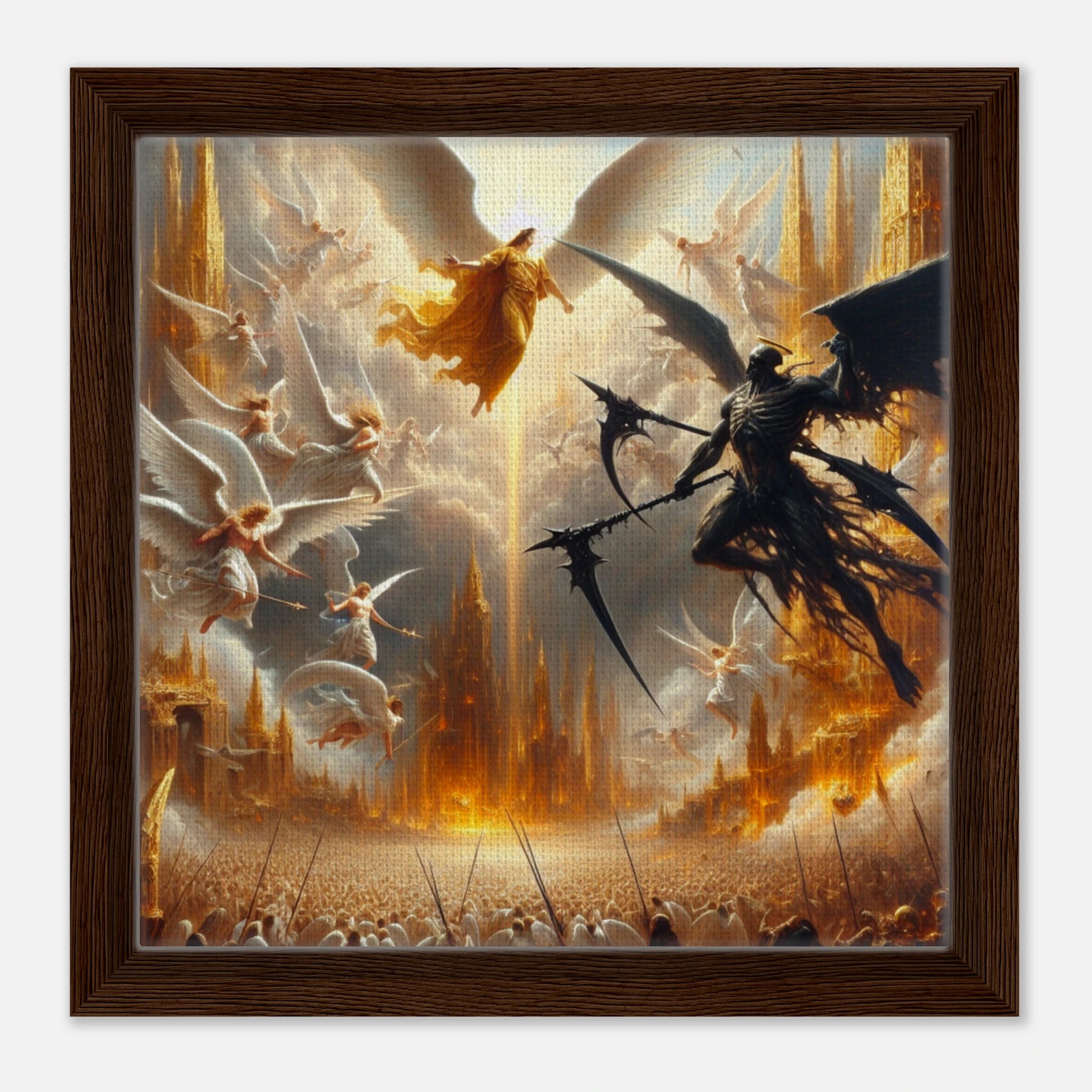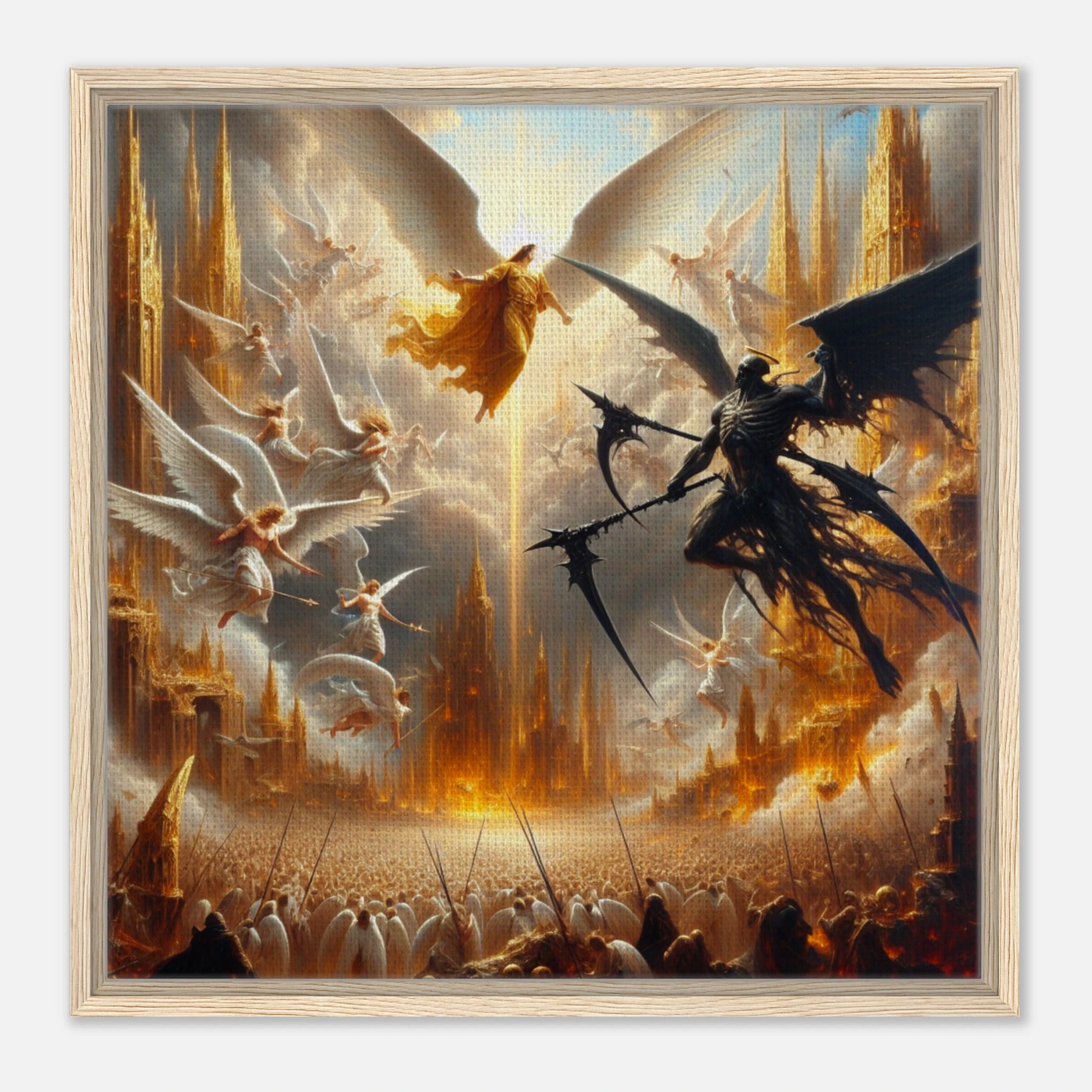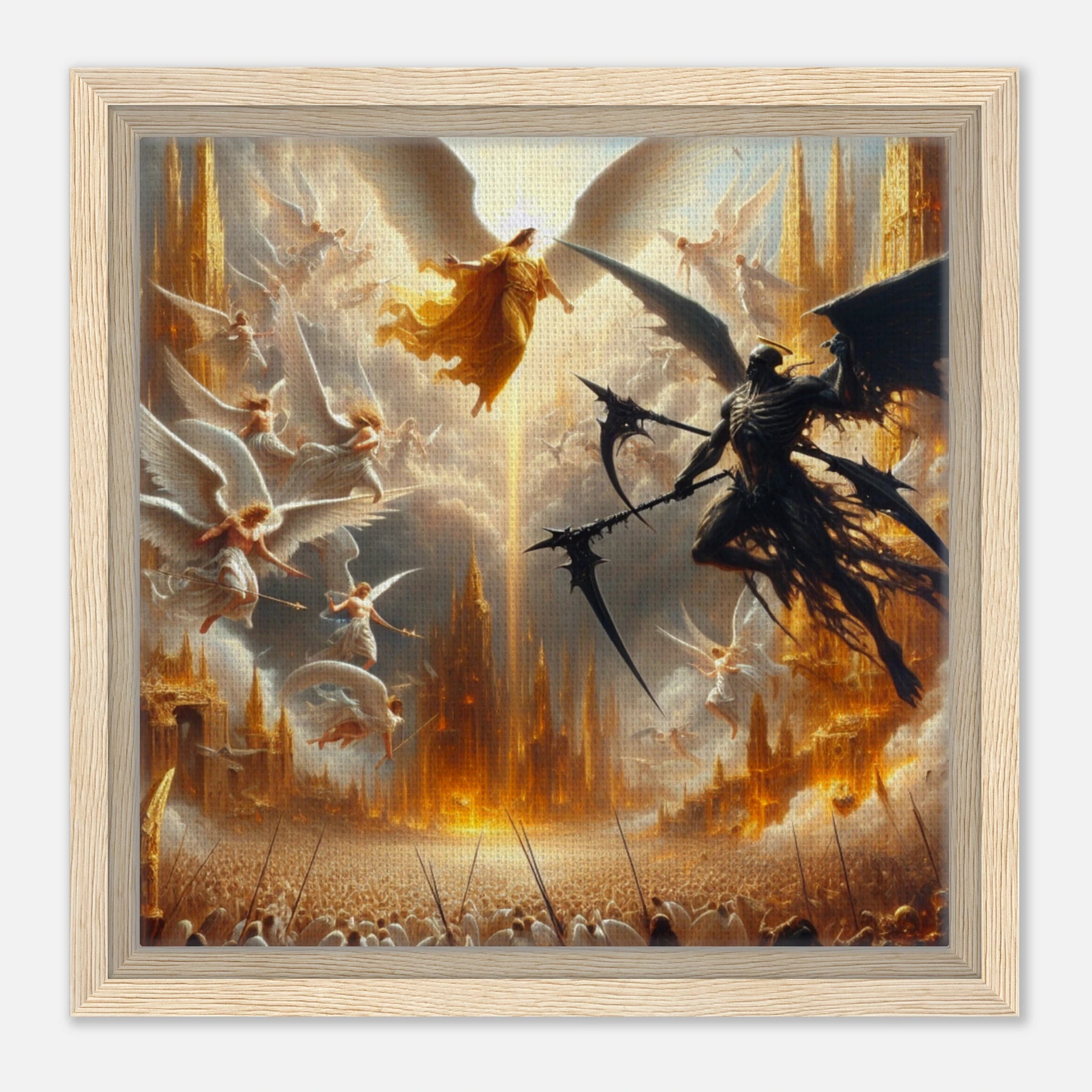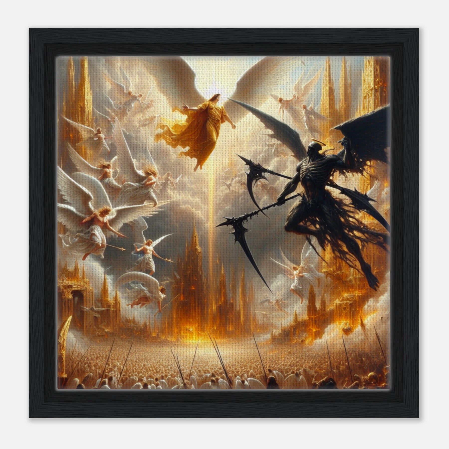 Gerahmte Leinwand: Heaven’s Last Stand, Schutzengel kämpfen gegen dämonischen Engel des Todes, dramatische Wanddekoration für Wohnzimmer und Spielzimmer