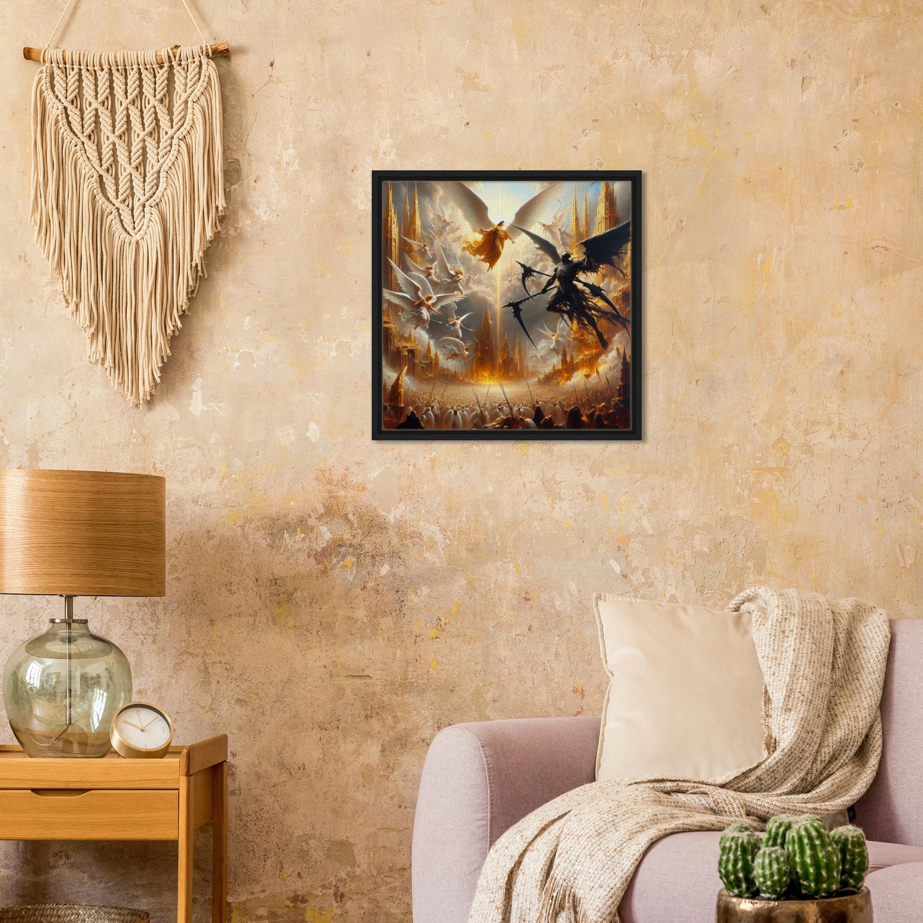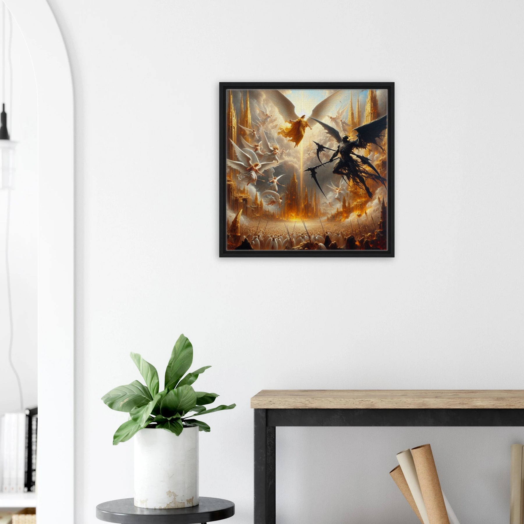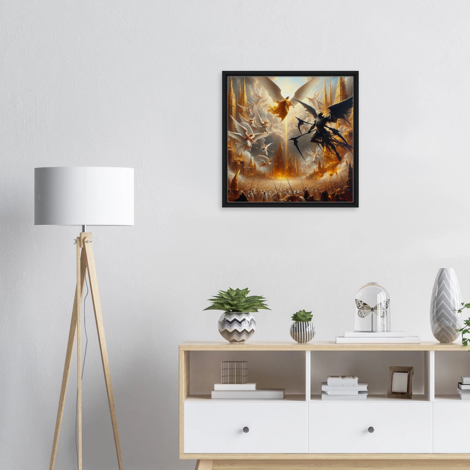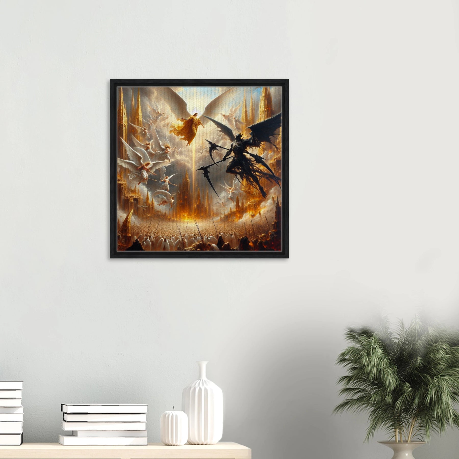 Gerahmte Leinwand: Heaven’s Last Stand, Schutzengel kämpfen gegen dämonischen Engel des Todes, dramatische Wanddekoration für Wohnzimmer und Spielzimmer