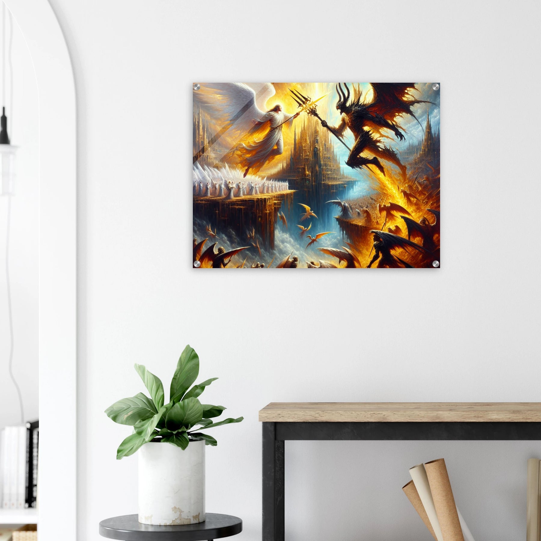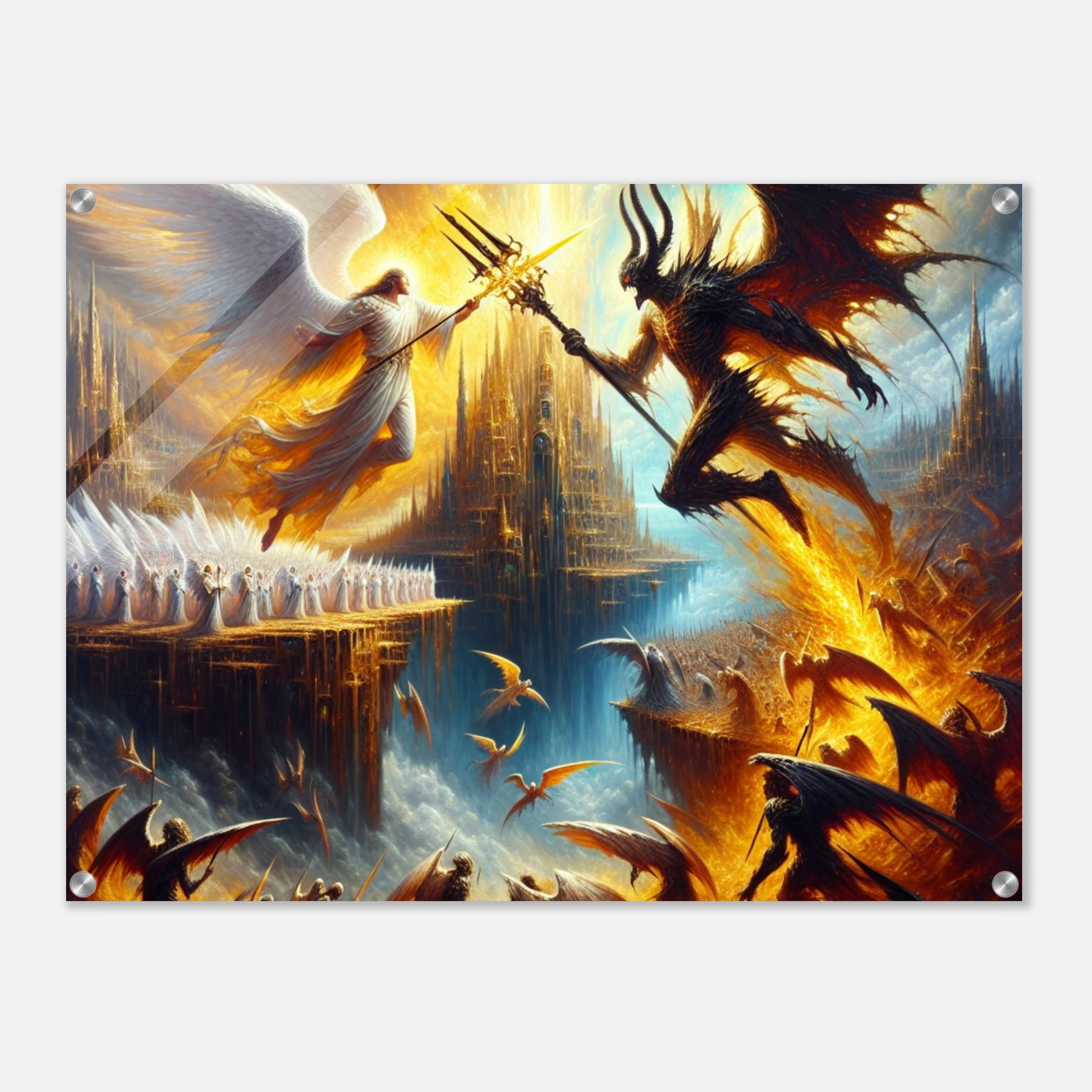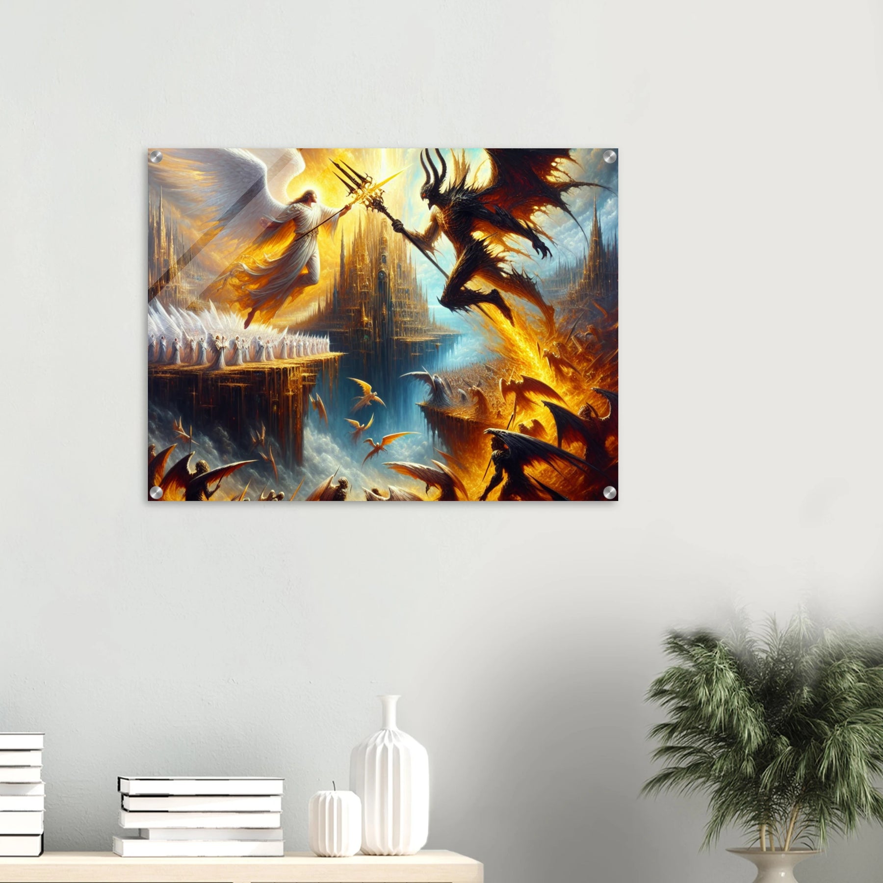Acrylglasdruck: Epische Schlacht zwischen guten und bösen Engeln, Heere der Schutzengel gegen Todesengel, Teufel und Dämonen, fesselnde Wandkunst für Fantasy-Liebhaber und Gamer