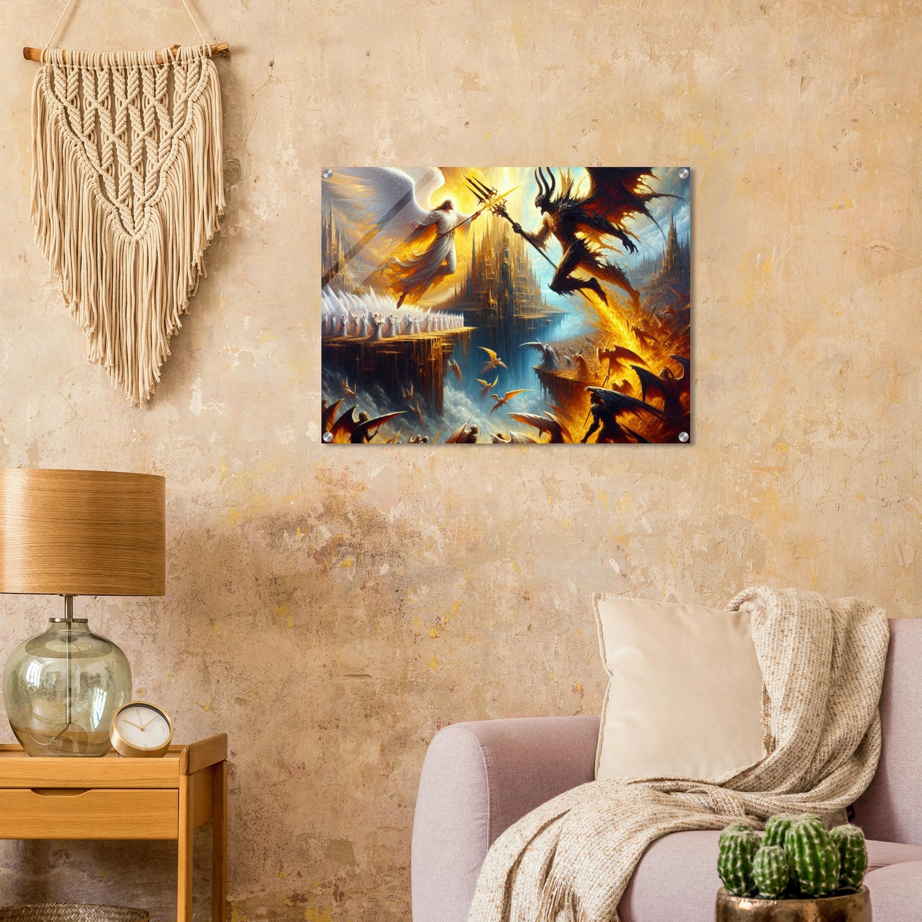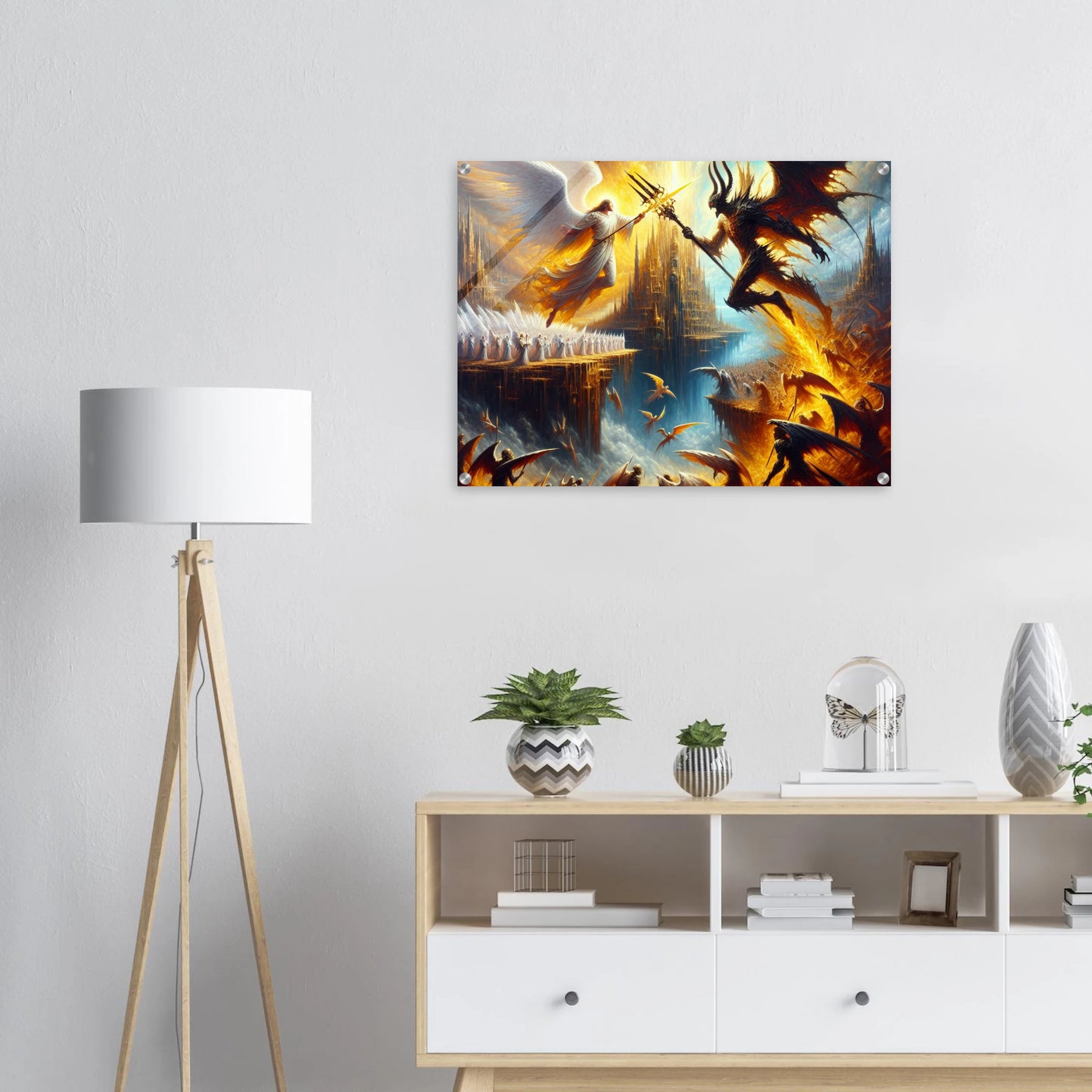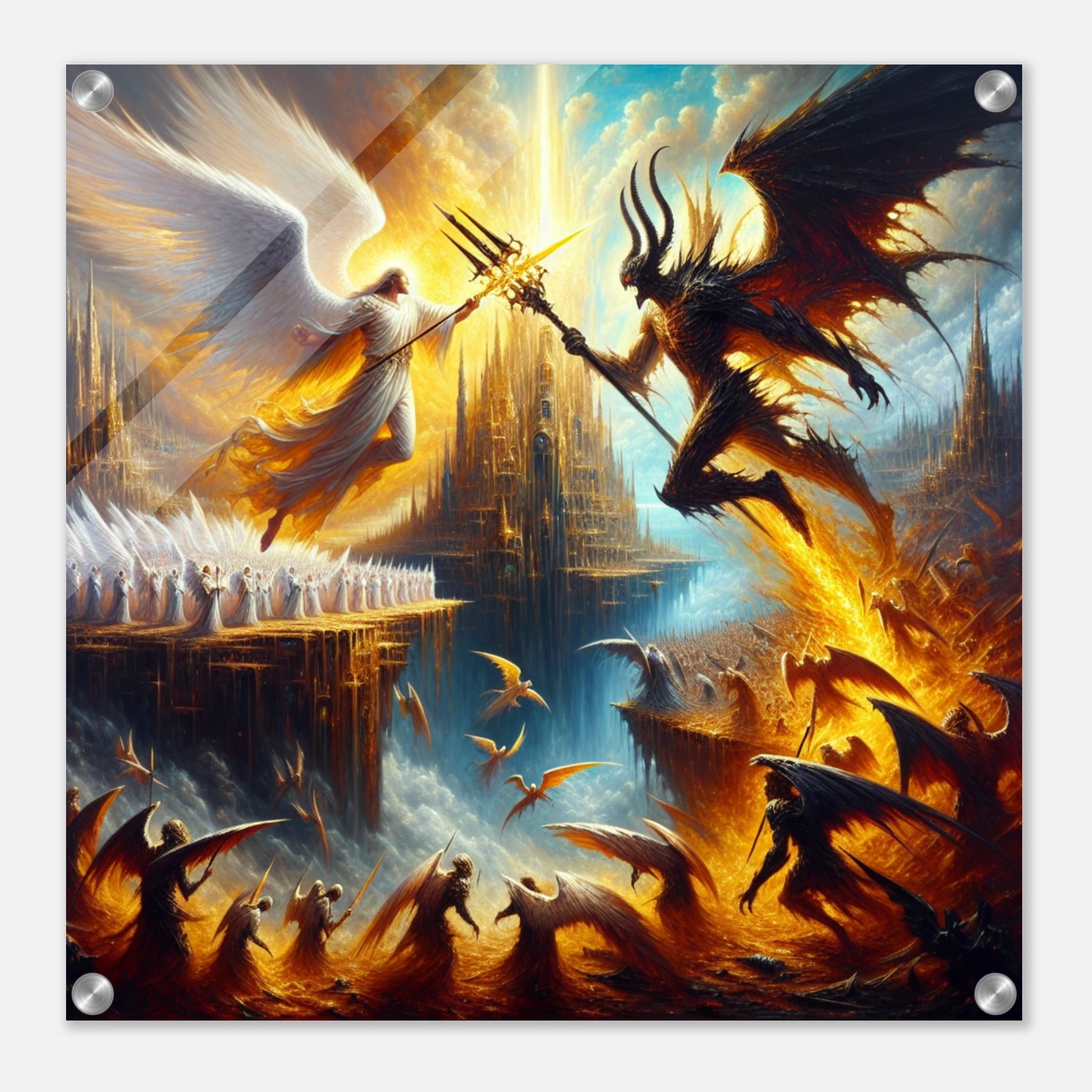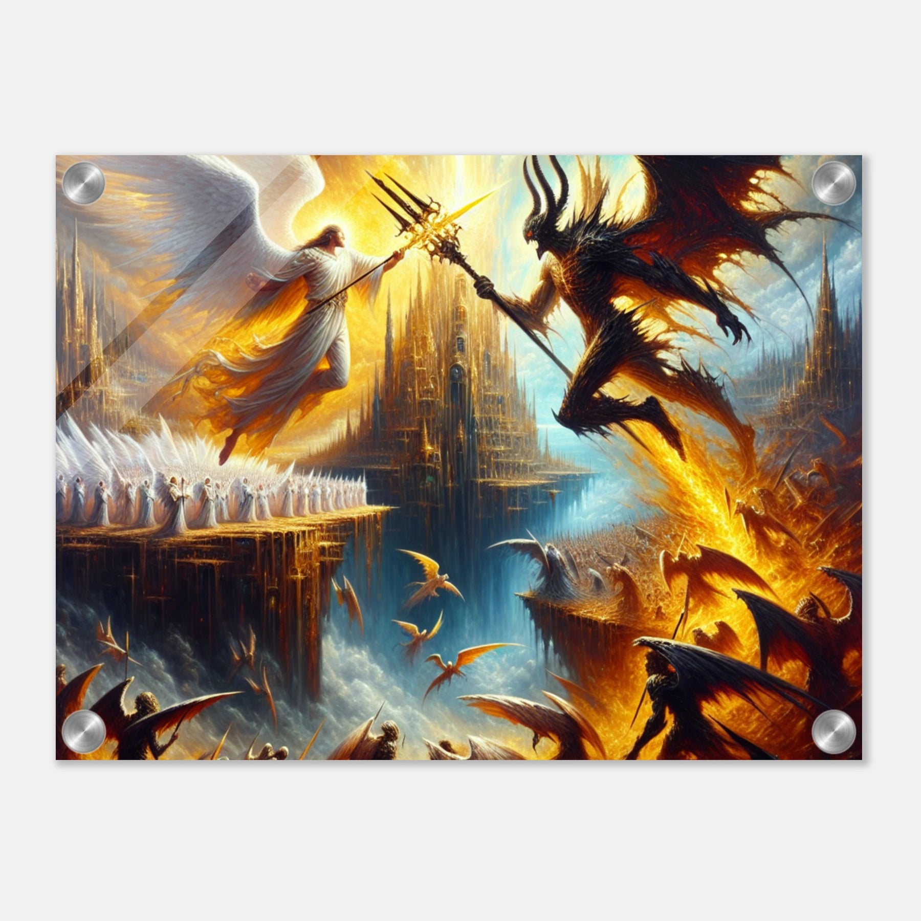 Acrylglasdruck: Epische Schlacht zwischen guten und bösen Engeln, Heere der Schutzengel gegen Todesengel, Teufel und Dämonen, fesselnde Wandkunst für Fantasy-Liebhaber und Gamer