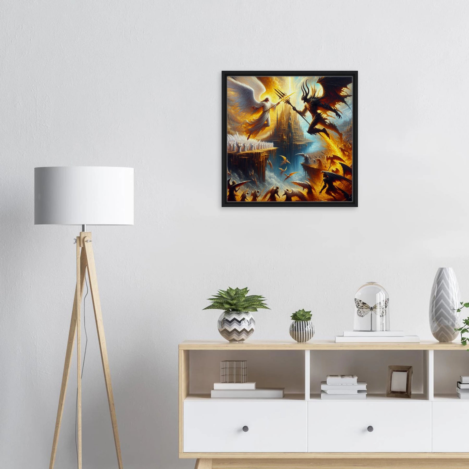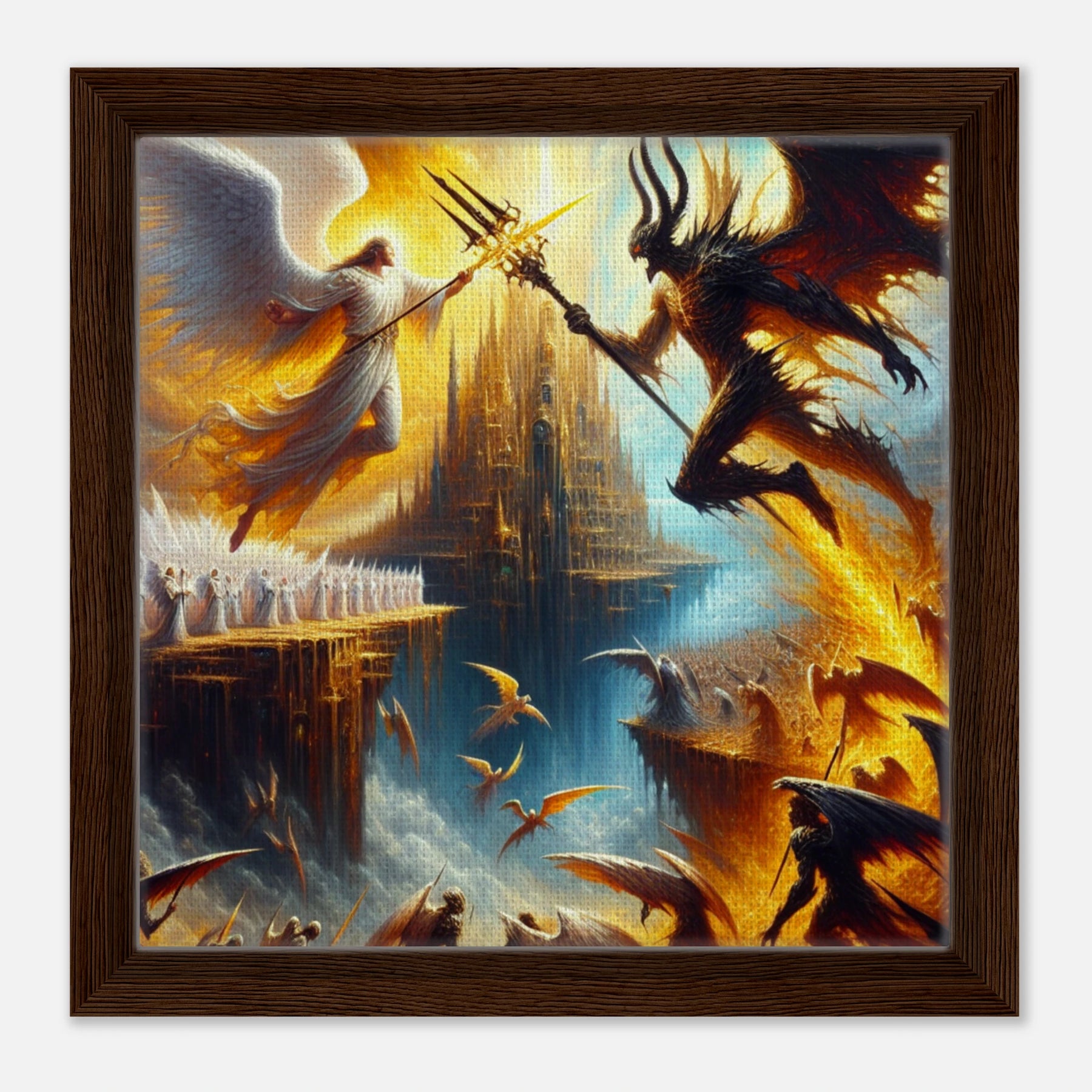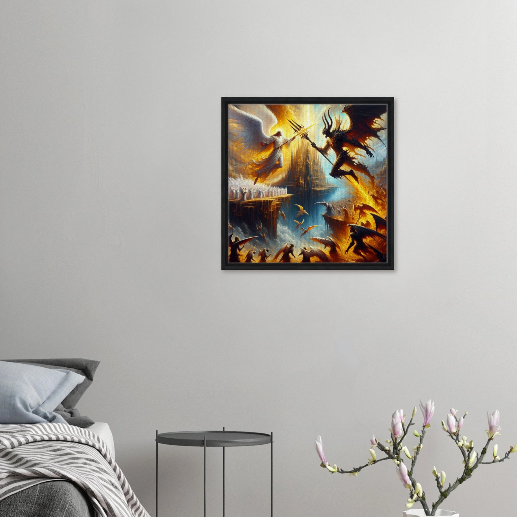 Gerahmte Leinwand: Epische Schlacht zwischen Licht und Dunkelheit, Schutzengel gegen Todesengel, Teufel und Dämonen, dramatische Wanddekoration für Wohnzimmer und Spielzimmer