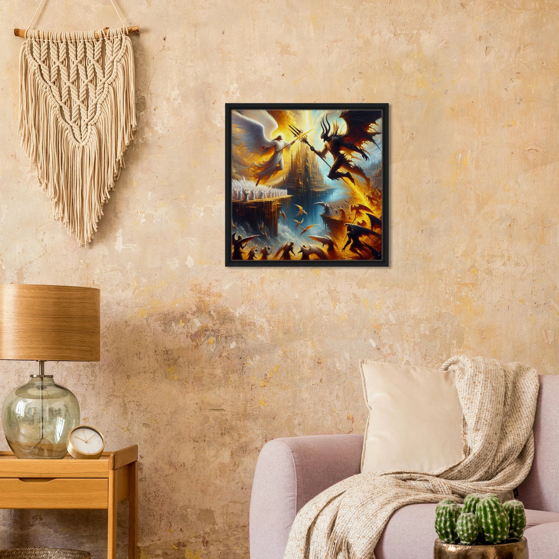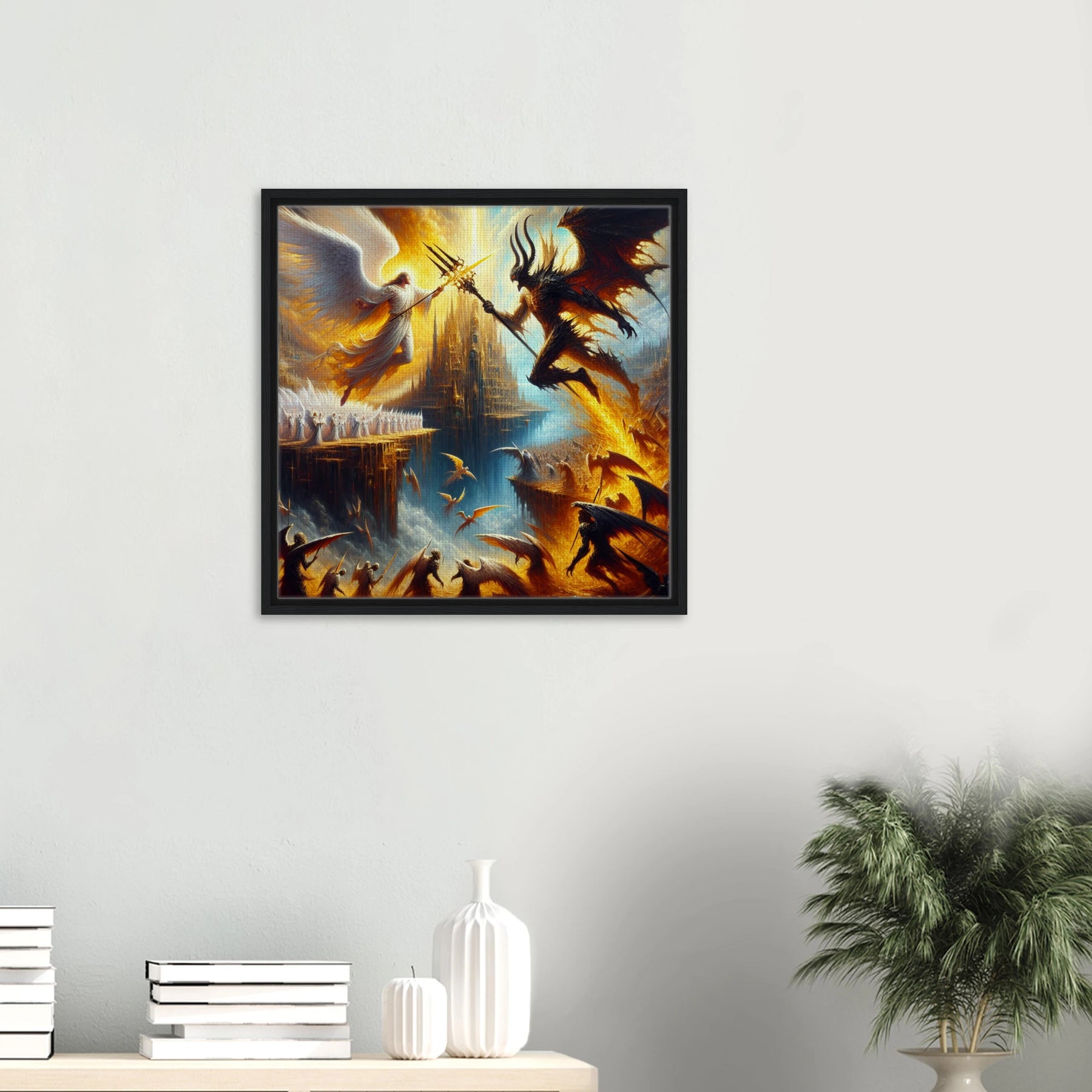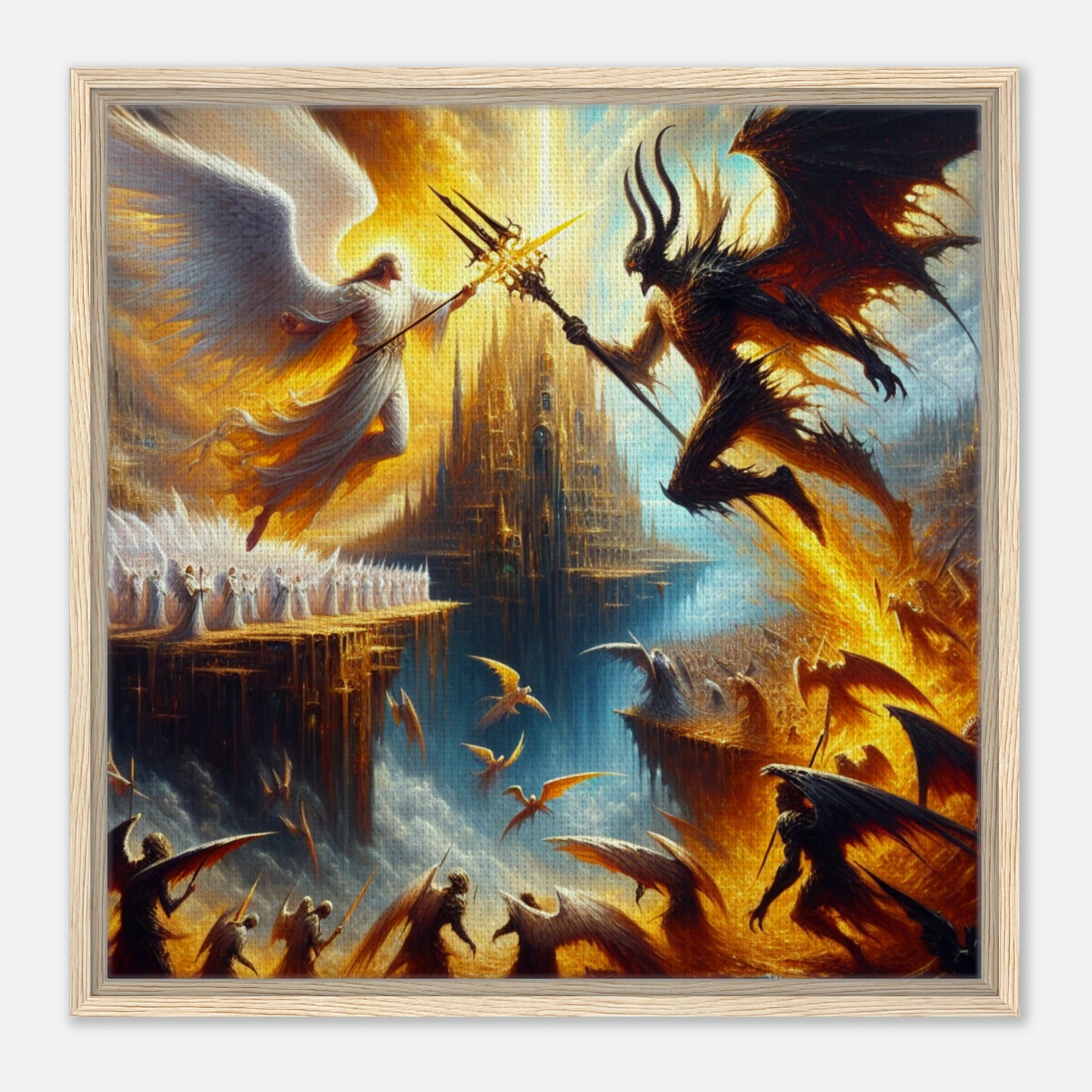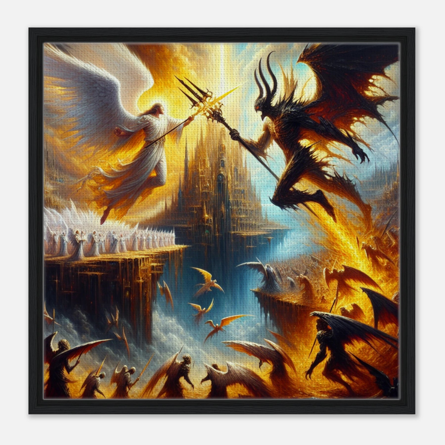 Gerahmte Leinwand: Epische Schlacht zwischen Licht und Dunkelheit, Schutzengel gegen Todesengel, Teufel und Dämonen, dramatische Wanddekoration für Wohnzimmer und Spielzimmer