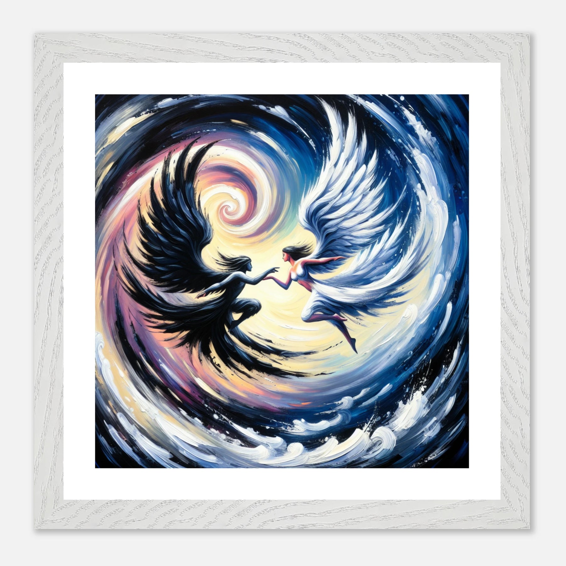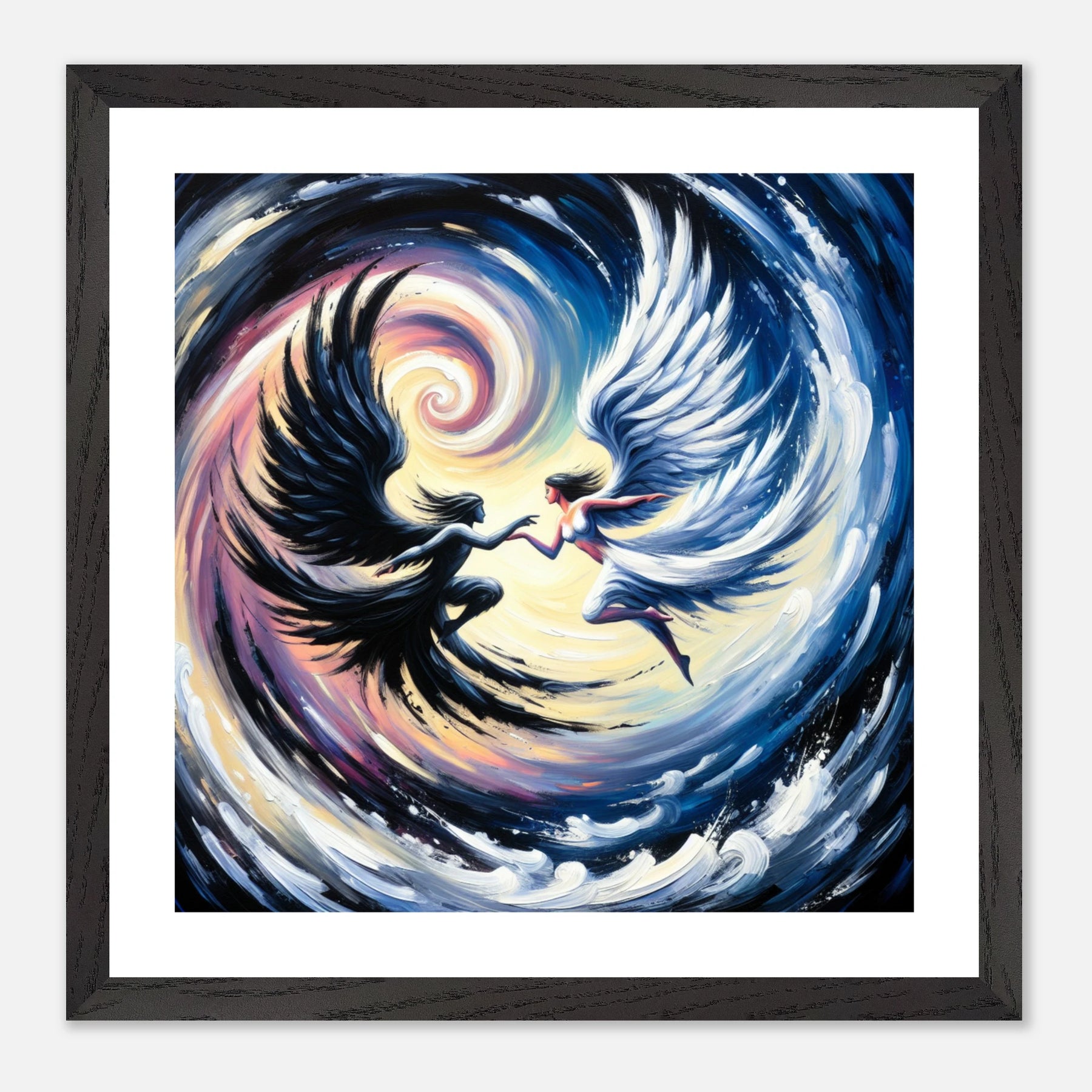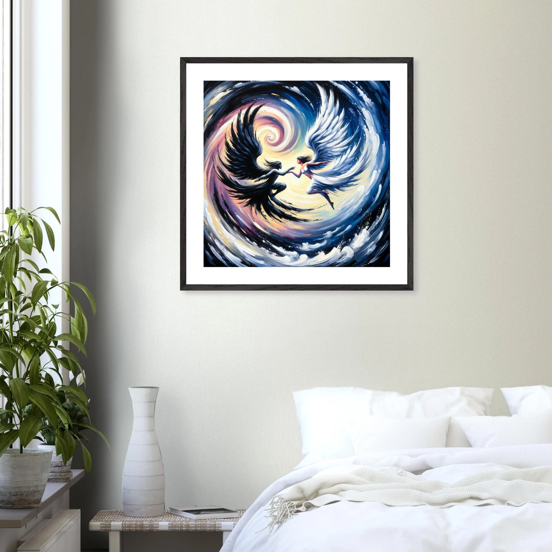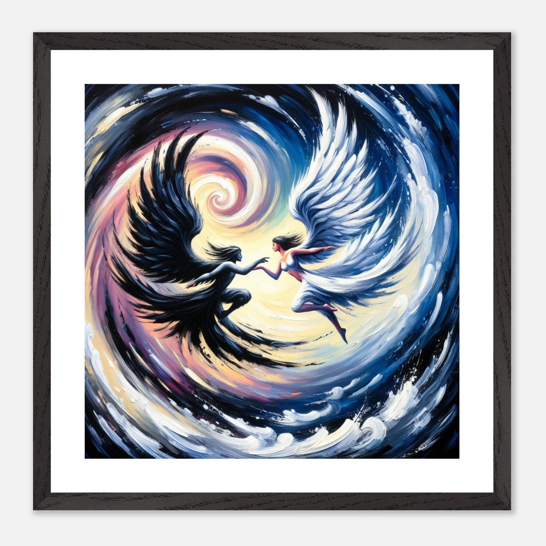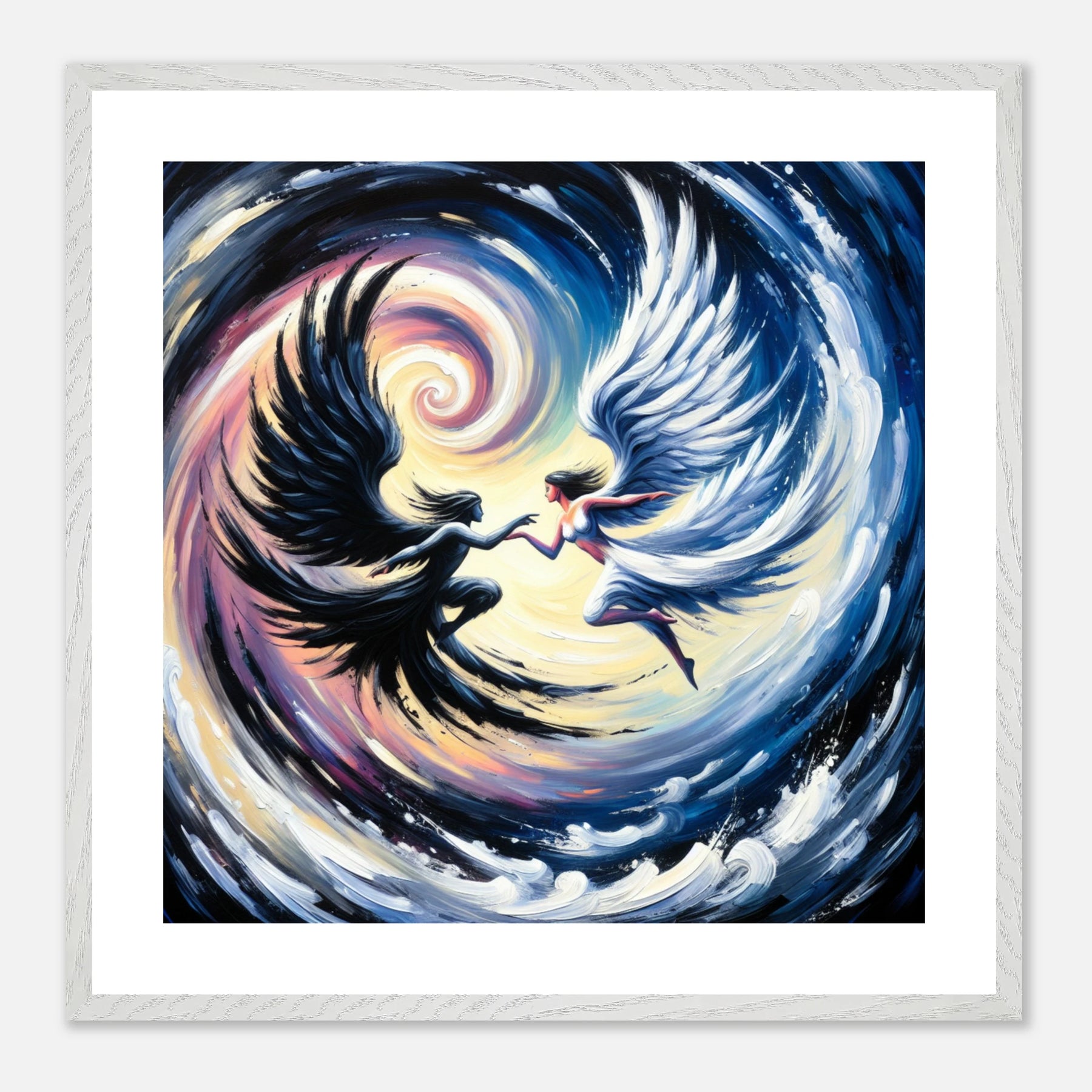 Gerahmtes Premium-Poster: Verschwommene Fusion zwischen Todesengel und Schutzengel, in sich drehend, ideale Wandkunst für Schlafzimmer oder Meditationsraum