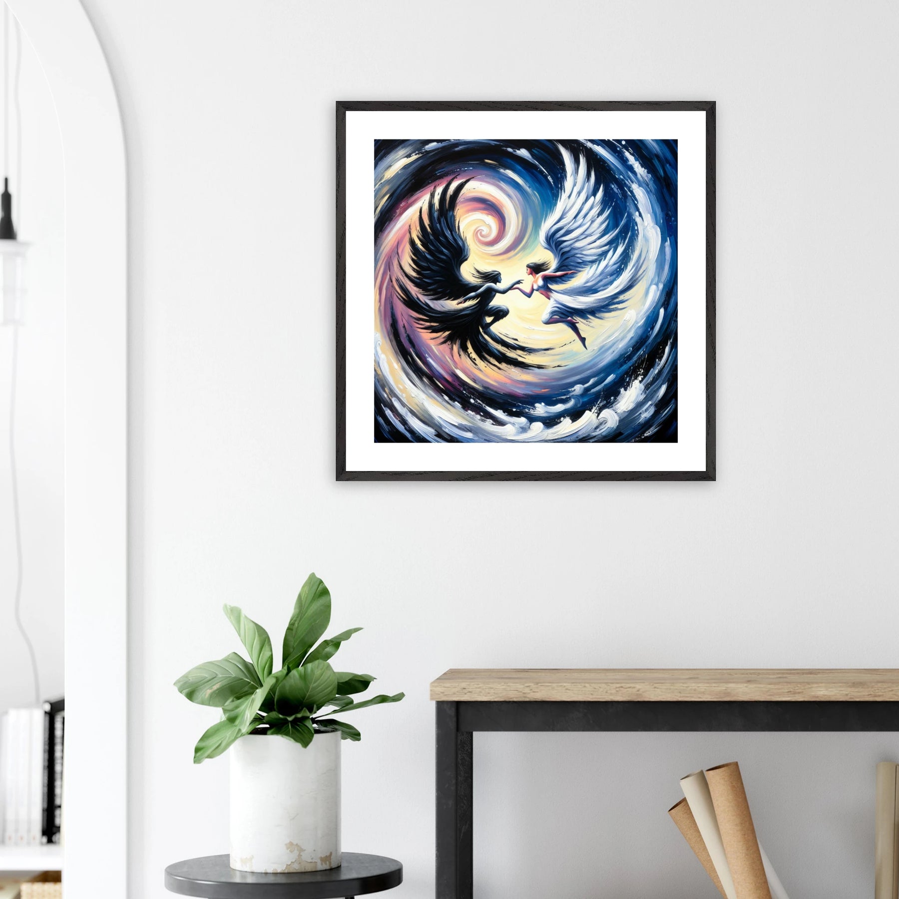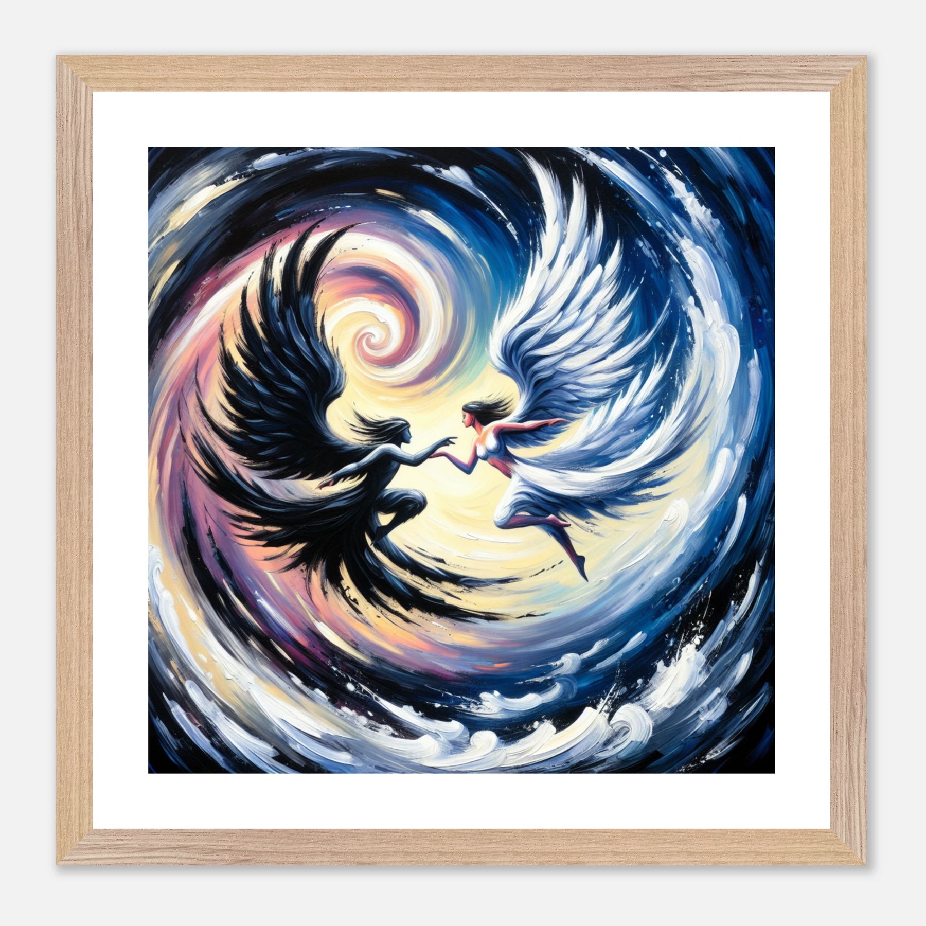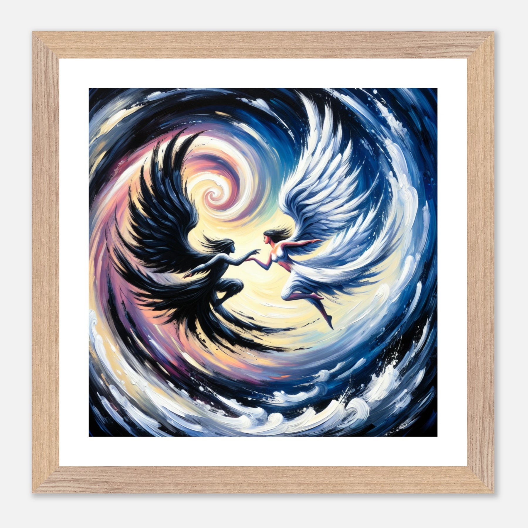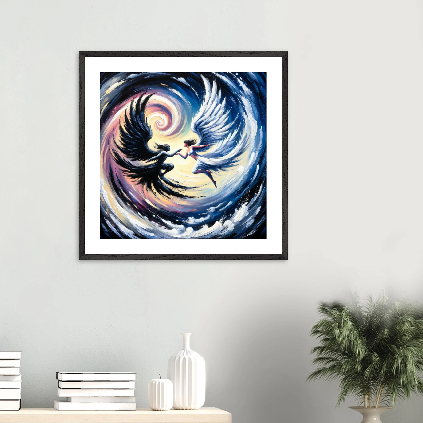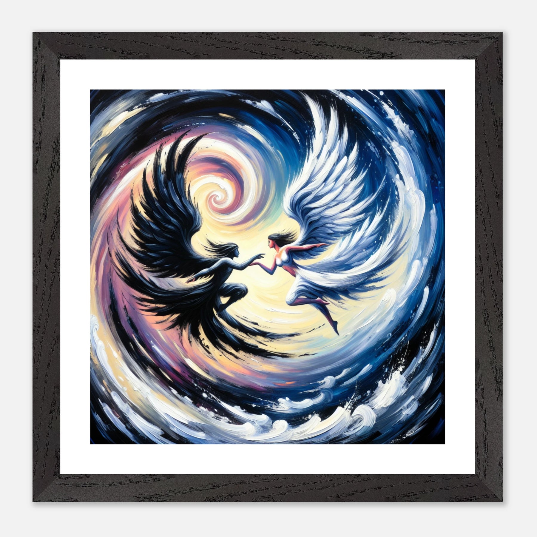 Gerahmtes Premium-Poster: Verschwommene Fusion zwischen Todesengel und Schutzengel, in sich drehend, ideale Wandkunst für Schlafzimmer oder Meditationsraum