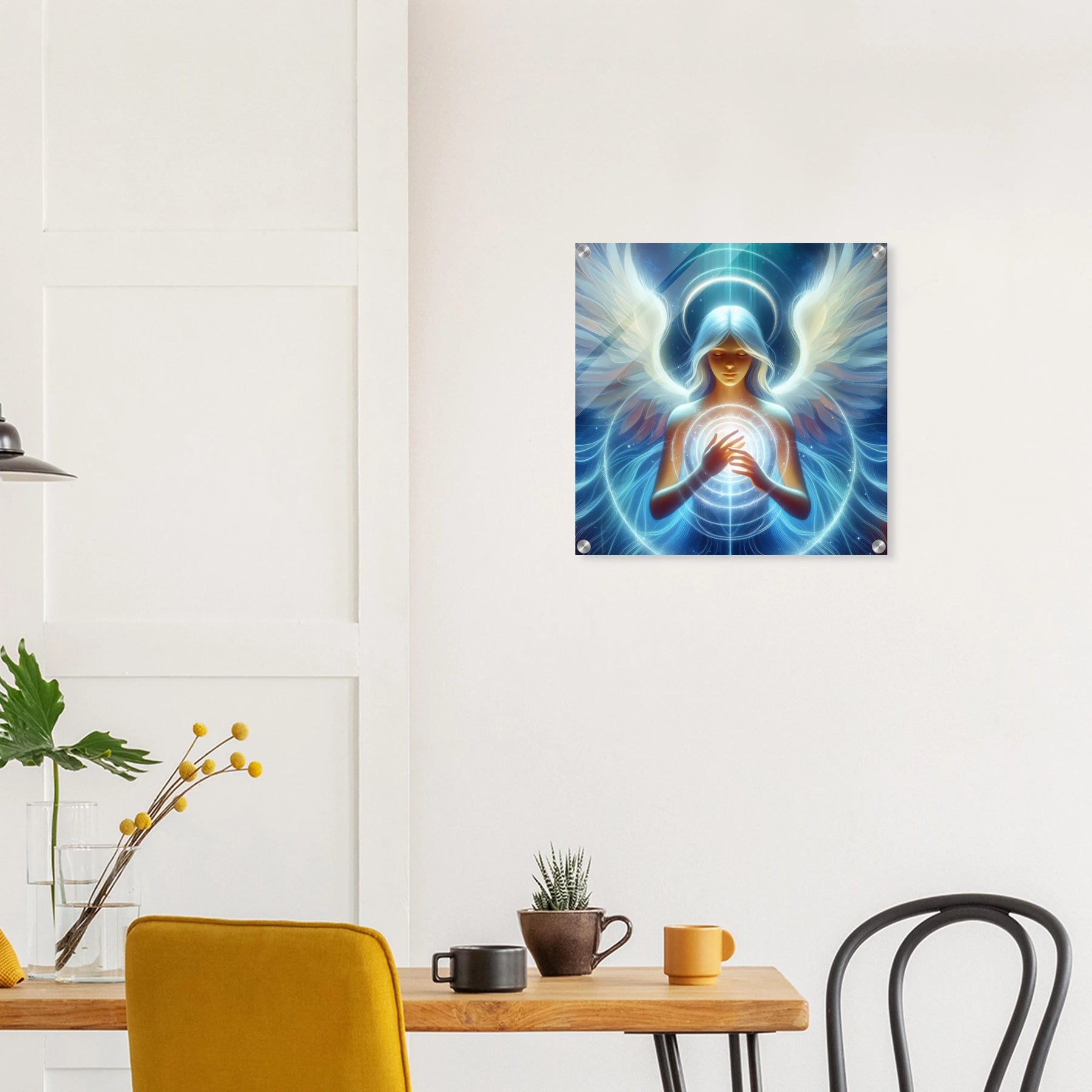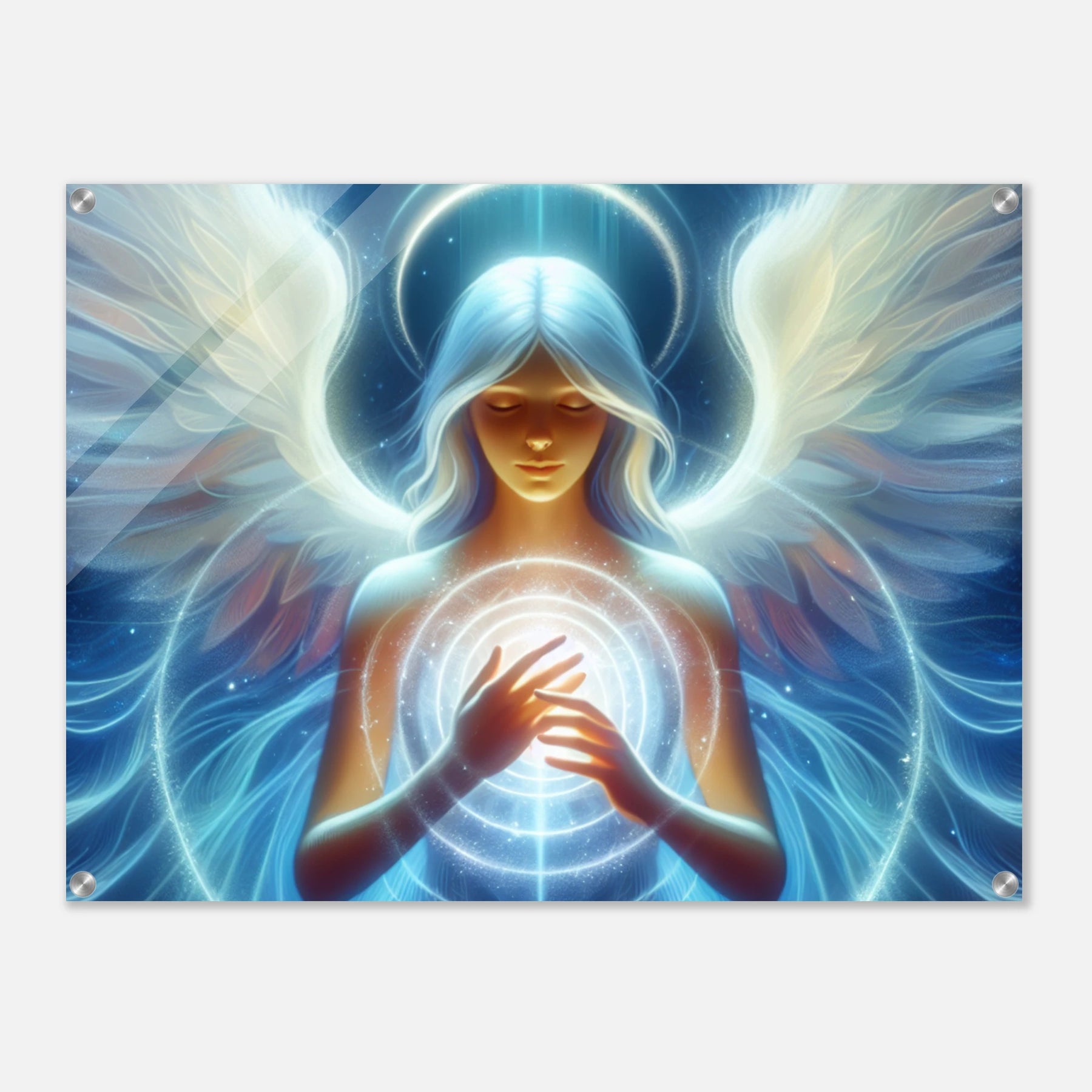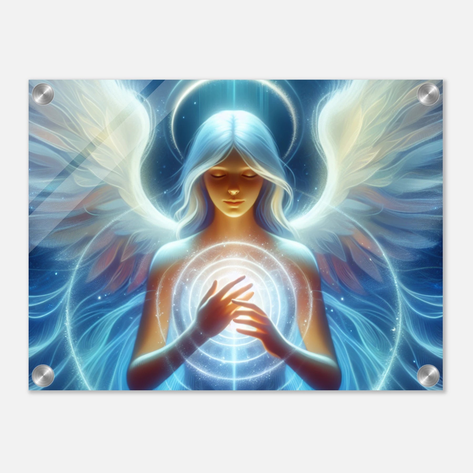 Acrylglasdruck – Himmlische Stärke auf glänzendem Grund