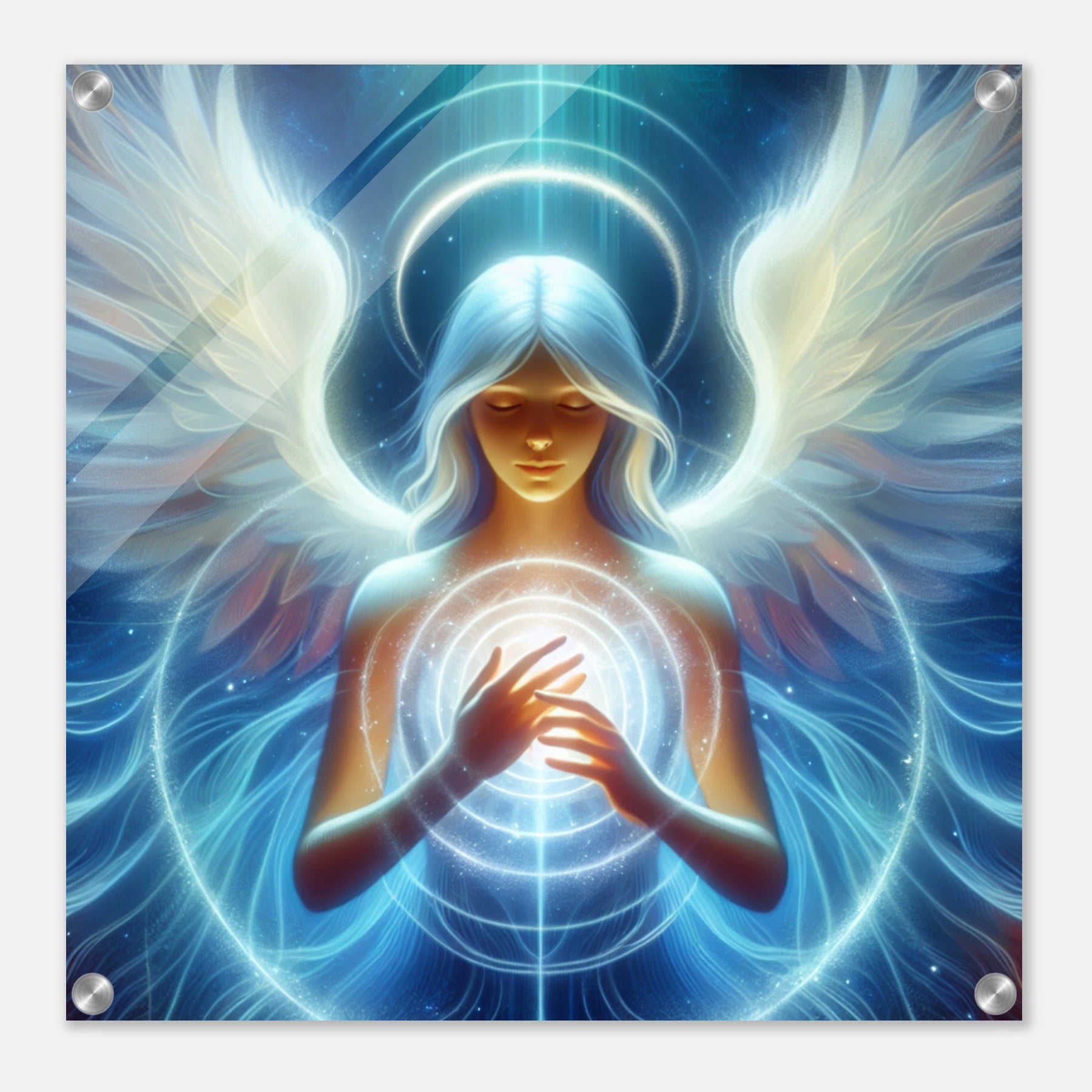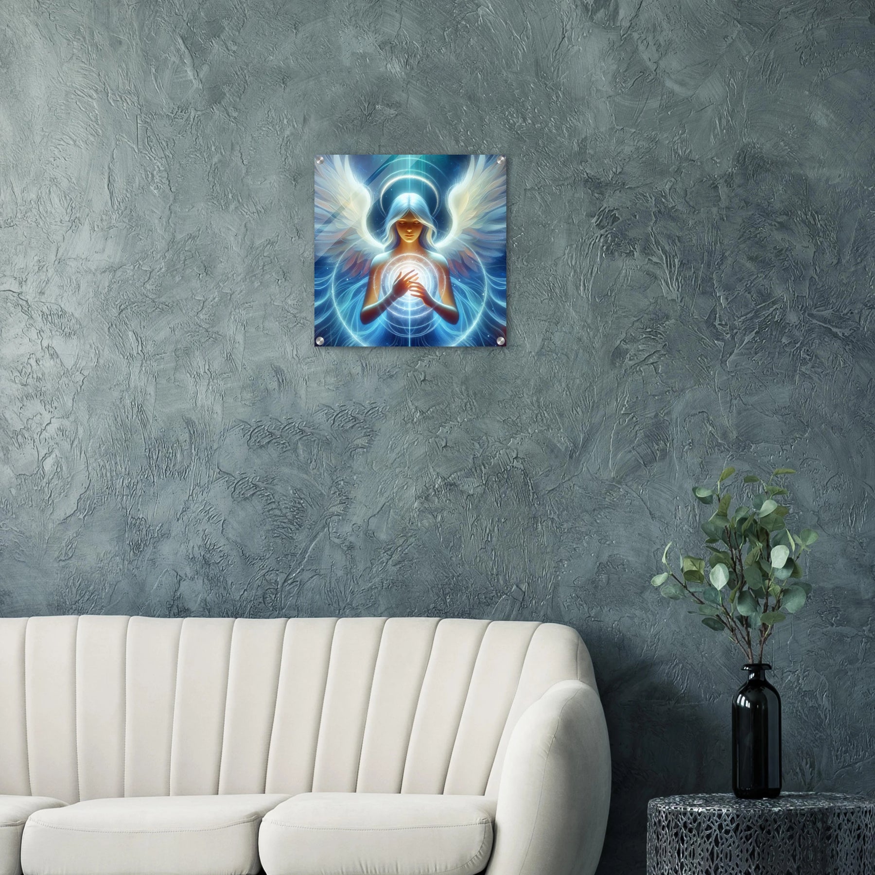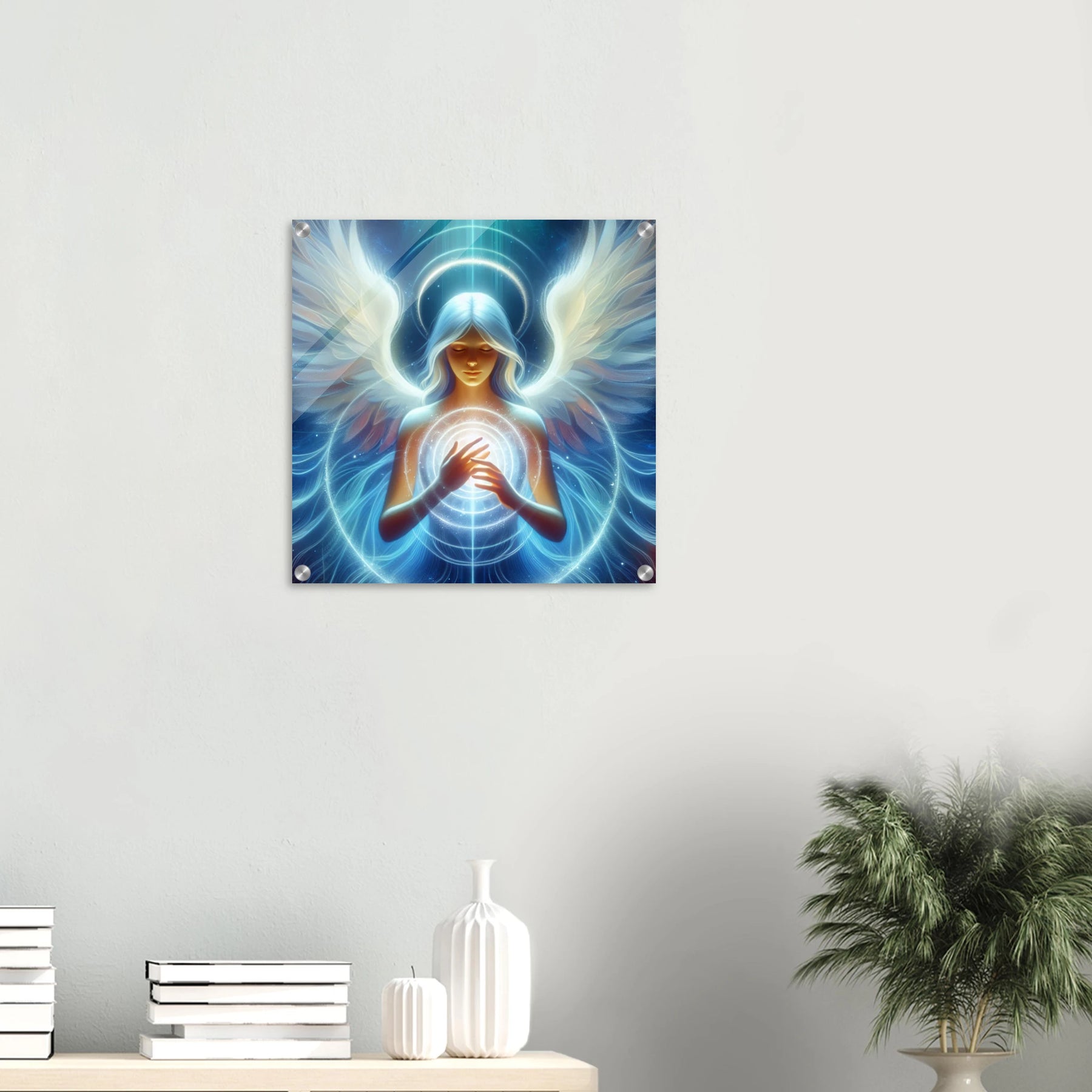 Acrylglasdruck – Himmlische Stärke auf glänzendem Grund