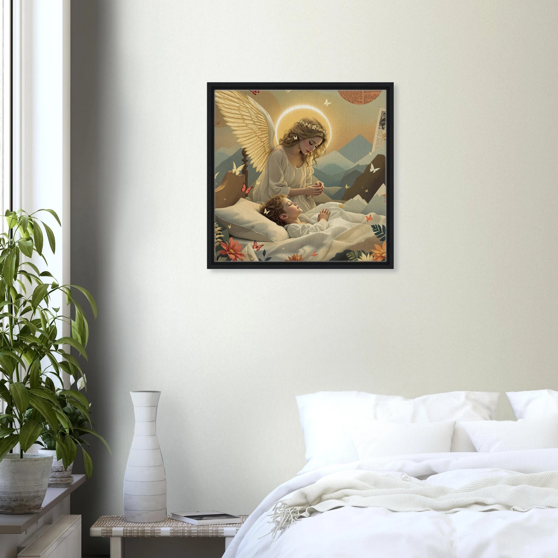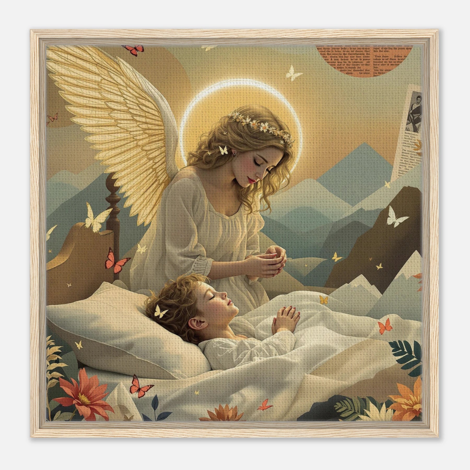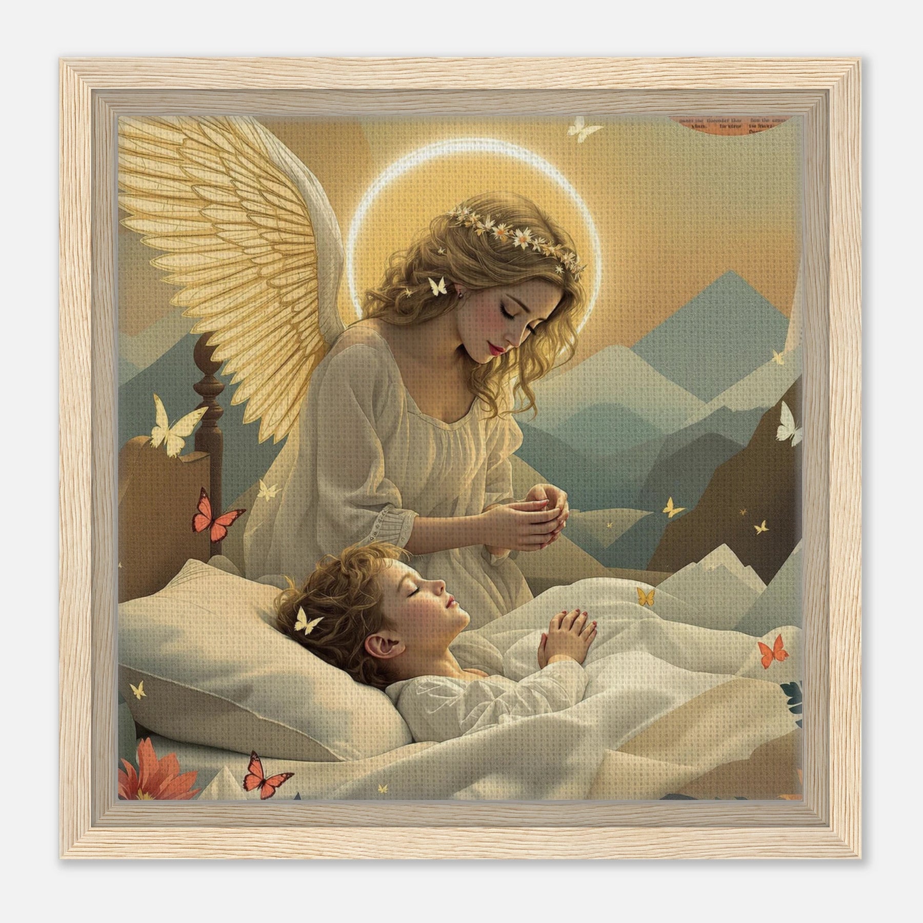 Diese gerahmte Leinwand zeigt einen Guardian Angel – lichtvoll, beschützend und voller Anmut. Die strukturierte Oberfläche bringt Wärme und Tiefe ins Motiv, während der edle Rahmen dem Bild seine stille Eleganz verleiht.