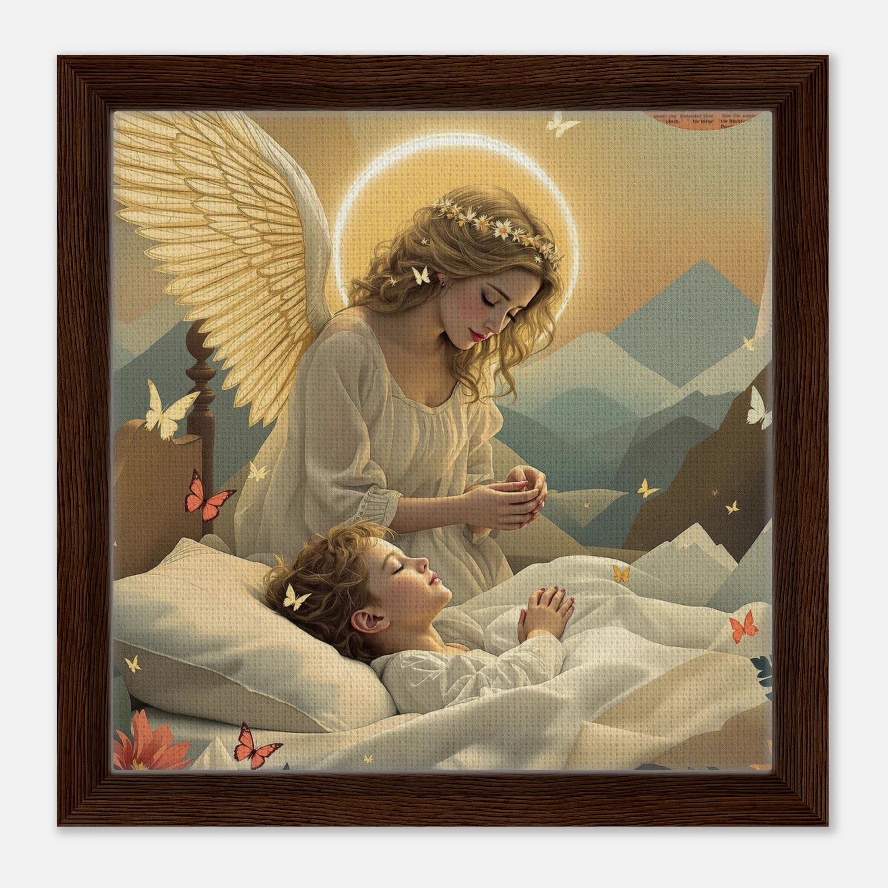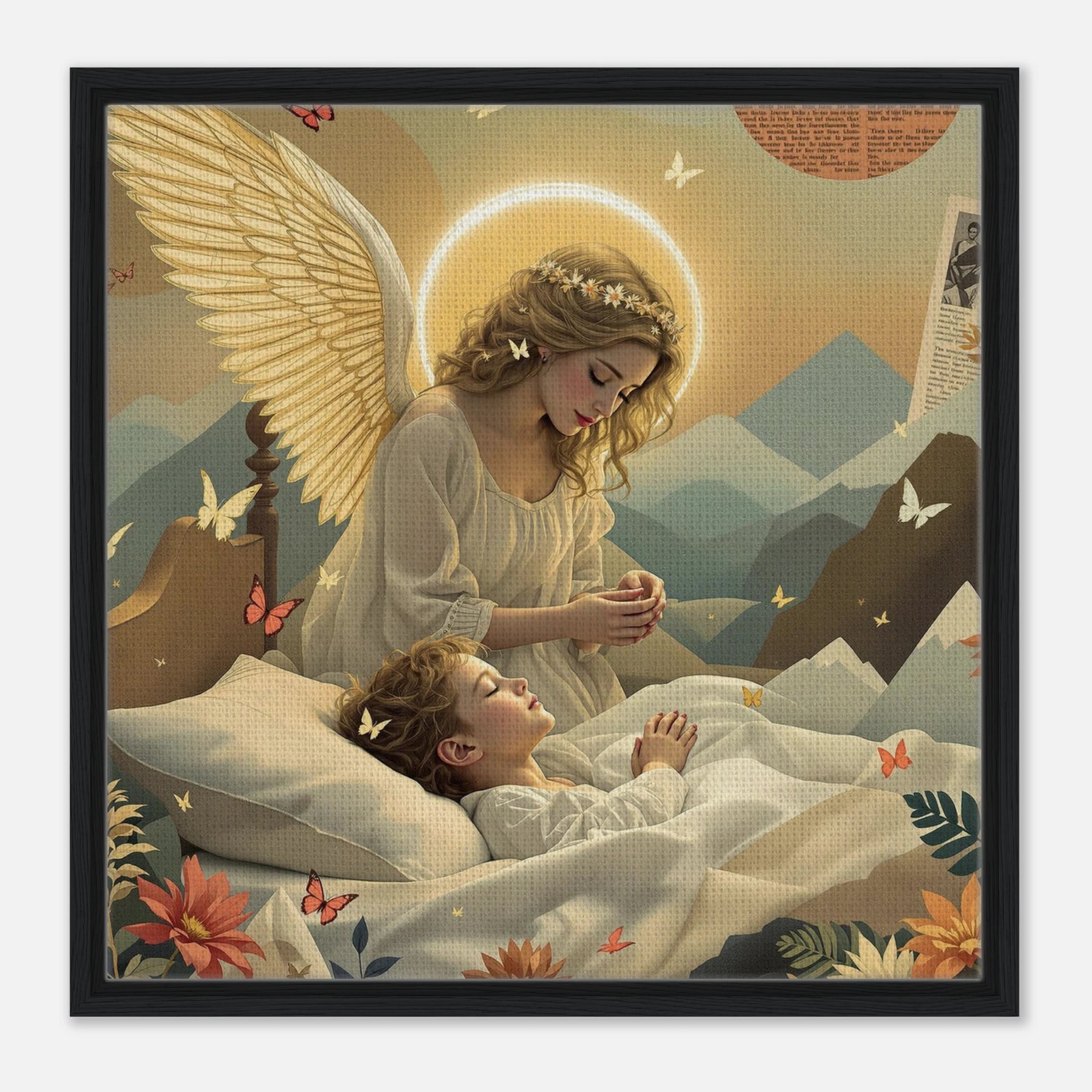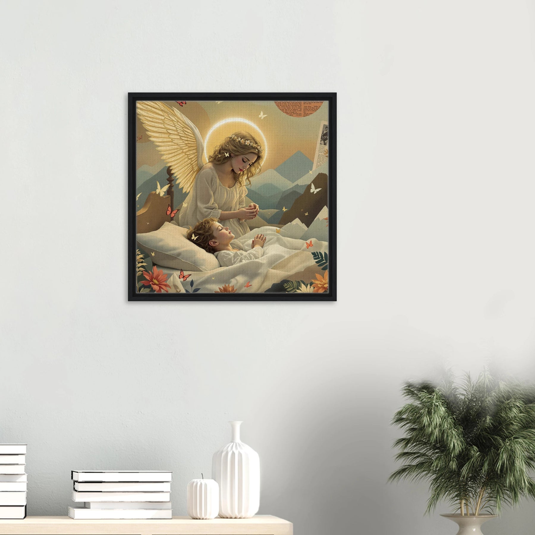 Diese gerahmte Leinwand zeigt einen Guardian Angel – lichtvoll, beschützend und voller Anmut. Die strukturierte Oberfläche bringt Wärme und Tiefe ins Motiv, während der edle Rahmen dem Bild seine stille Eleganz verleiht.