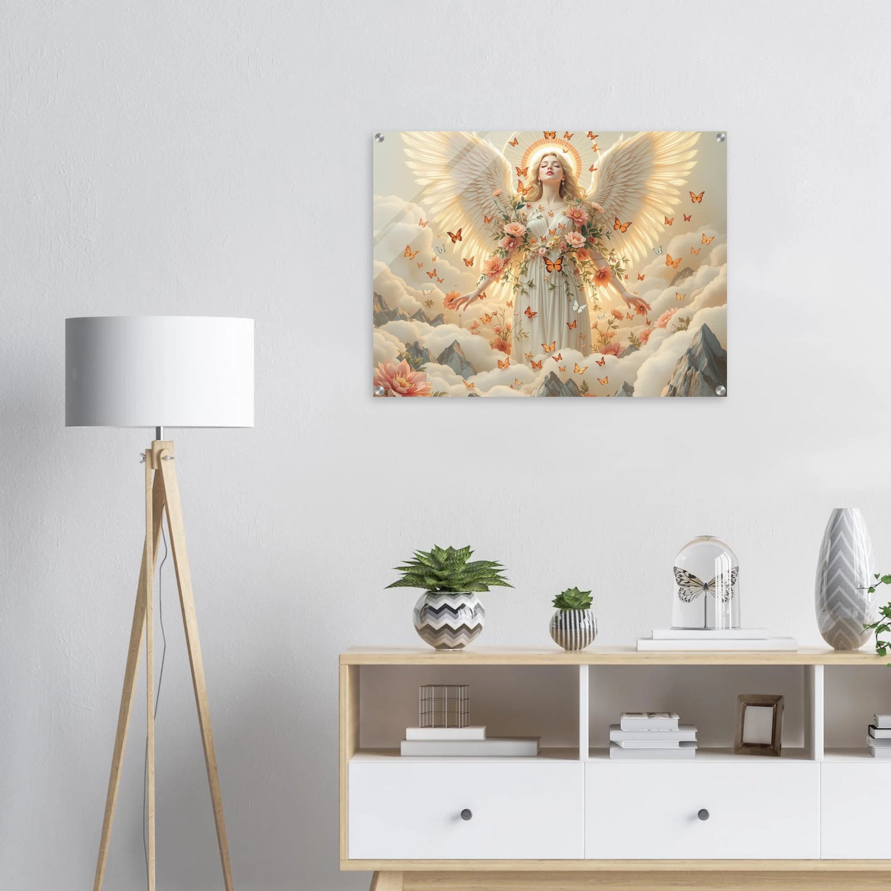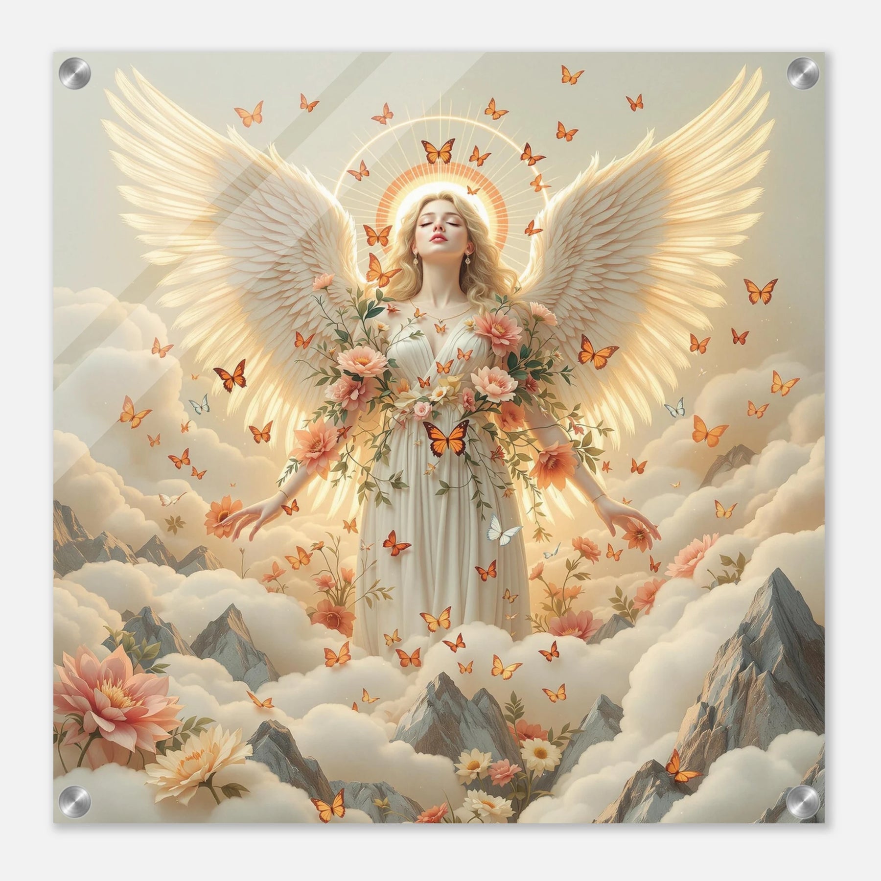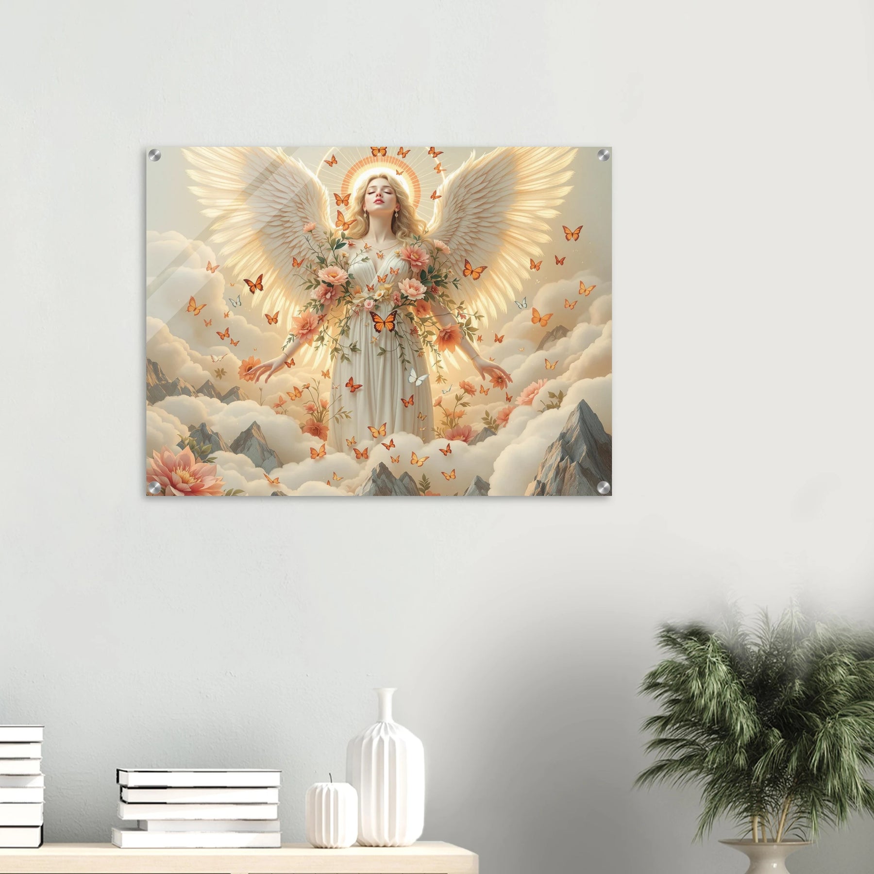 Acrylglasdruck – Himmlische Stärke auf glänzendem Grund