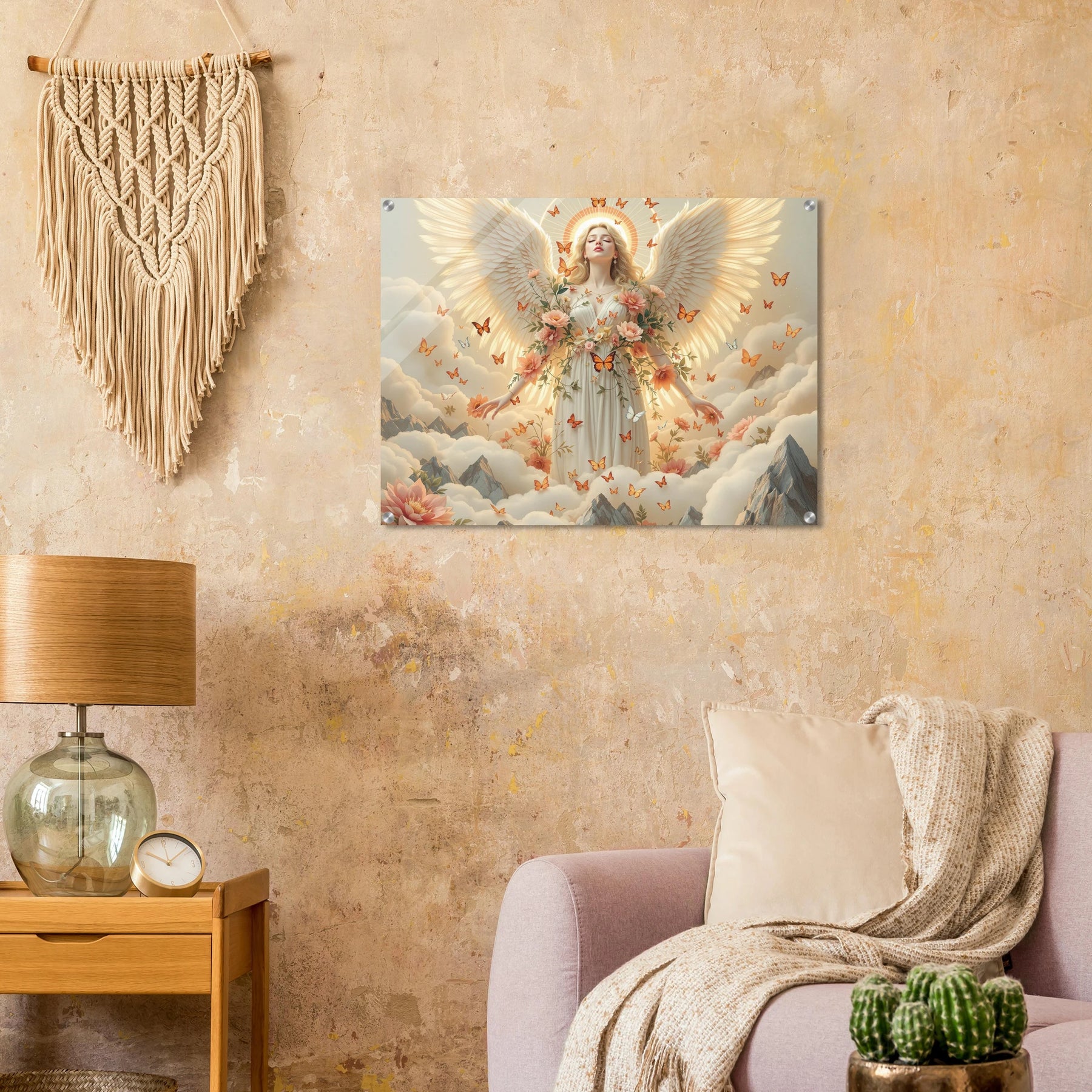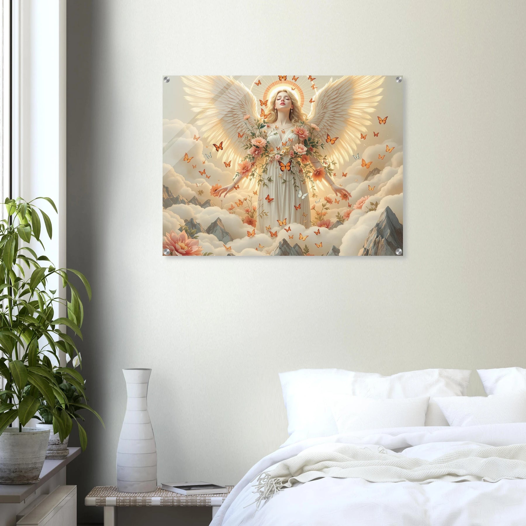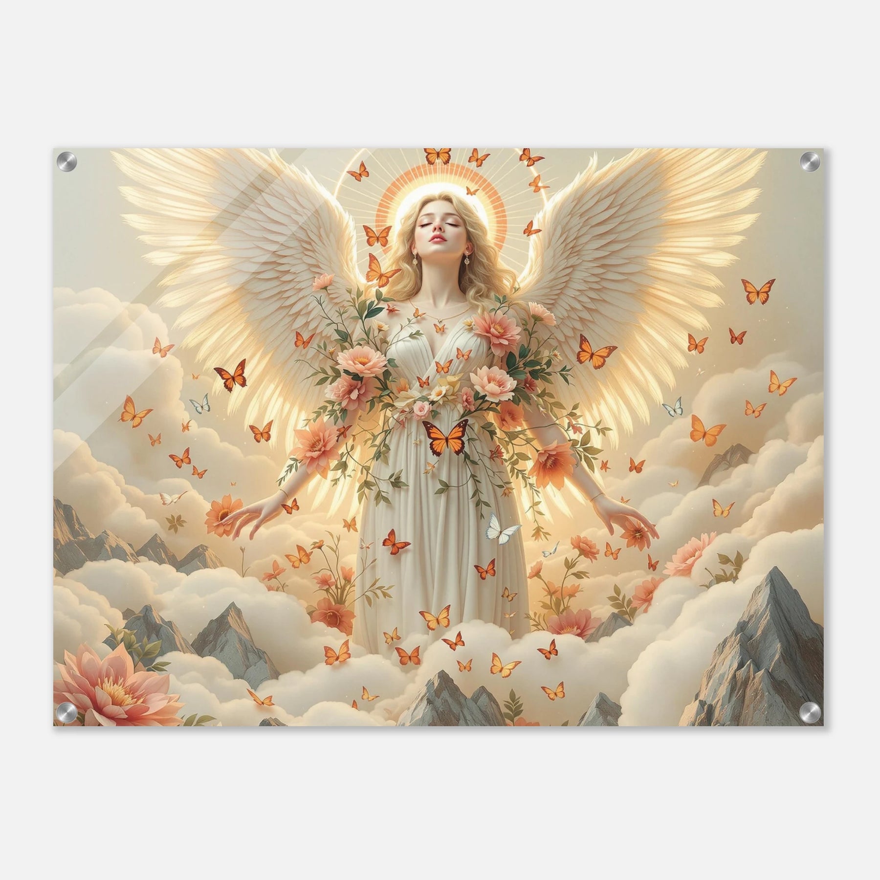 Acrylglasdruck – Himmlische Stärke auf glänzendem Grund