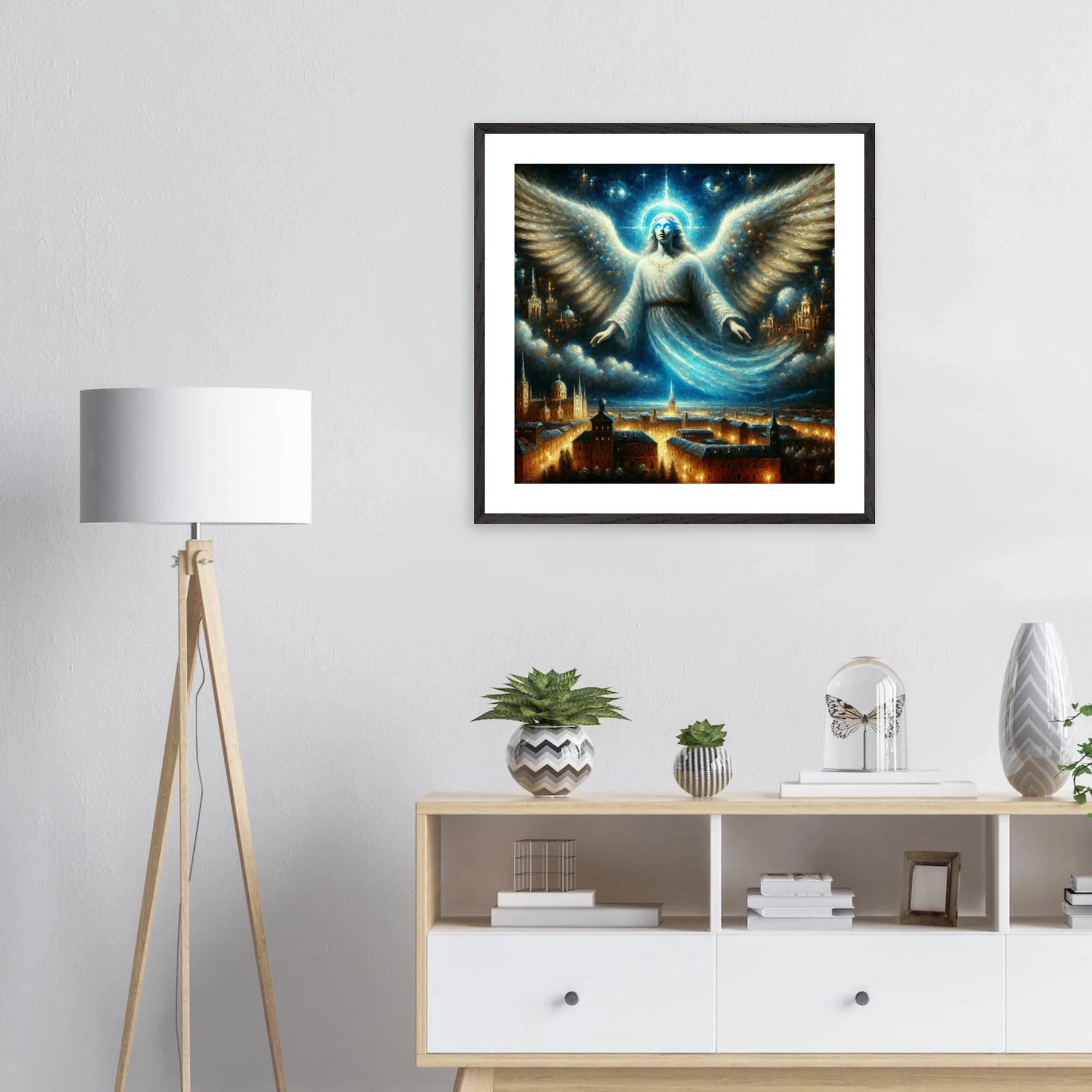 Dieses hochwertige Premium-Poster aus der Guardian Angel-Serie bringt Harmonie, Schutz und Licht in deinen Raum. Der elegante Holzrahmen unterstreicht das Motiv, während das matte Kunstpapier für ein ruhiges, hochwertiges Druckbild sorgt.
