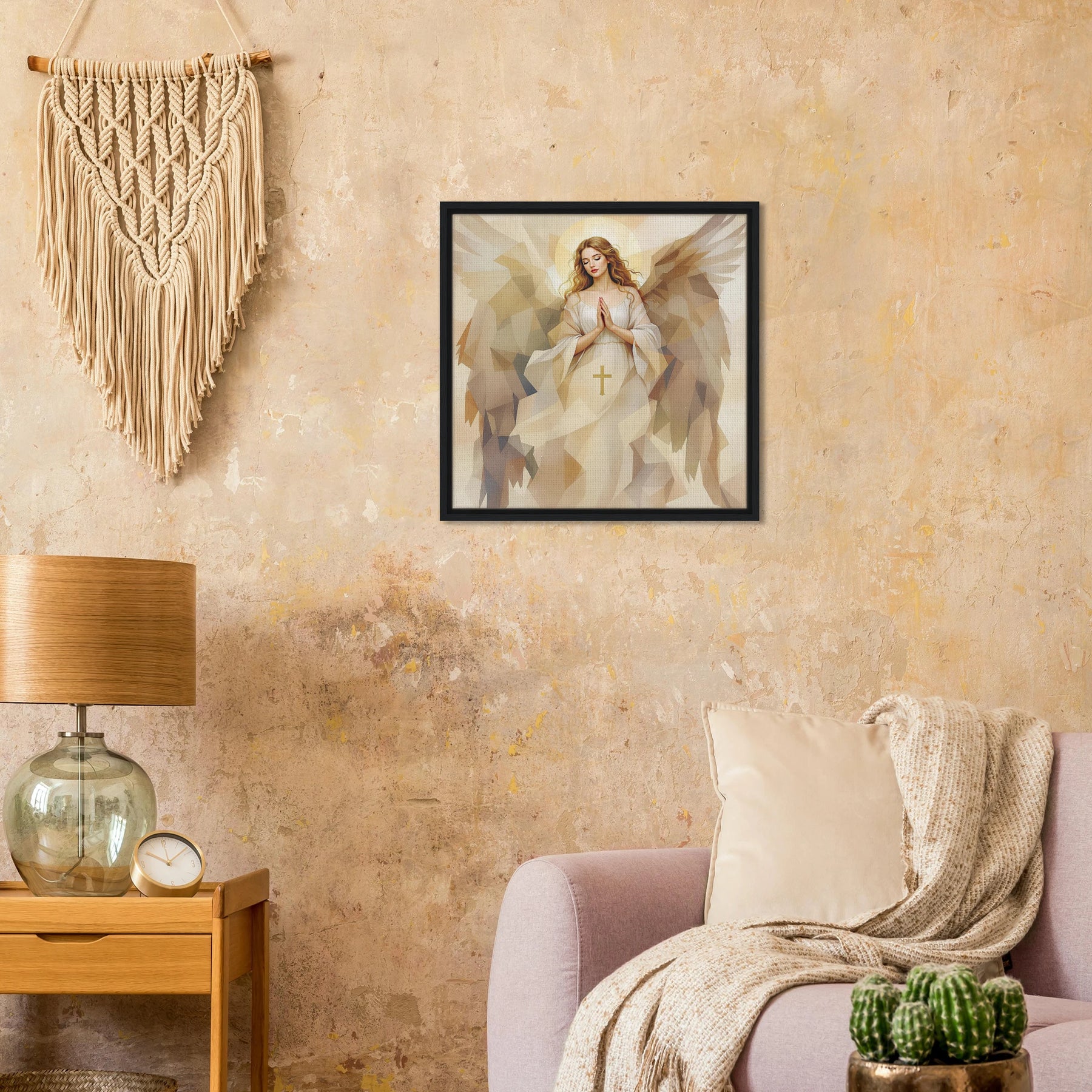 Diese gerahmte Leinwand zeigt einen Guardian Angel – lichtvoll, beschützend und voller Anmut. Die strukturierte Oberfläche bringt Wärme und Tiefe ins Motiv, während der edle Rahmen dem Bild seine stille Eleganz verleiht.
