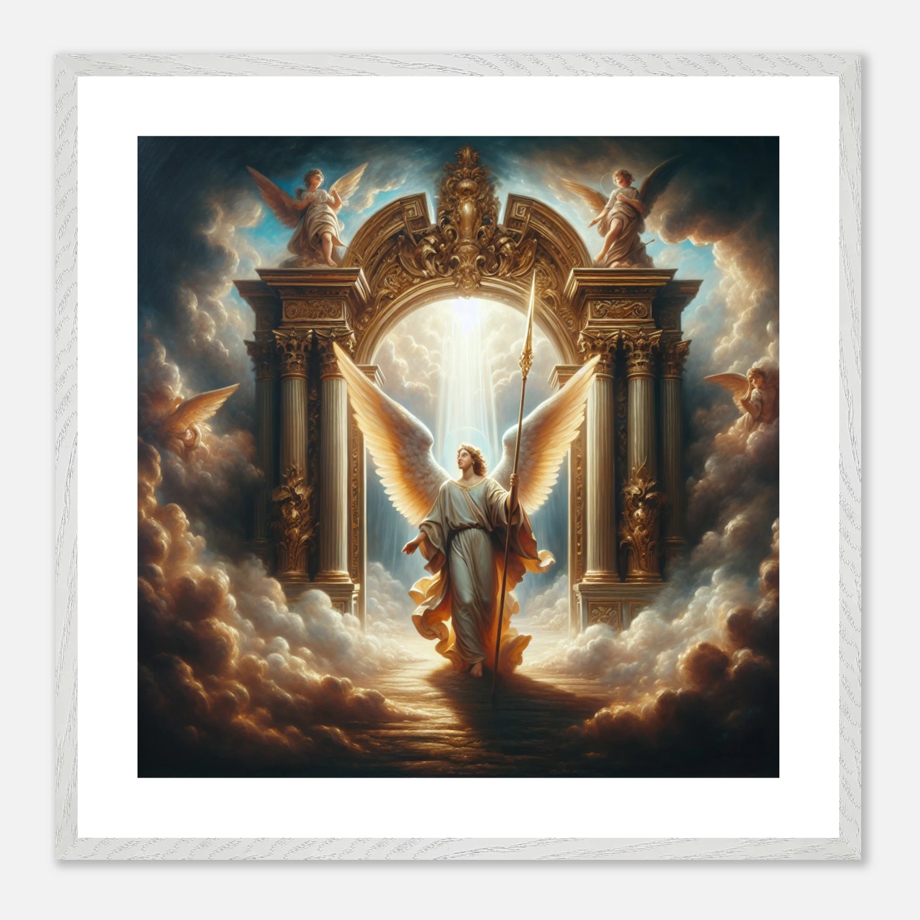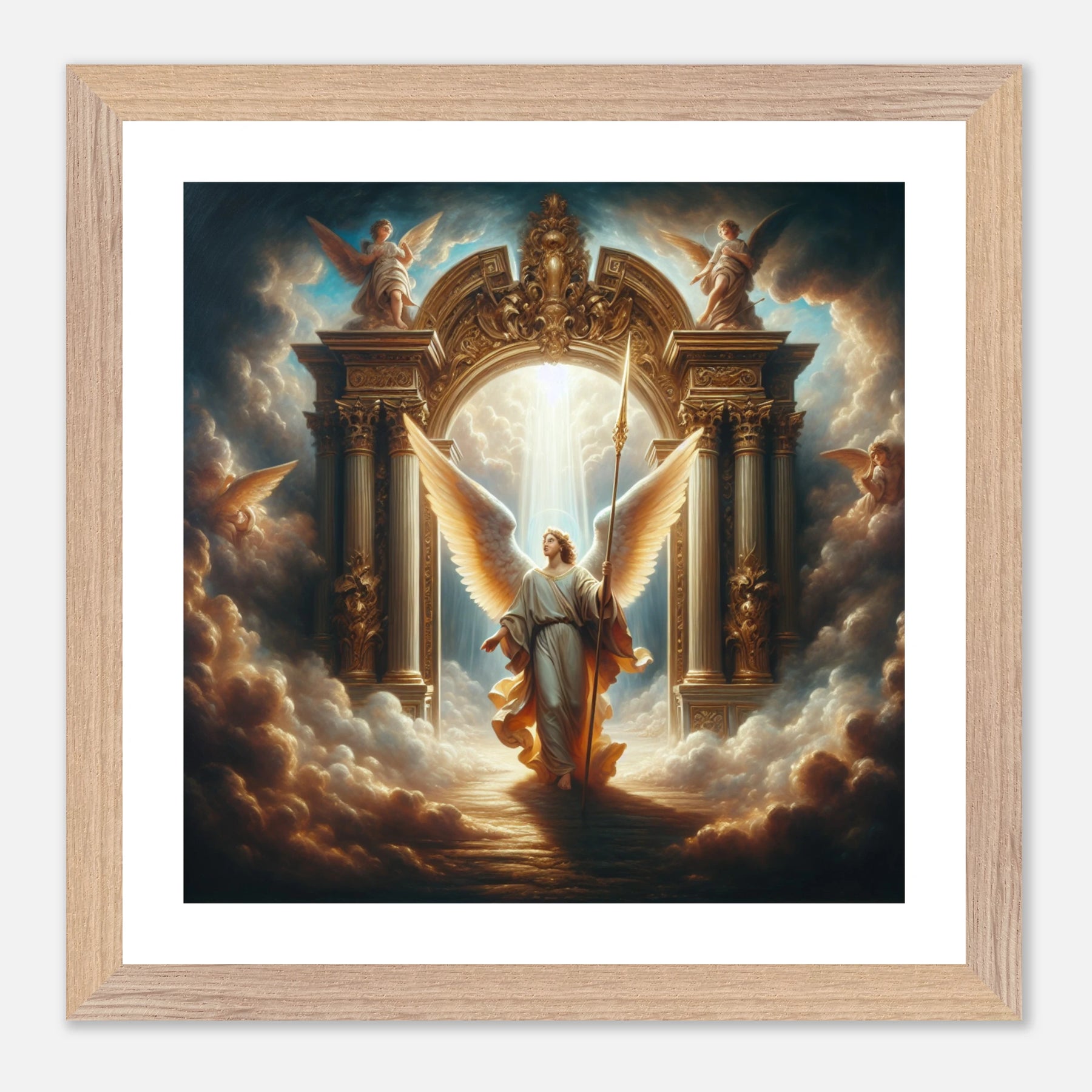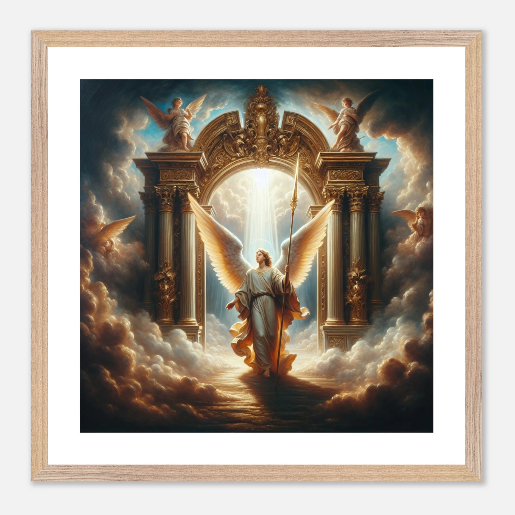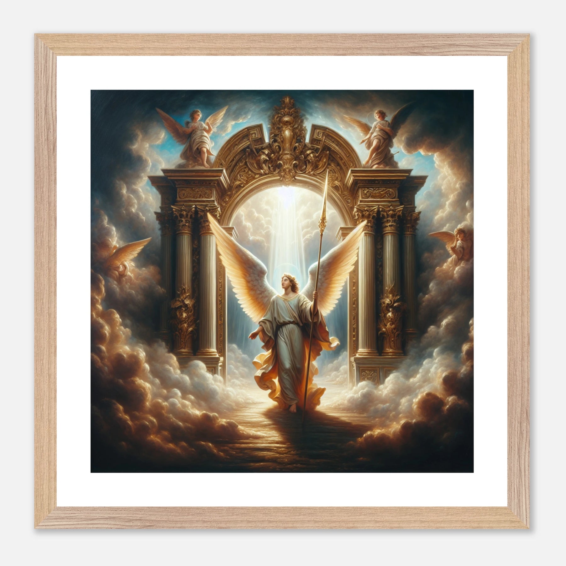 Erleuchteter Engel vor himmlischem Tor – spirituelles Poster mit barockem Himmelsmotiv