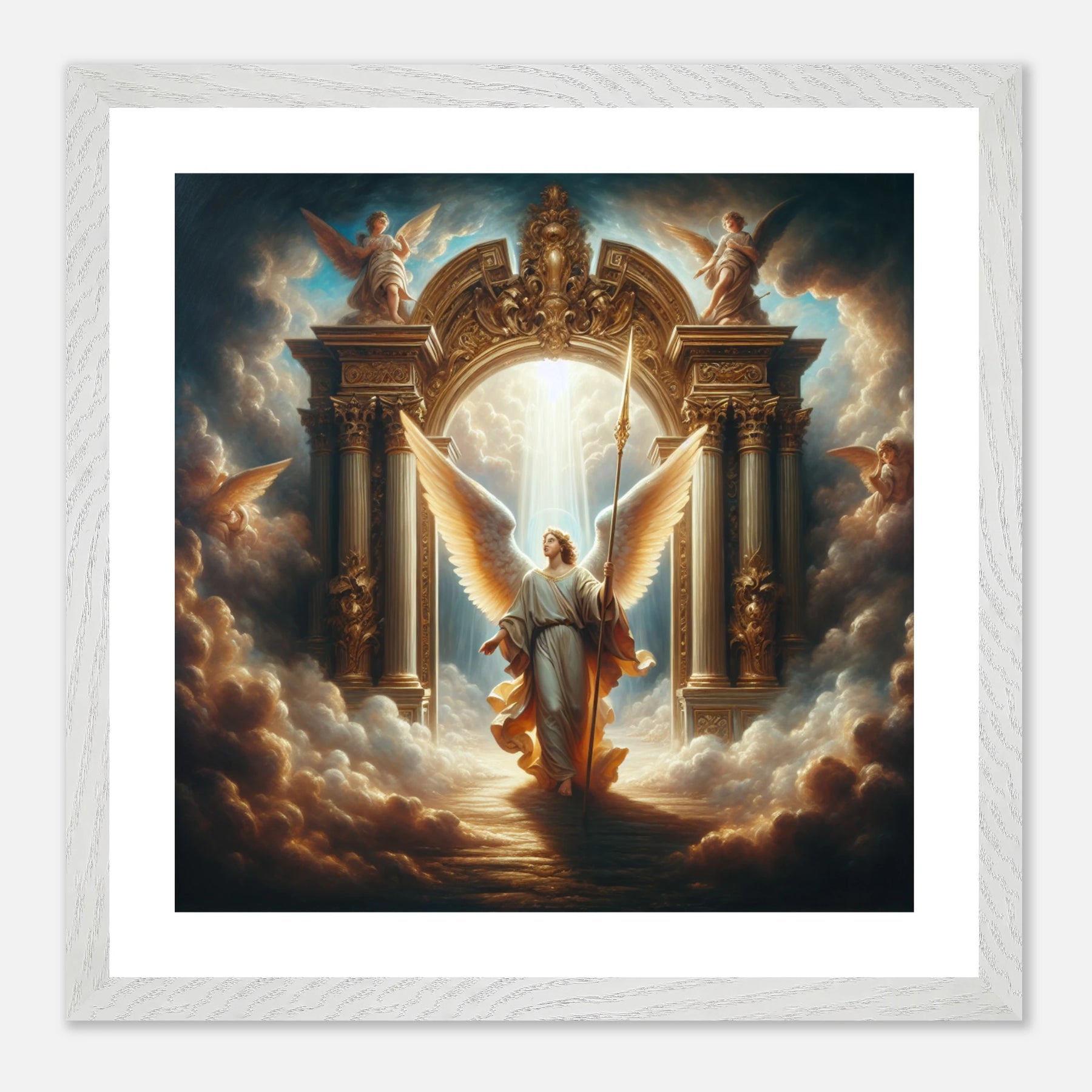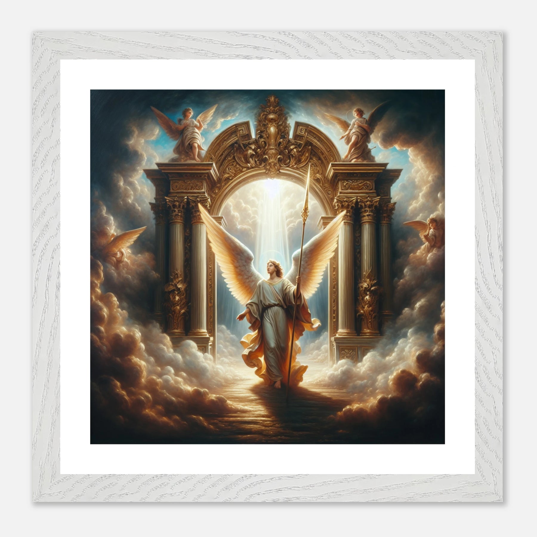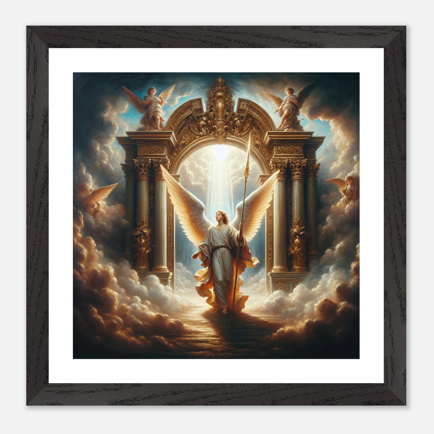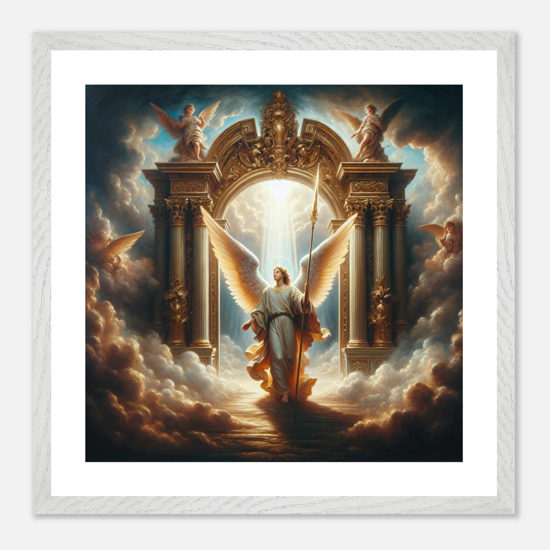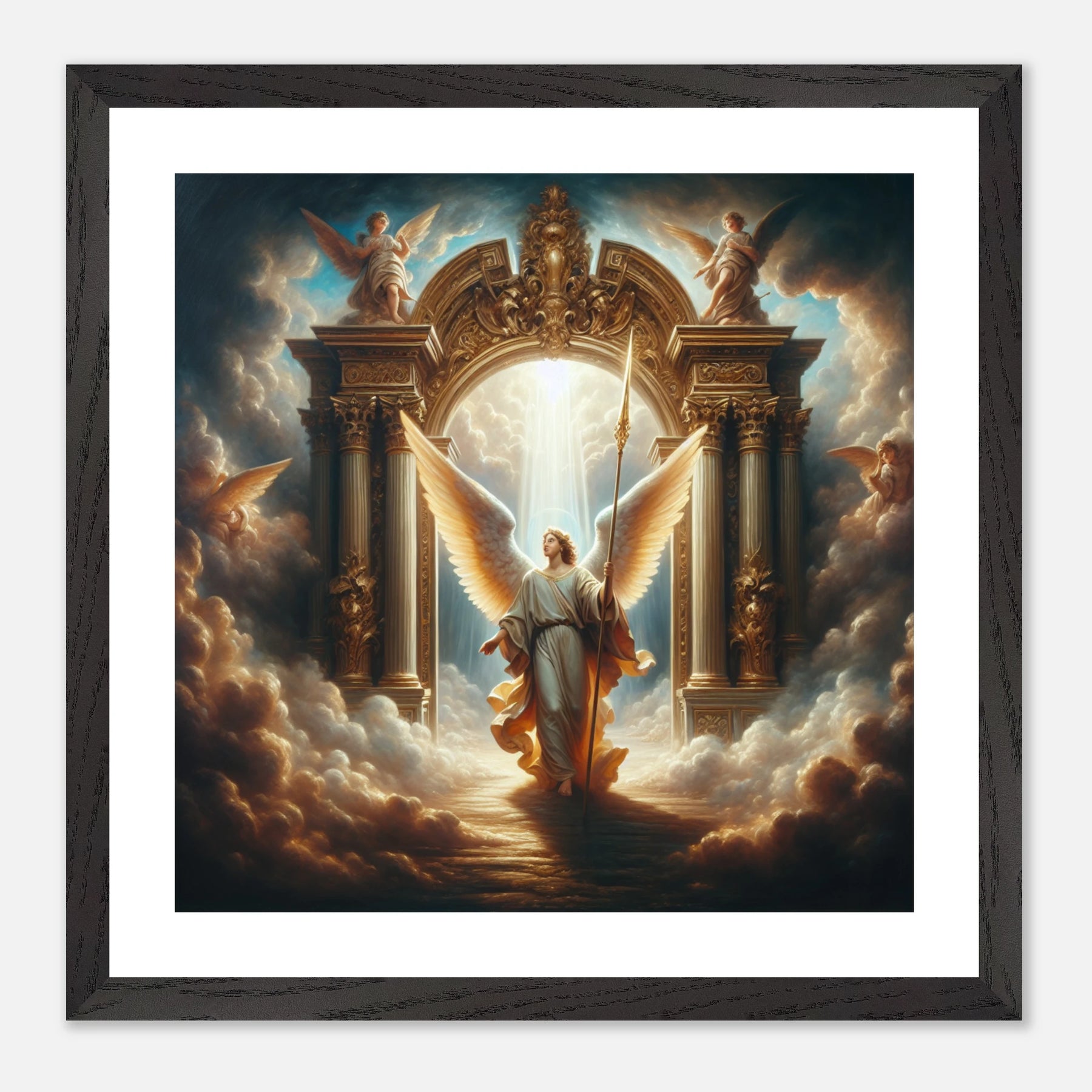 Erleuchteter Engel vor himmlischem Tor – spirituelles Poster mit barockem Himmelsmotiv