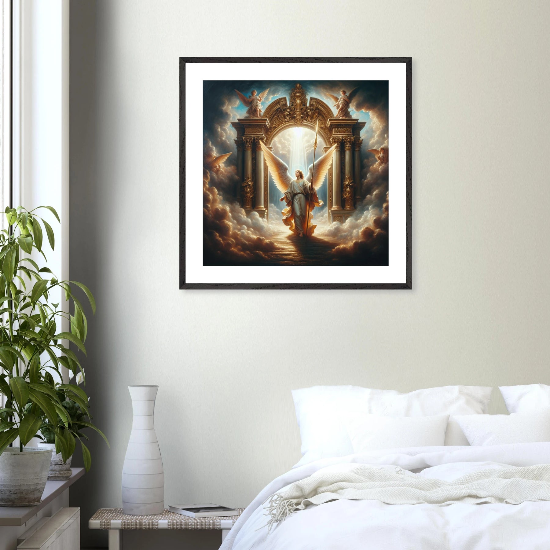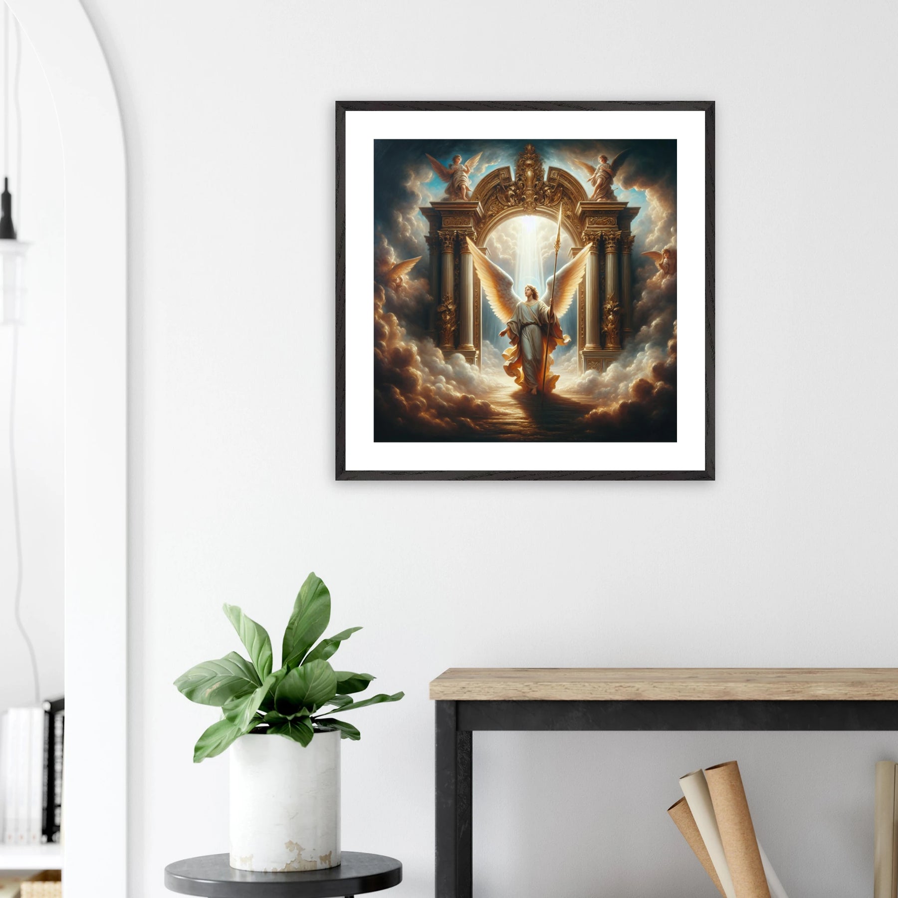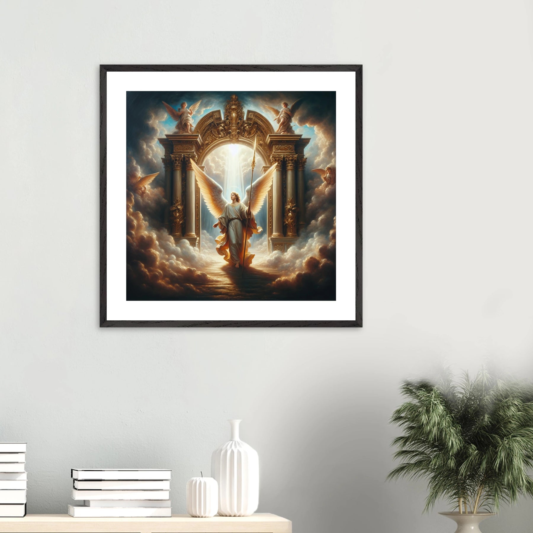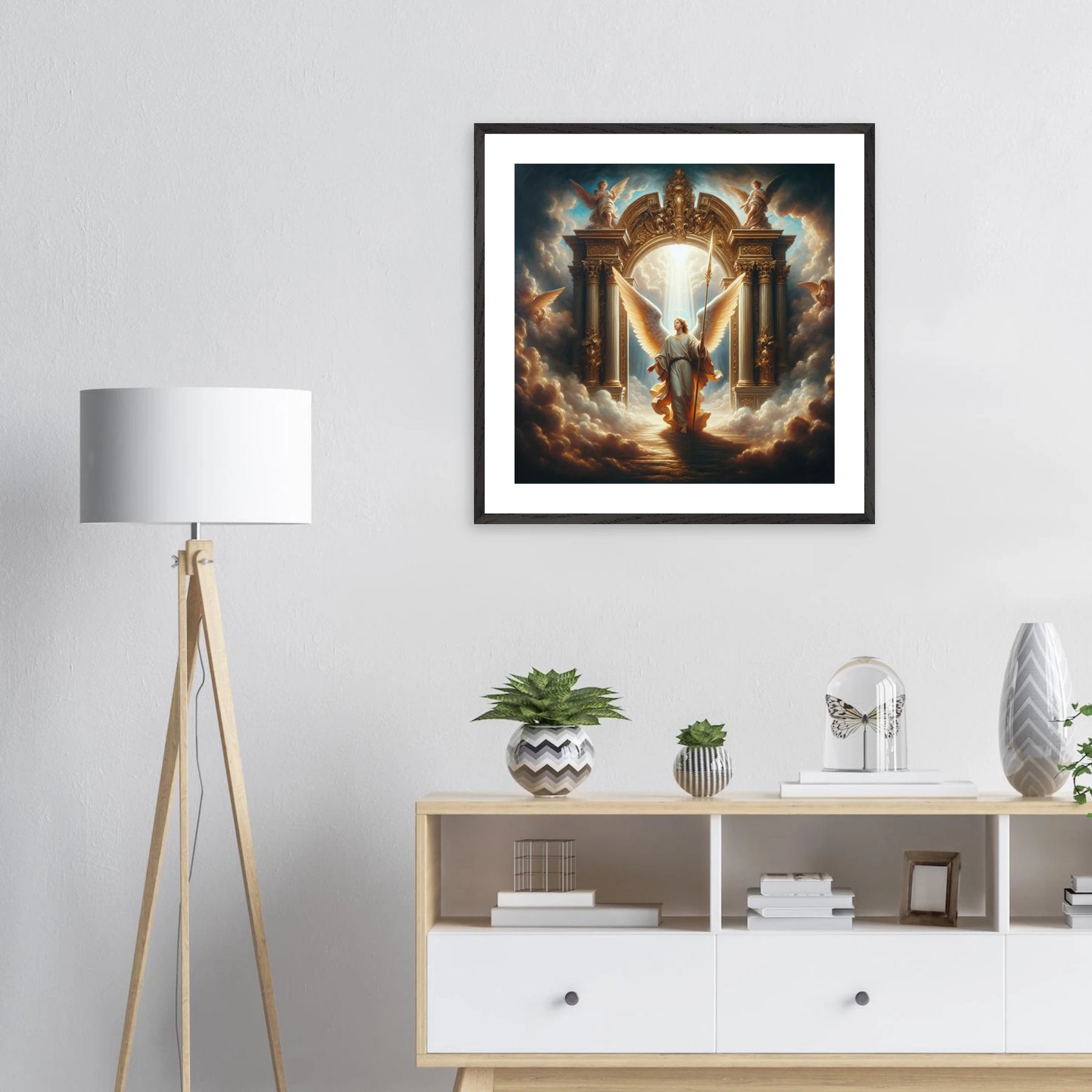 Erleuchteter Engel vor himmlischem Tor – spirituelles Poster mit barockem Himmelsmotiv