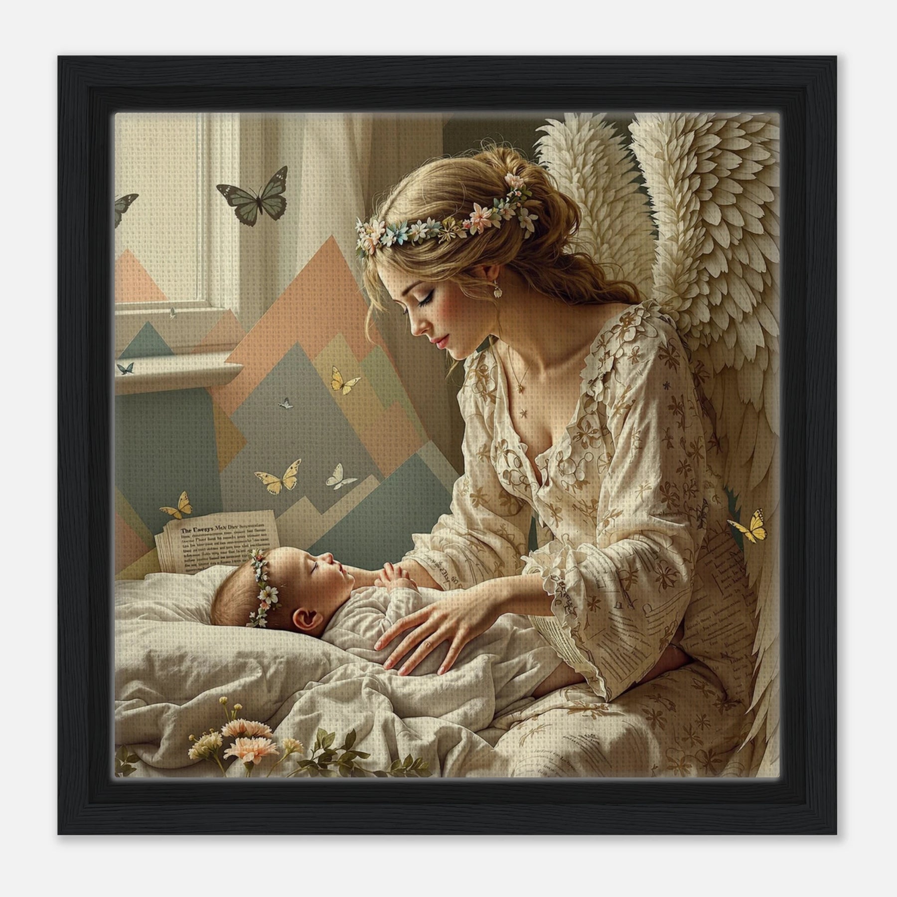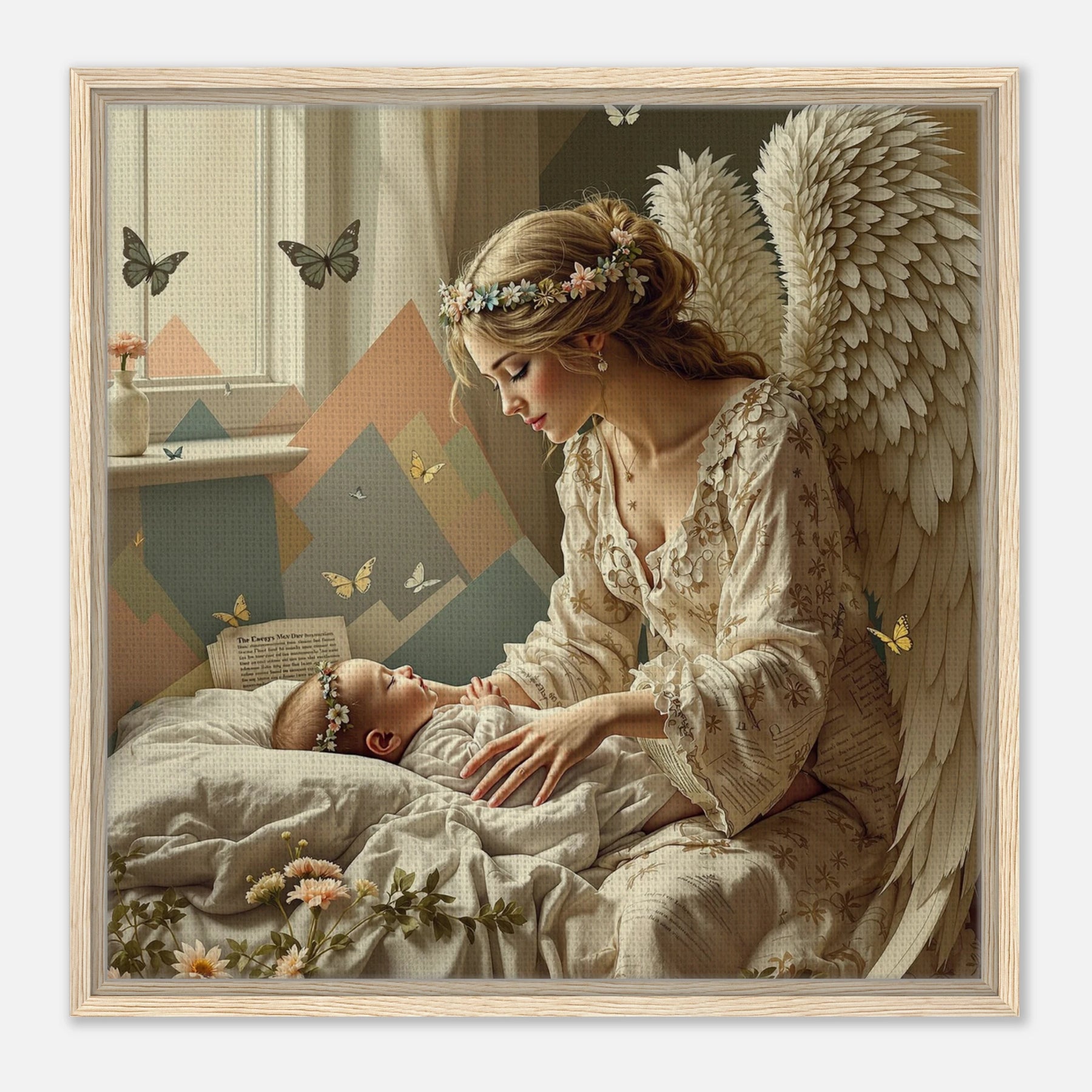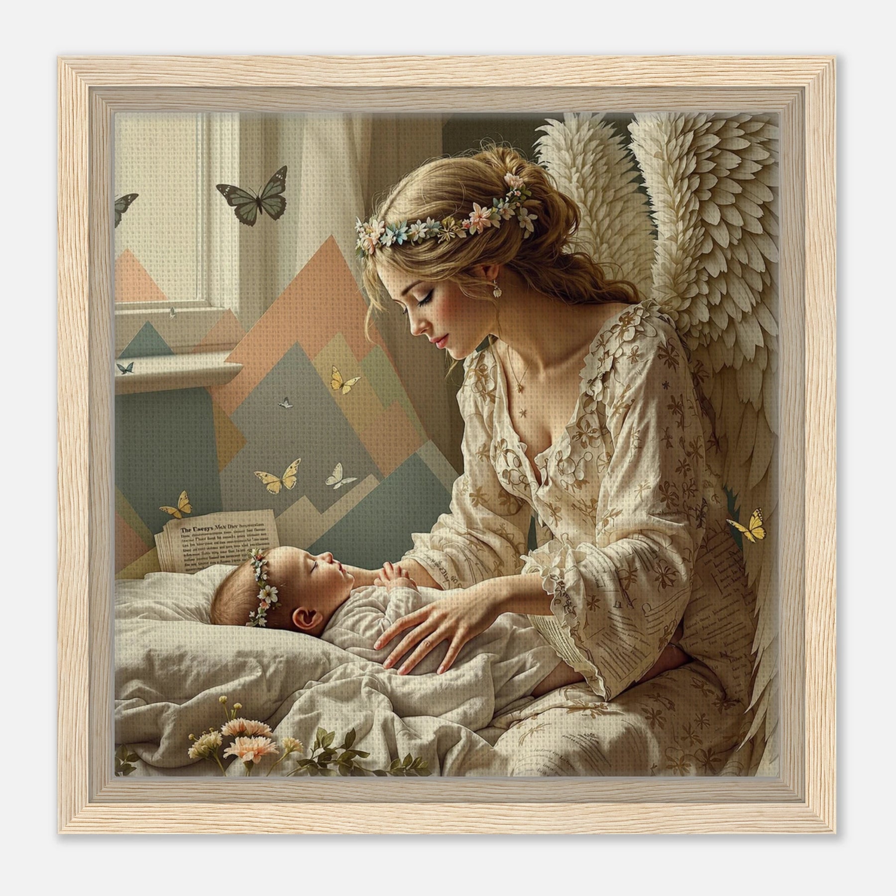 Diese gerahmte Leinwand zeigt einen Guardian Angel – lichtvoll, beschützend und voller Anmut. Die strukturierte Oberfläche bringt Wärme und Tiefe ins Motiv, während der edle Rahmen dem Bild seine stille Eleganz verleiht.