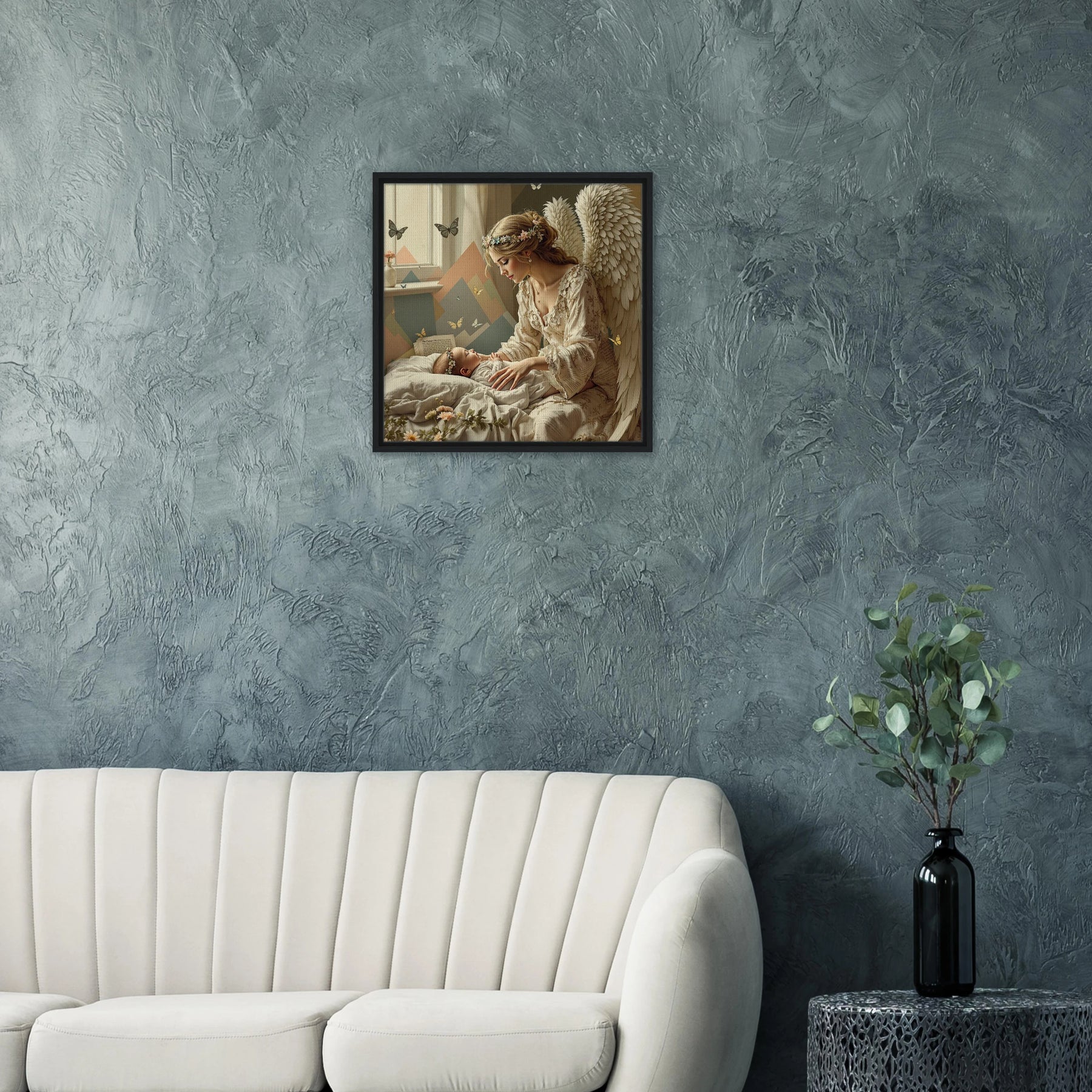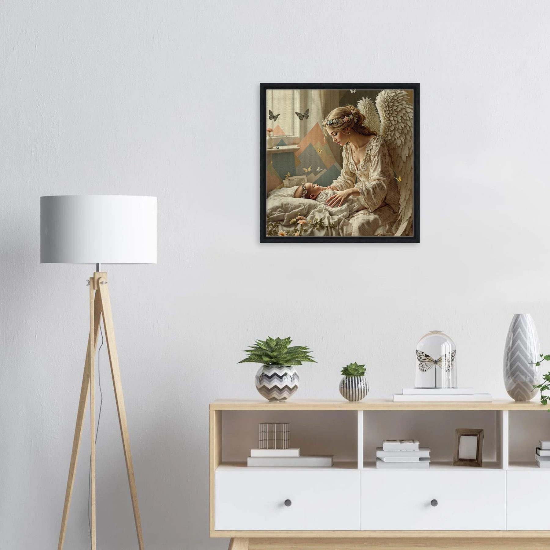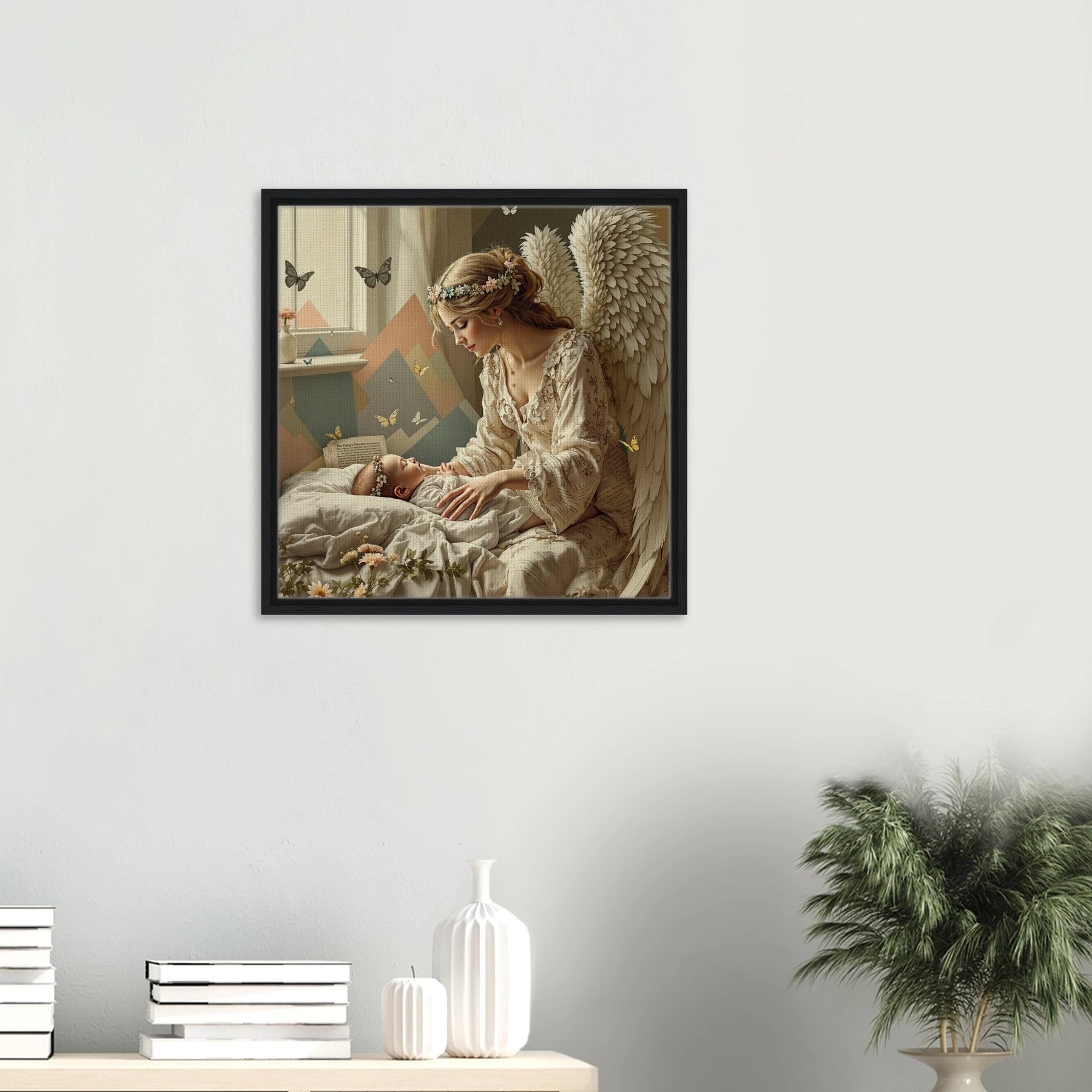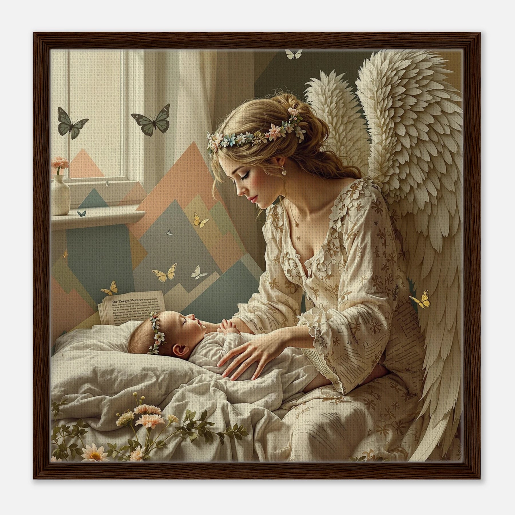 Diese gerahmte Leinwand zeigt einen Guardian Angel – lichtvoll, beschützend und voller Anmut. Die strukturierte Oberfläche bringt Wärme und Tiefe ins Motiv, während der edle Rahmen dem Bild seine stille Eleganz verleiht.