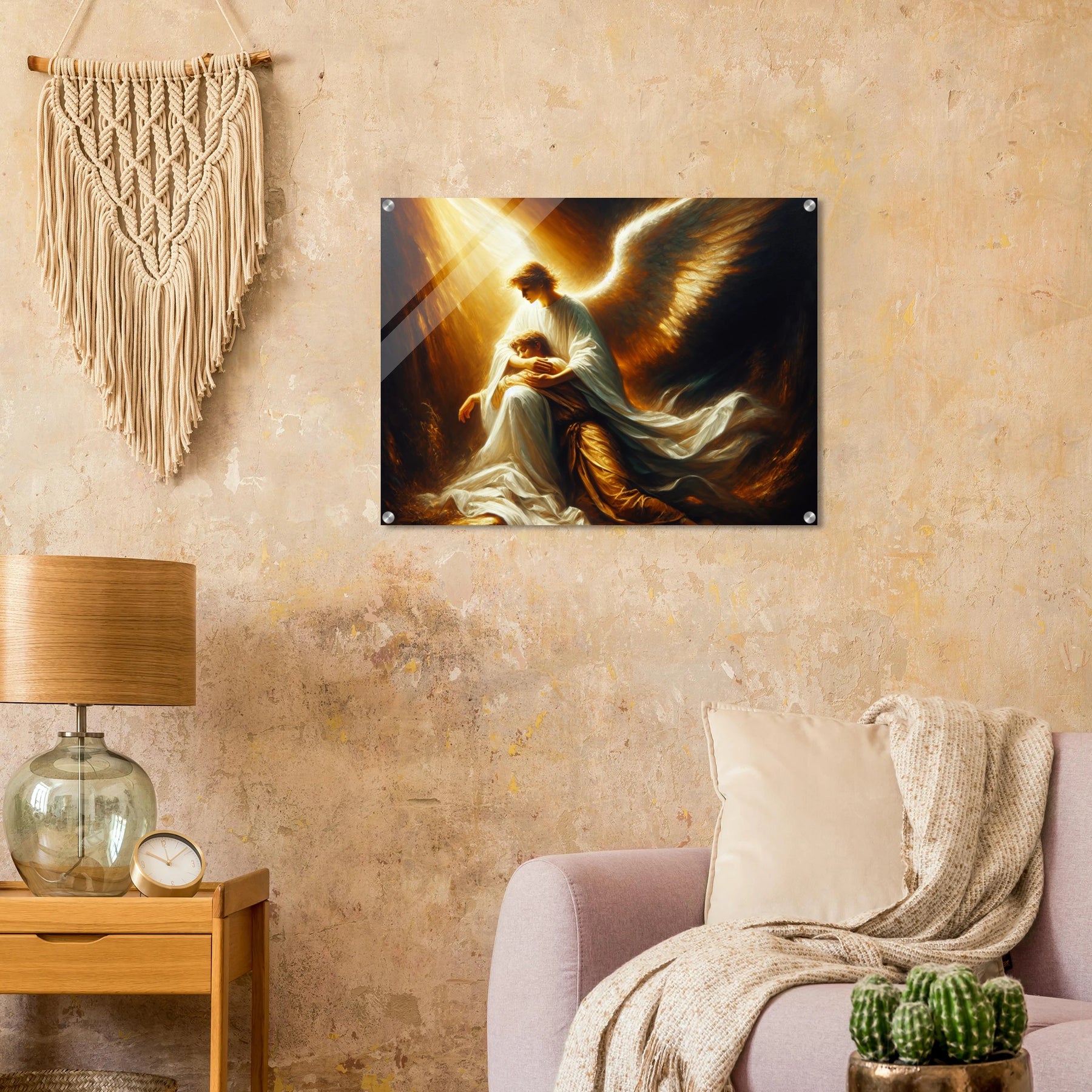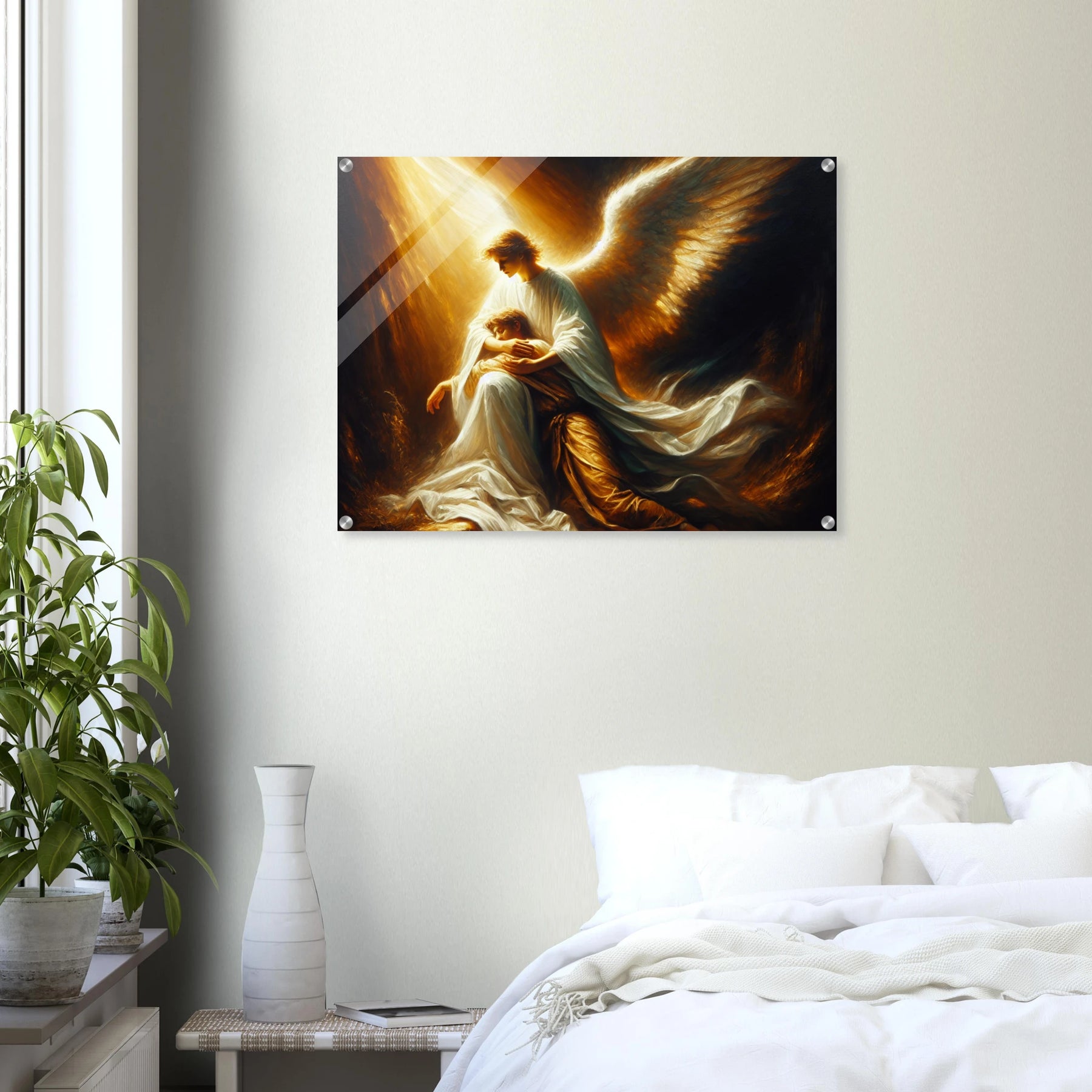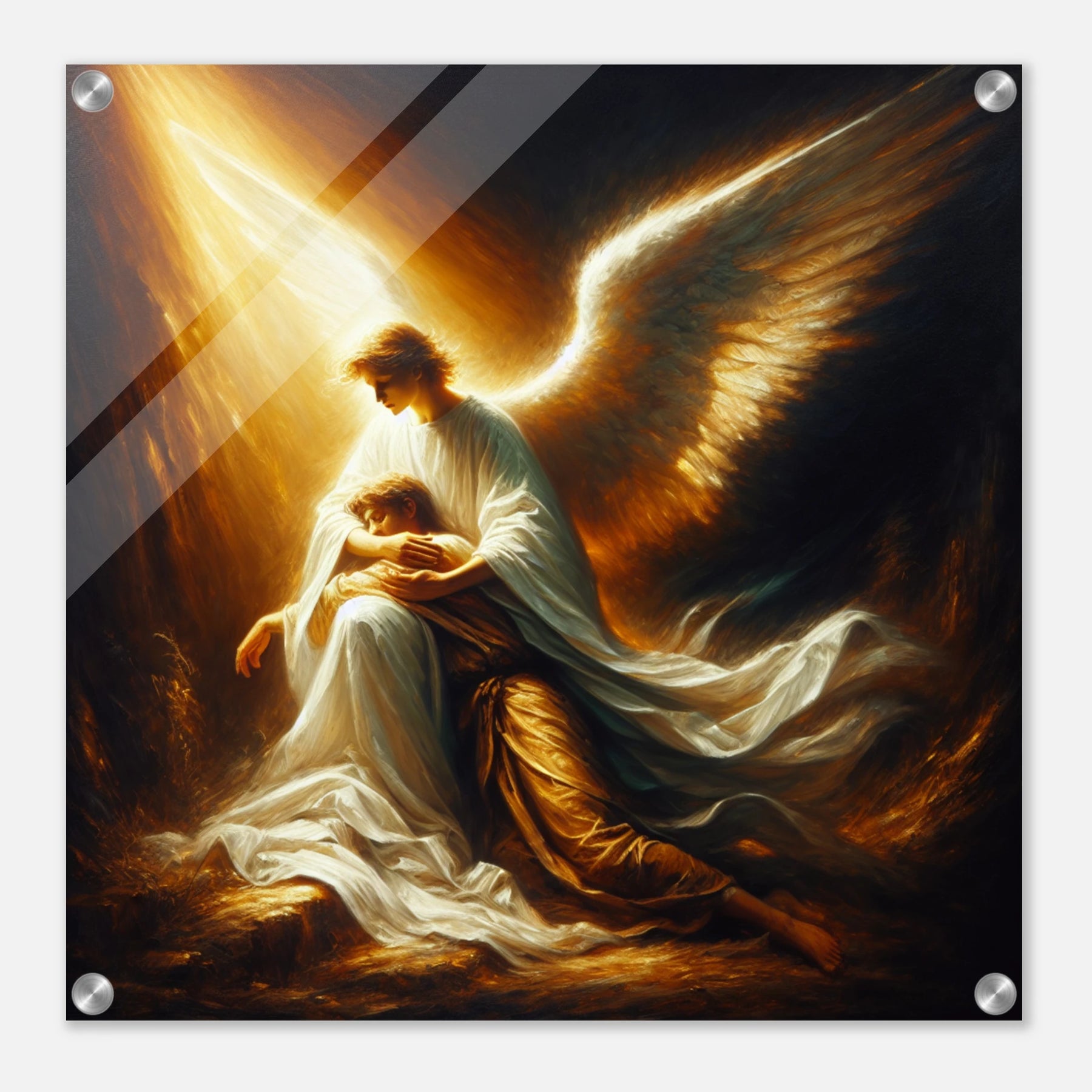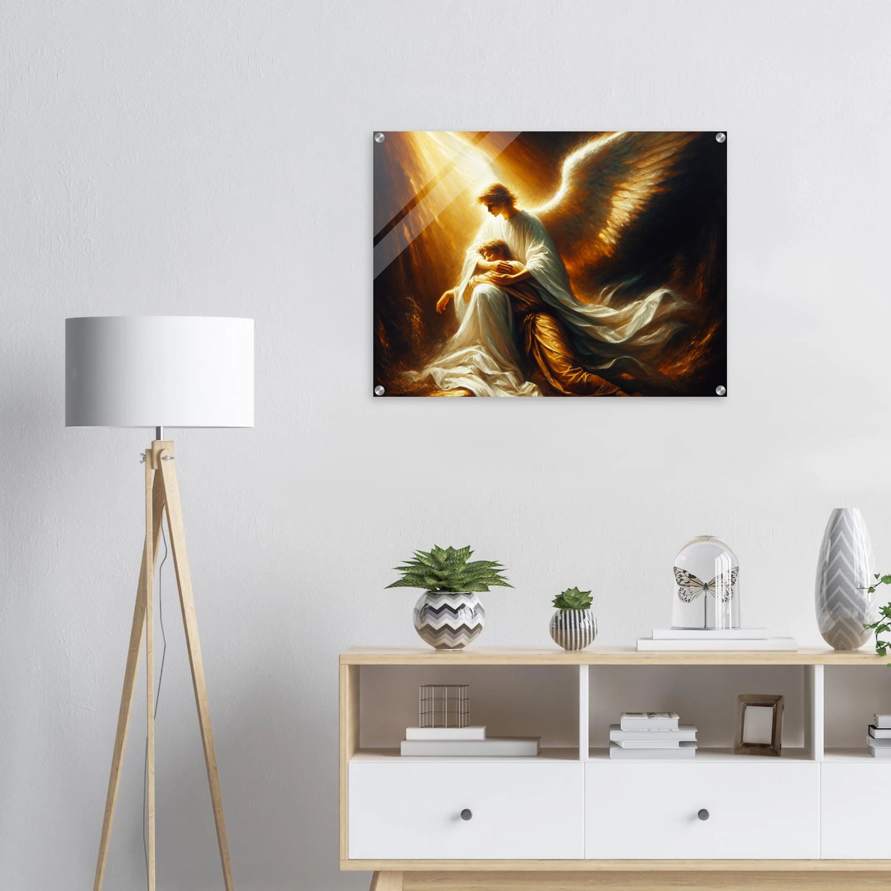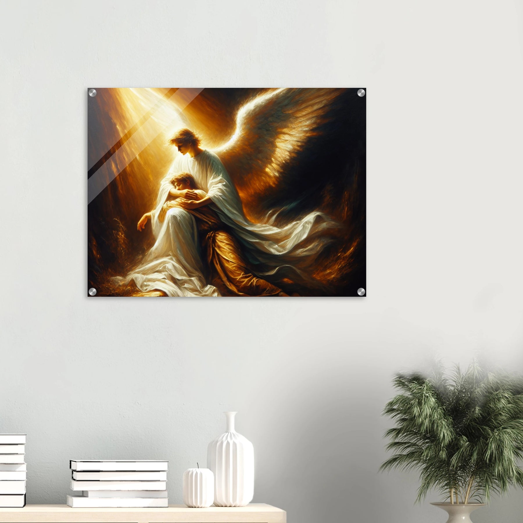 Acrylglasdruck – Himmlische Stärke auf glänzendem Grund
