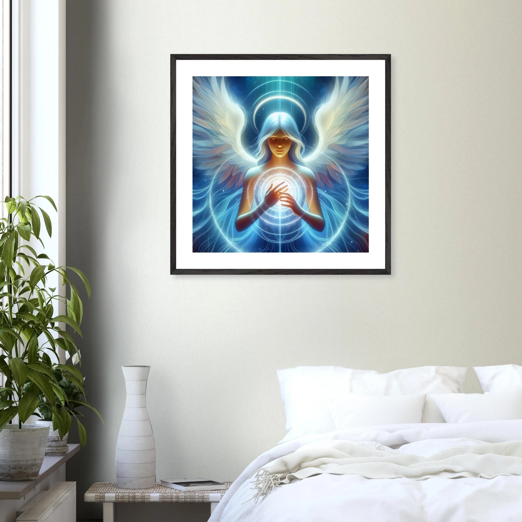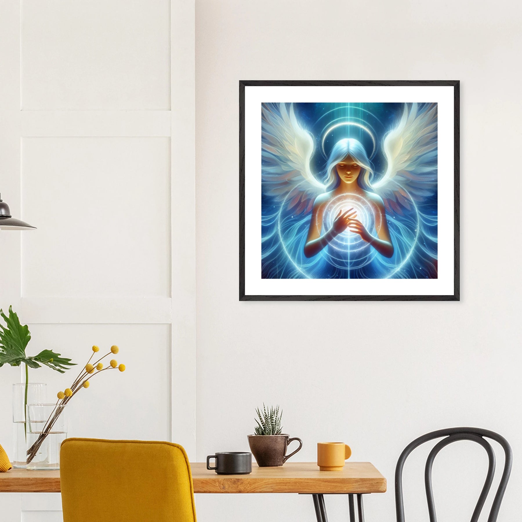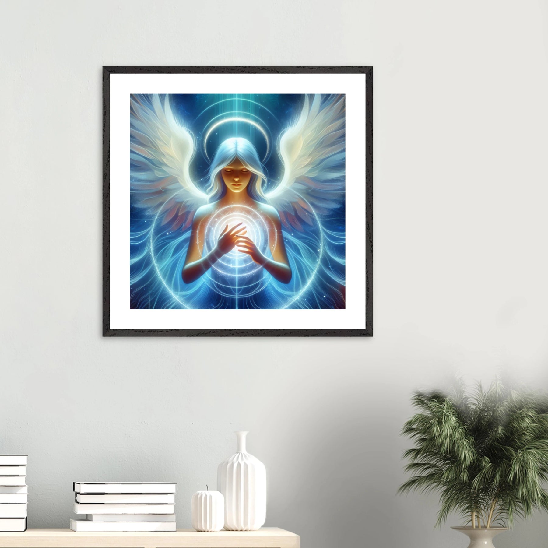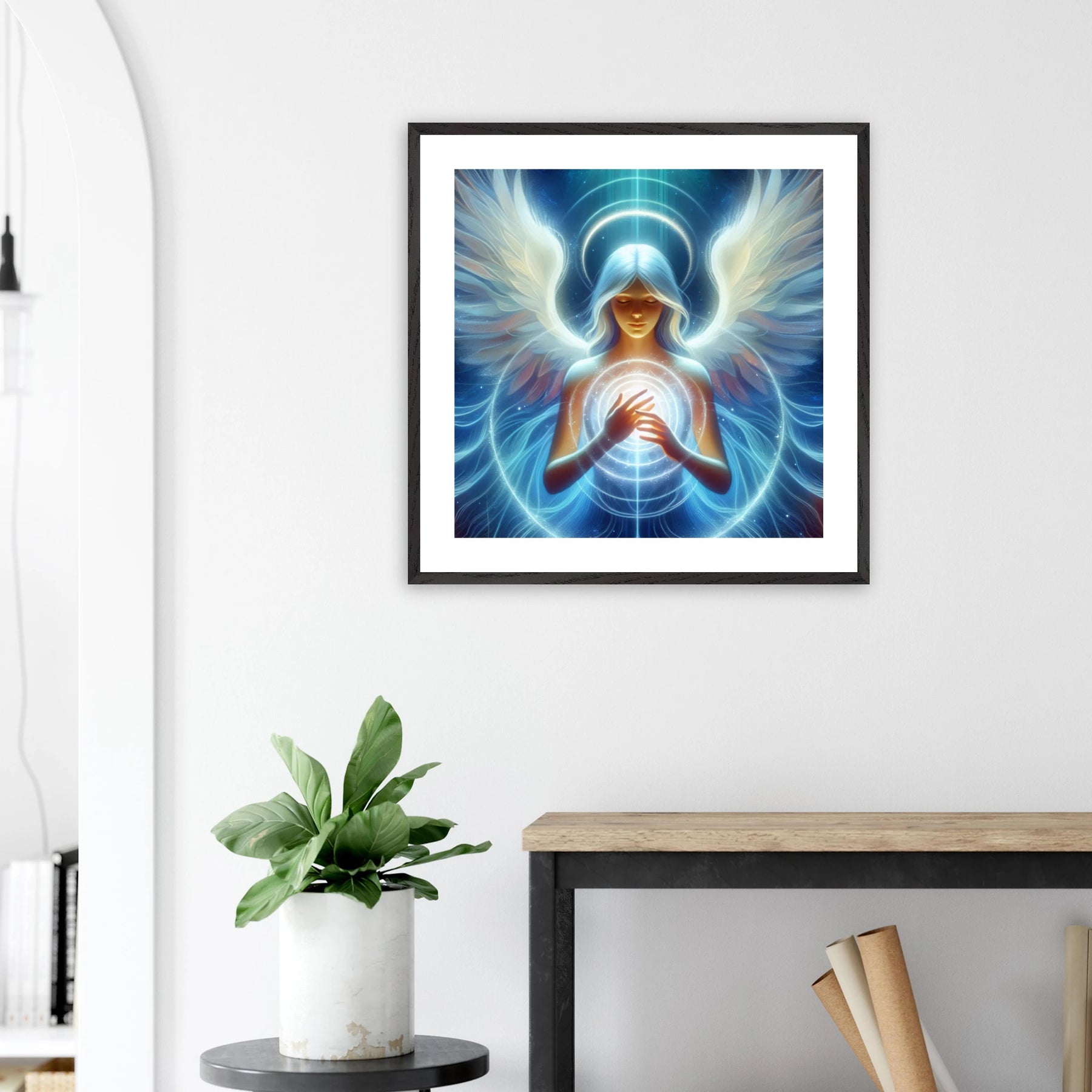 Dieses hochwertige Premium-Poster aus der Guardian Angel-Serie bringt Harmonie, Schutz und Licht in deinen Raum. Der elegante Holzrahmen unterstreicht das Motiv, während das matte Kunstpapier für ein ruhiges, hochwertiges Druckbild sorgt.
