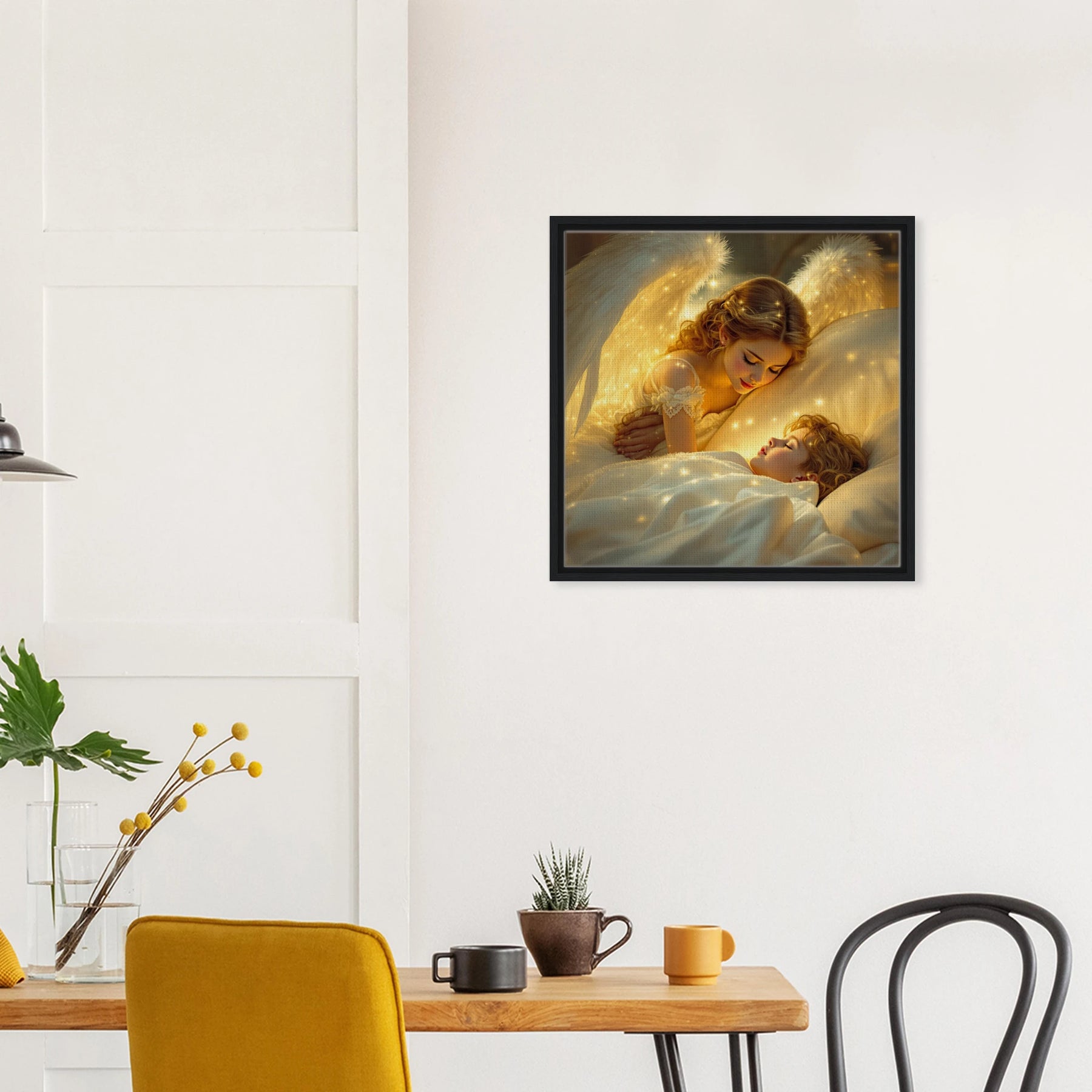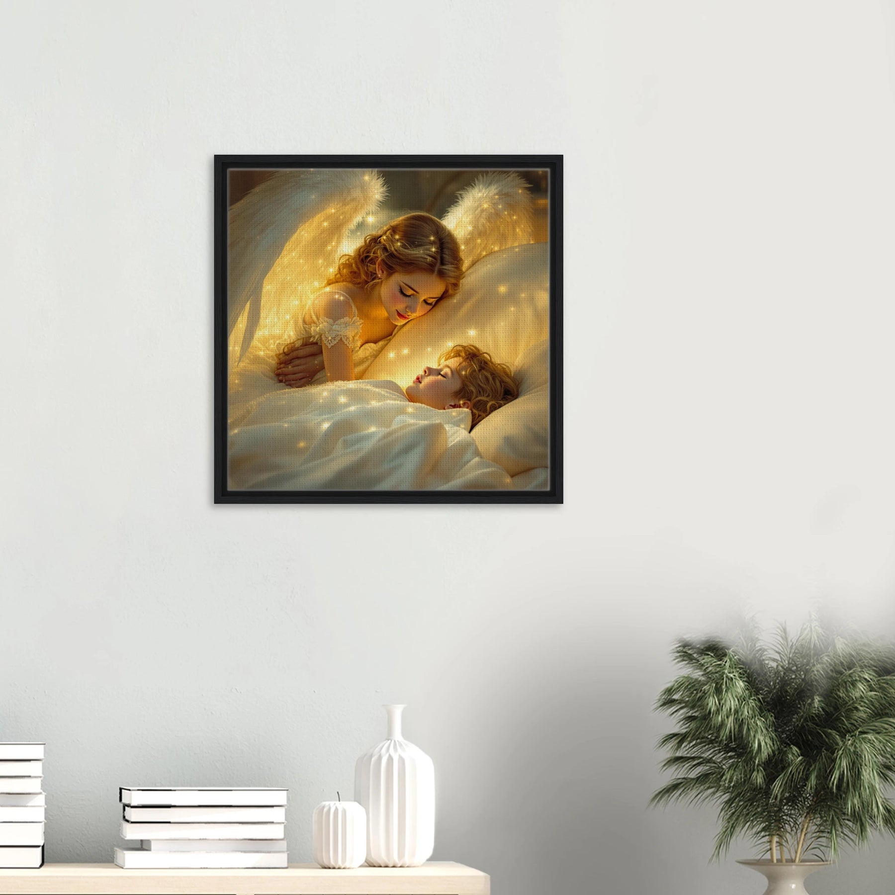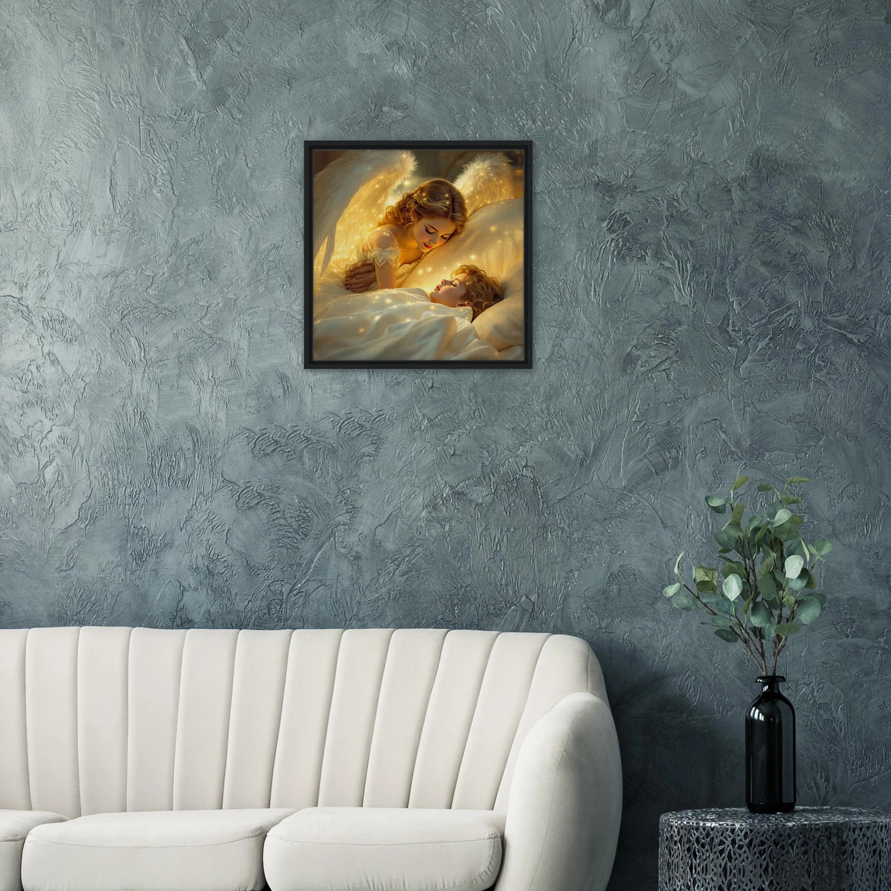 Diese gerahmte Leinwand zeigt einen Guardian Angel – lichtvoll, beschützend und voller Anmut. Die strukturierte Oberfläche bringt Wärme und Tiefe ins Motiv, während der edle Rahmen dem Bild seine stille Eleganz verleiht.