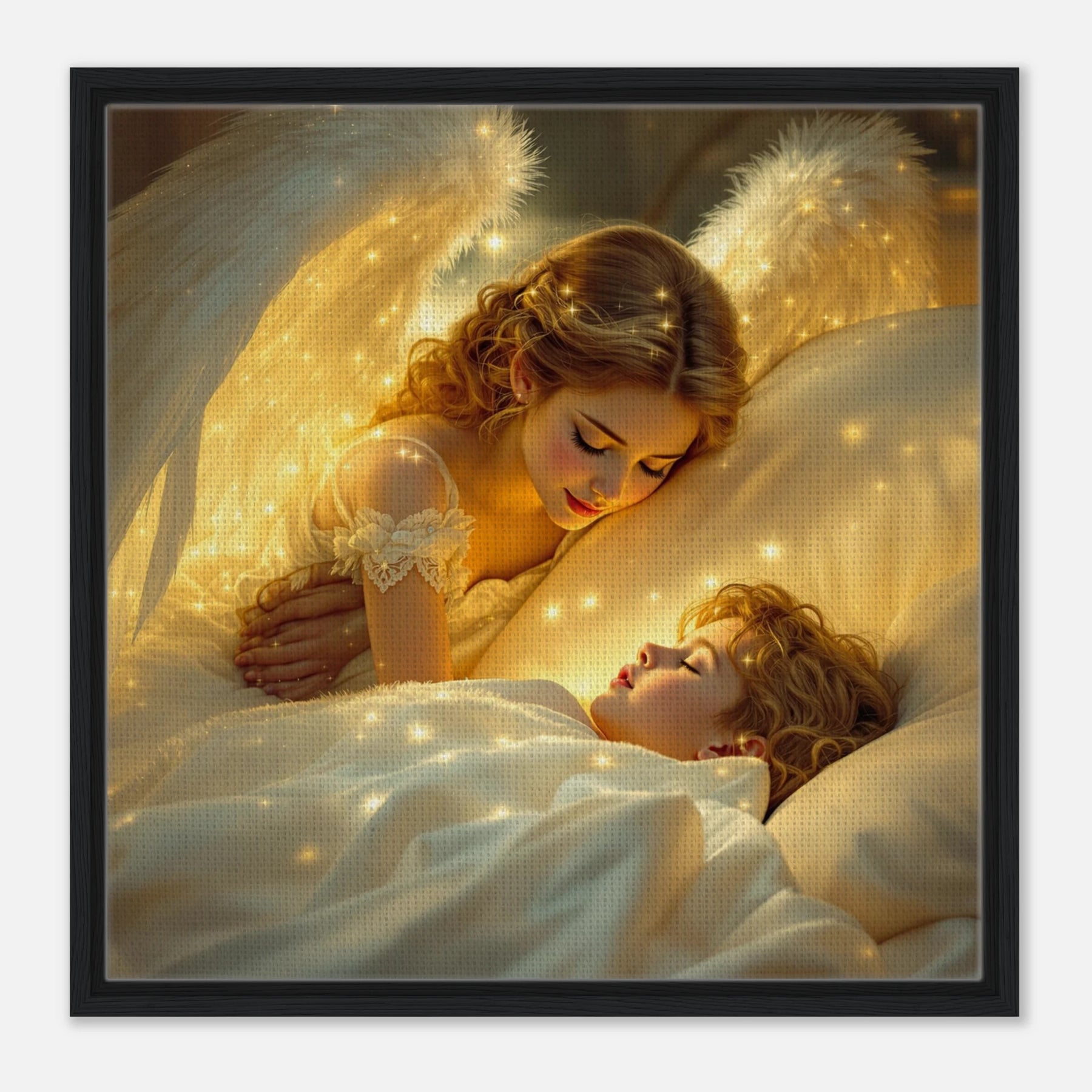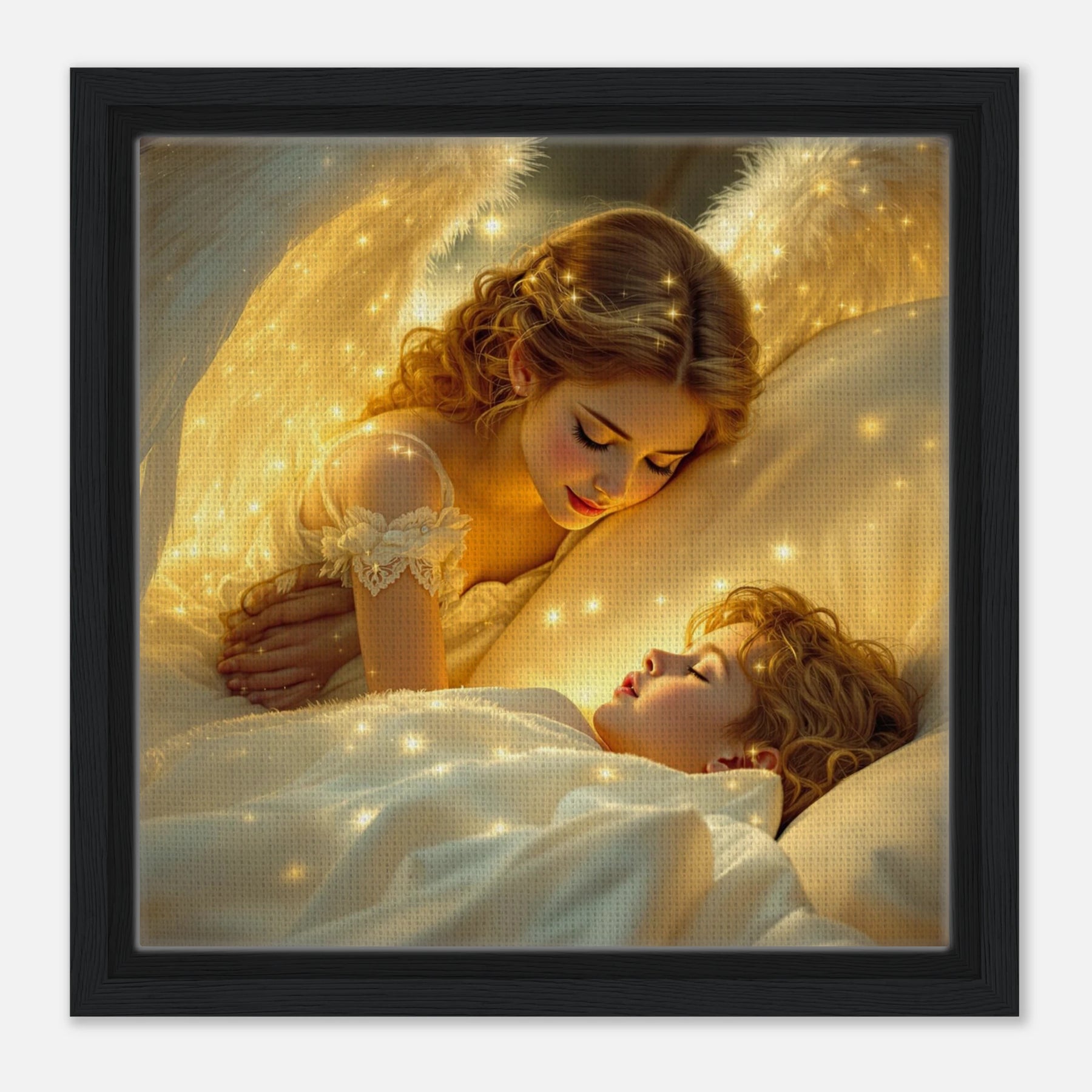 Schutzengel tröstet ihr KInd im Schlaf. Wahre Liebe