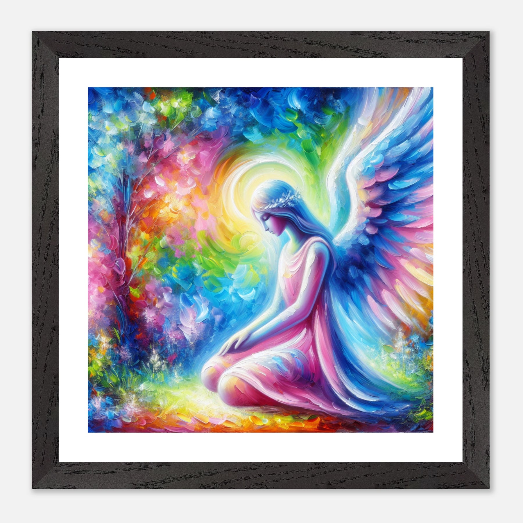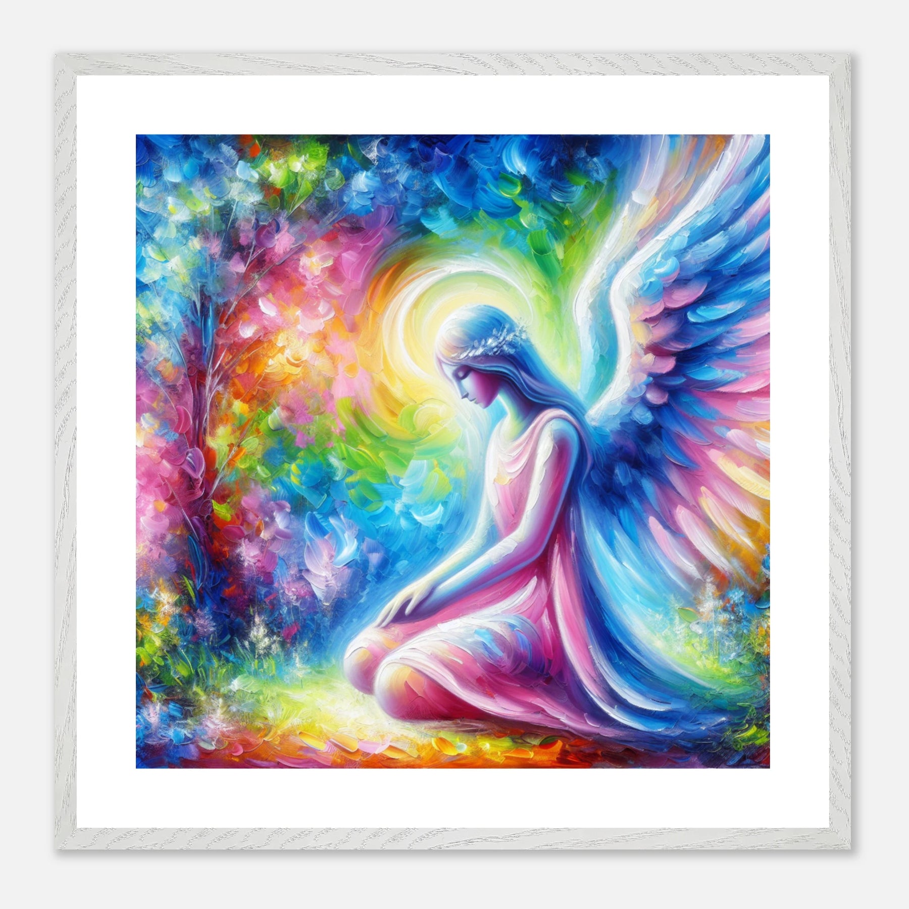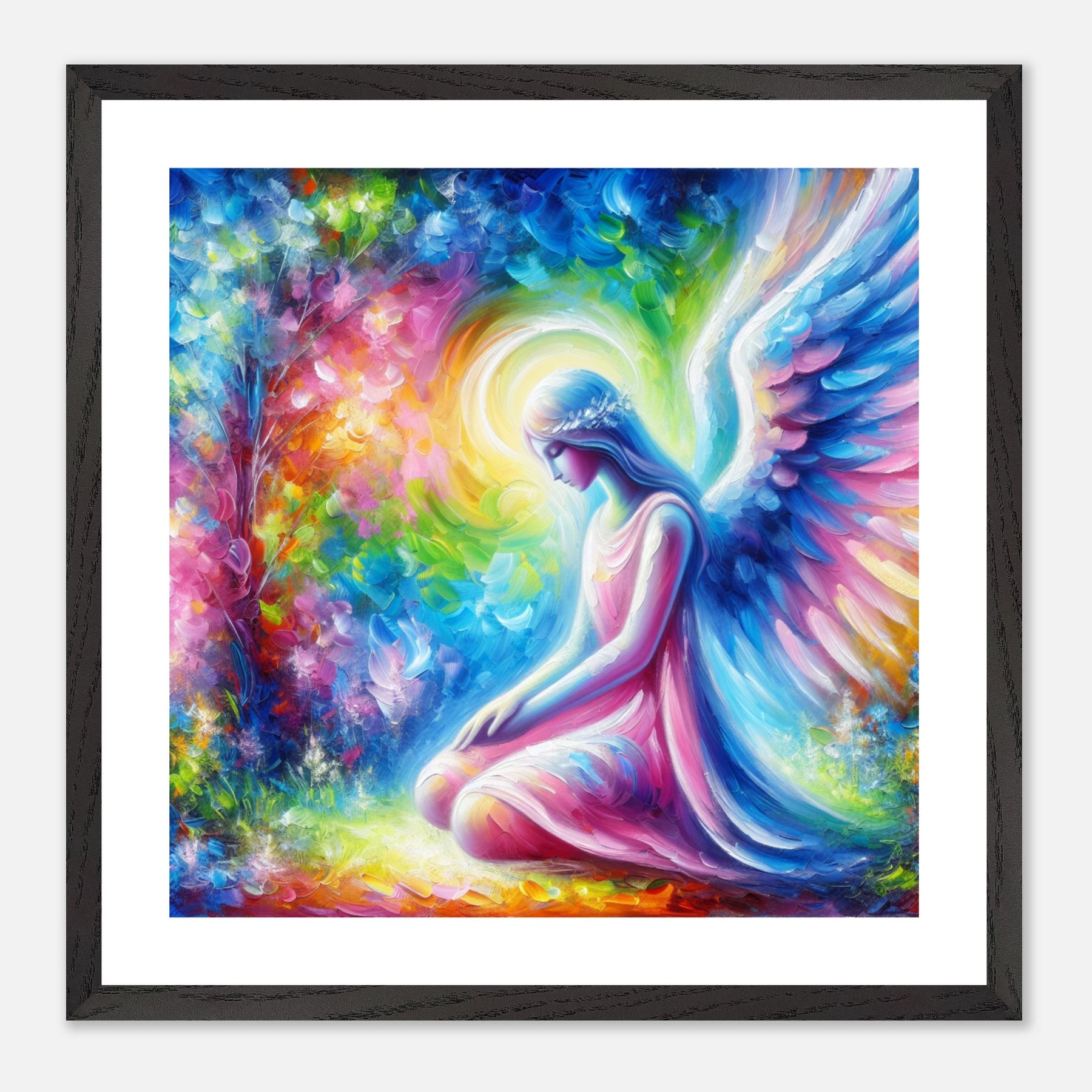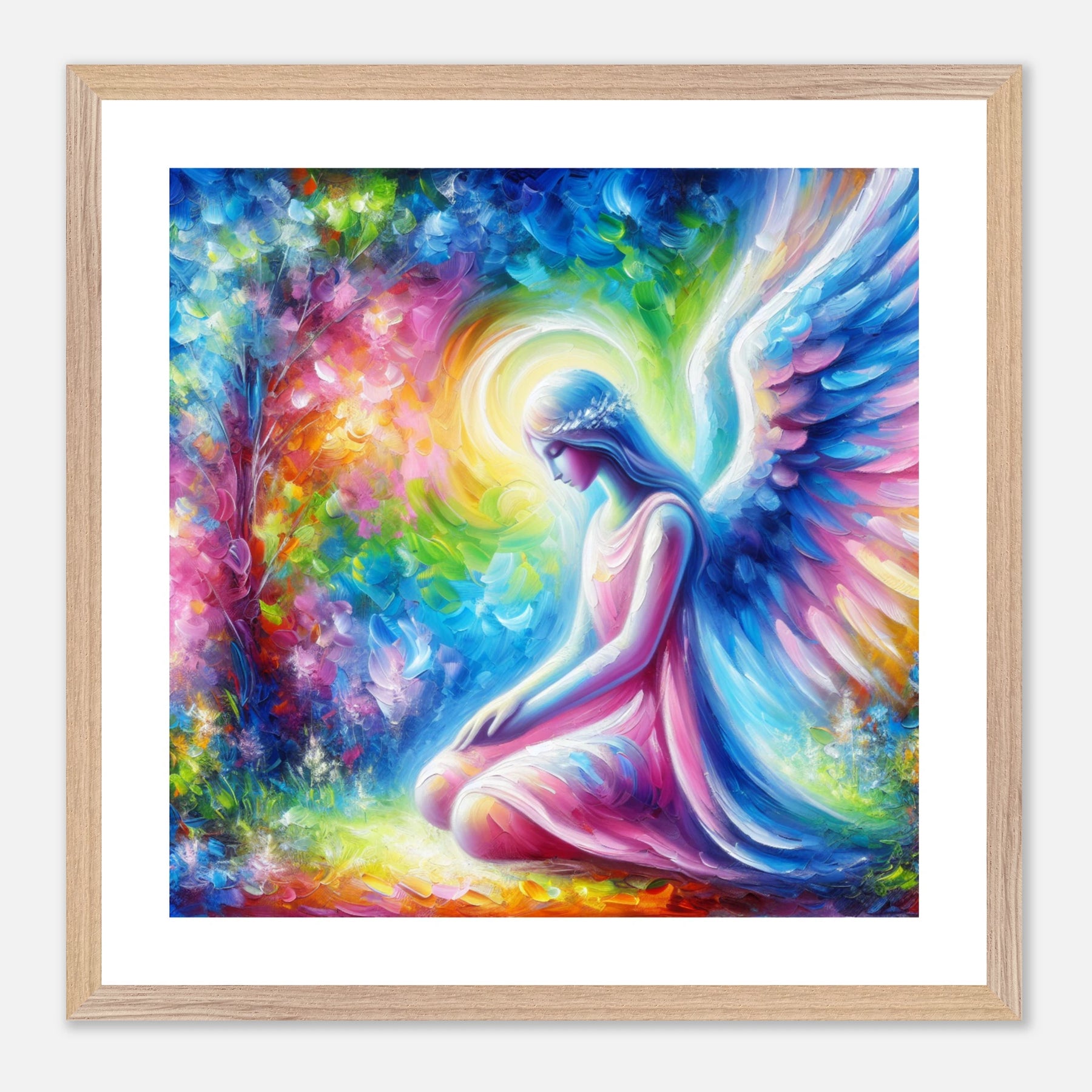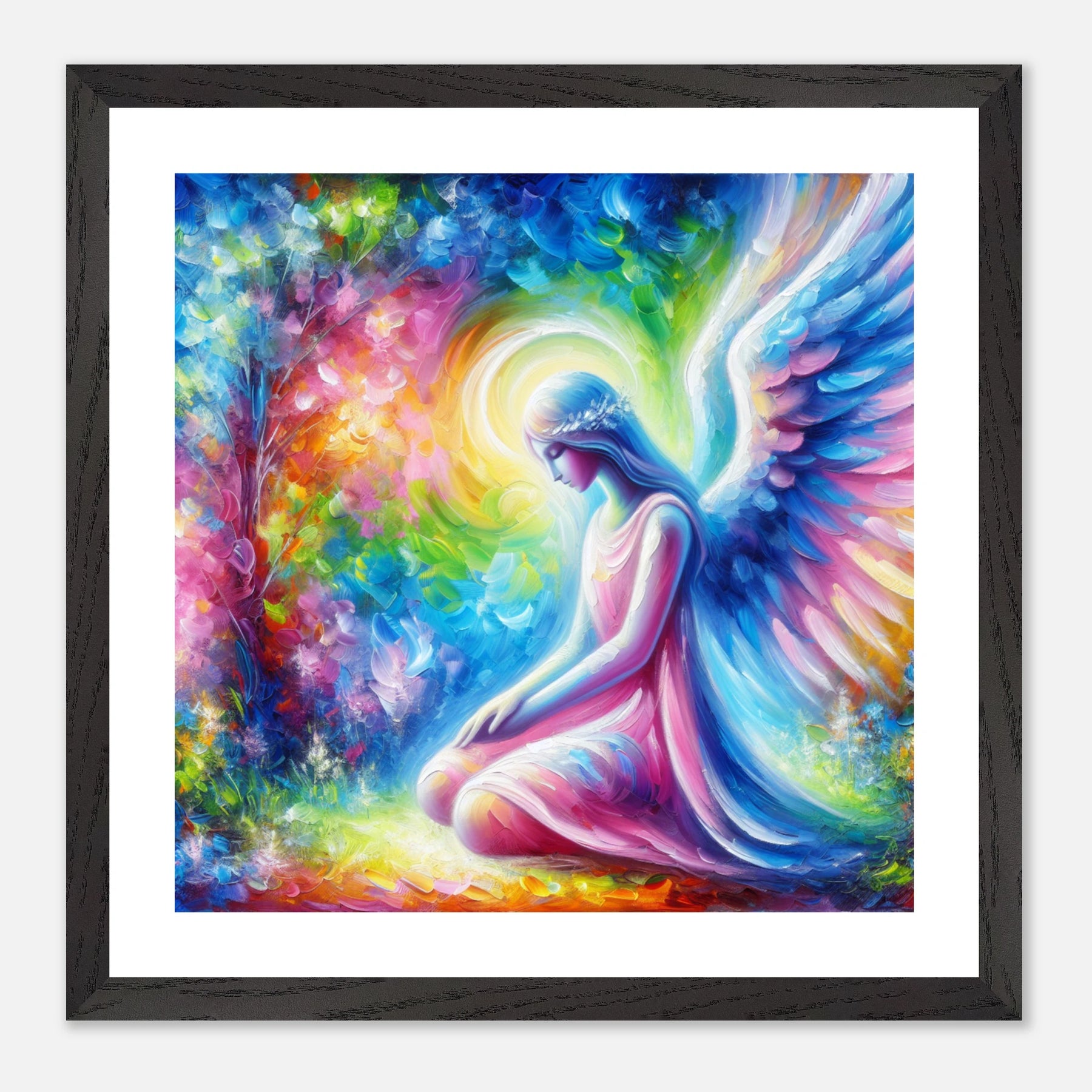 Gerahmtes Premium-Poster: Engel in Acrylfarben gemalt, betet für die Menschheit, farbenfrohe und beruhigende Wandkunst für inspirierende und friedvolle Umgebungen