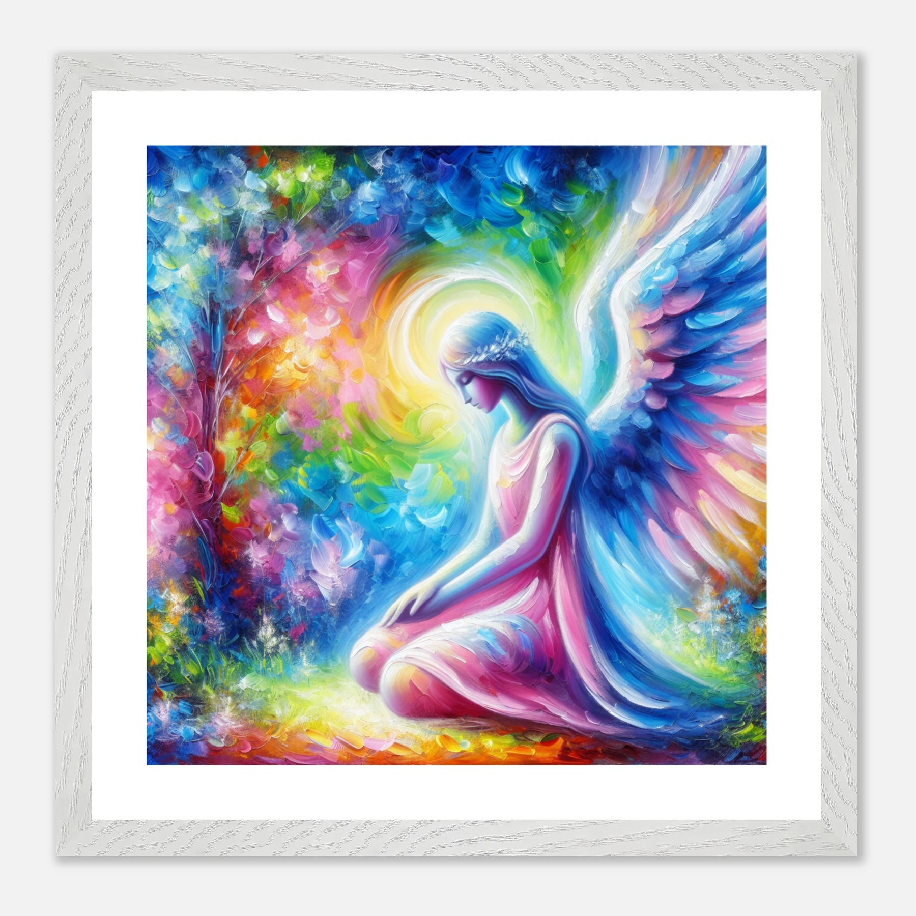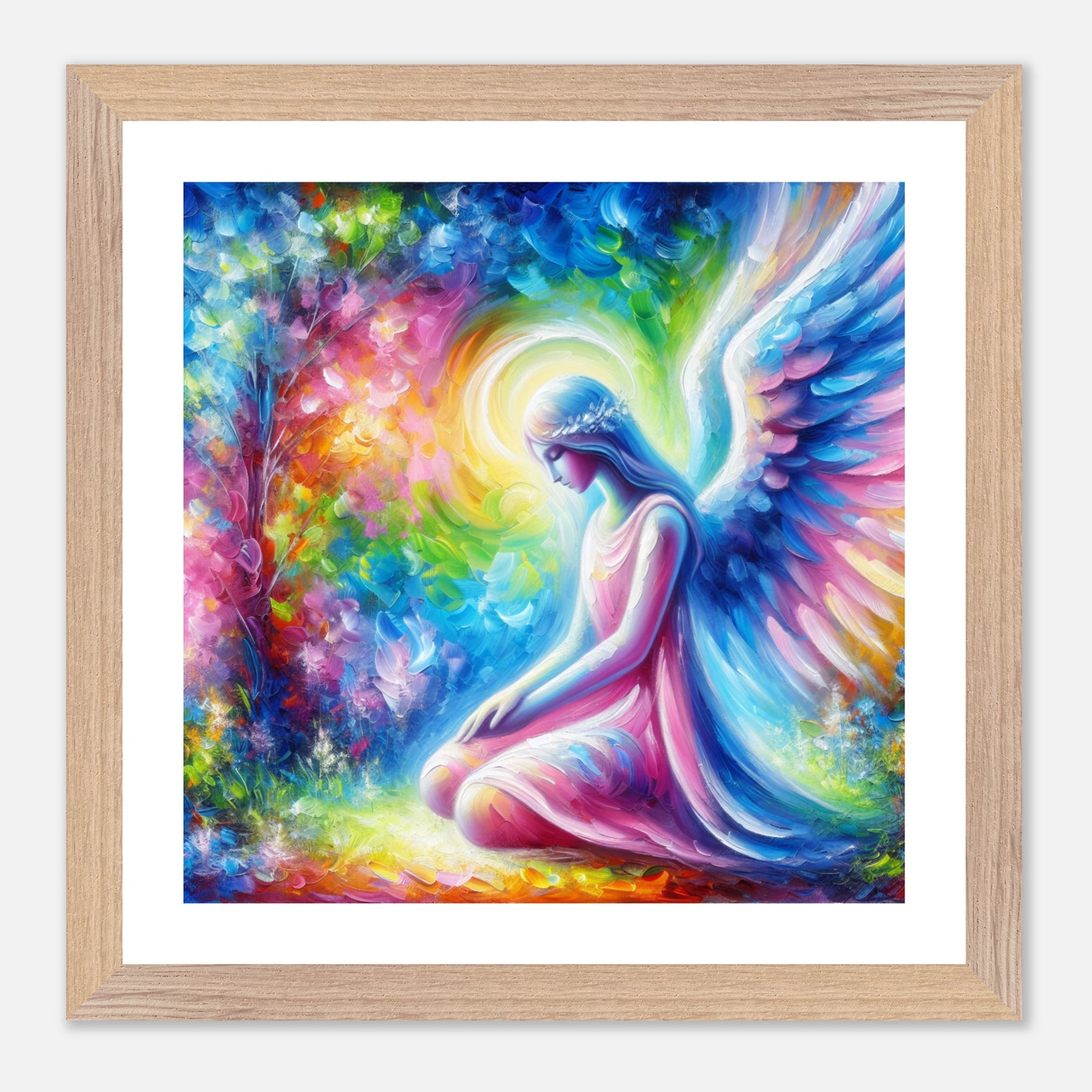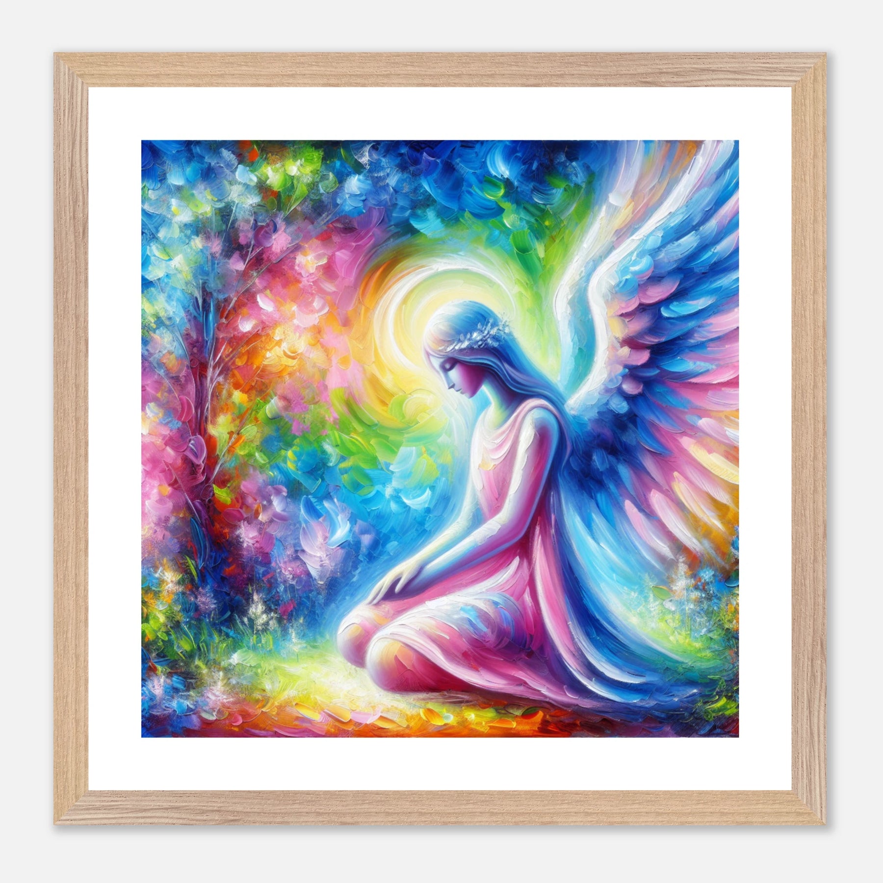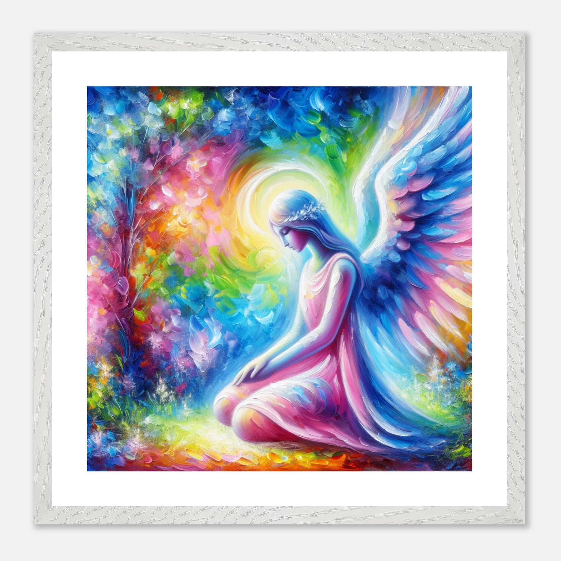 Gerahmtes Premium-Poster: Engel in Acrylfarben gemalt, betet für die Menschheit, farbenfrohe und beruhigende Wandkunst für inspirierende und friedvolle Umgebungen