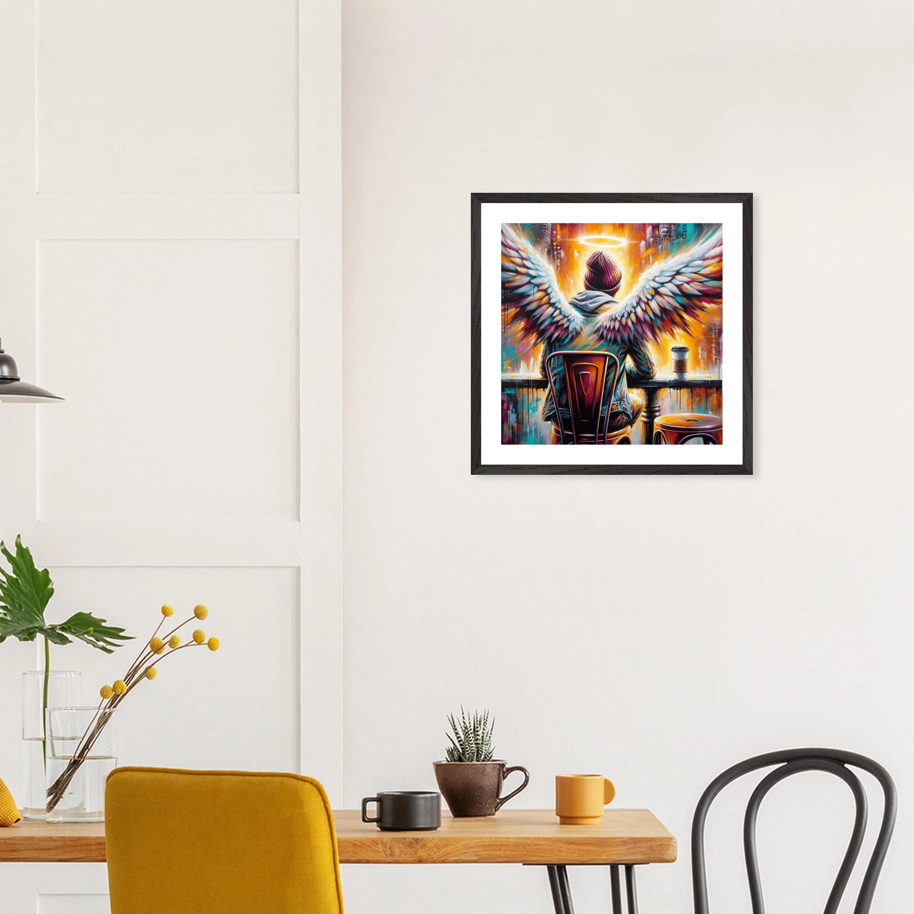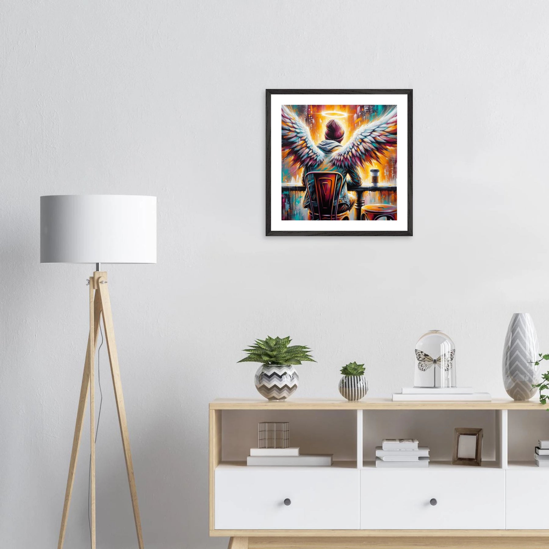 Dieses edle Premium-Poster aus der Urban Angel-Serie bringt urbane Tiefe und moderne Eleganz in deine vier Wände. Der FSC-zertifizierte Holzrahmen und das matte Kunstdruckpapier sorgen gemeinsam für eine hochwertige, langlebige Präsentation deines Motivs.