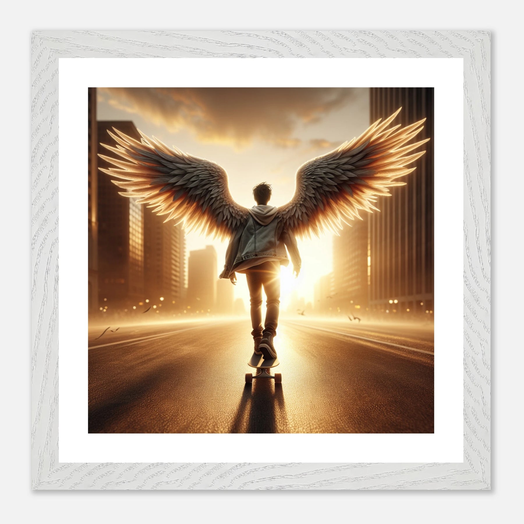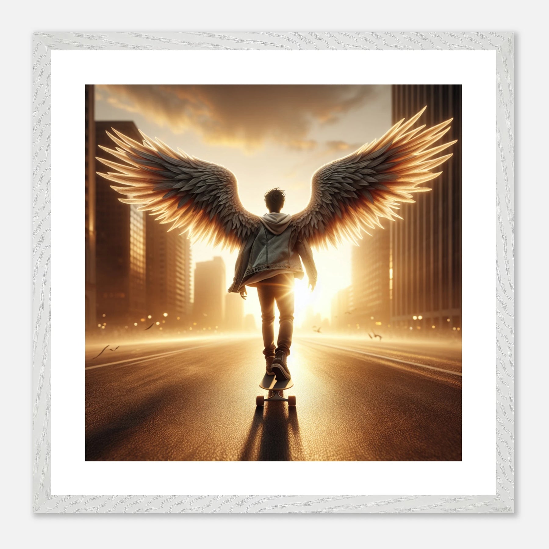 Engel-Skater auf dem Weg ins Jenseits – Golden Hour Guardian Skater Poster, himmlische Reise und Abschied