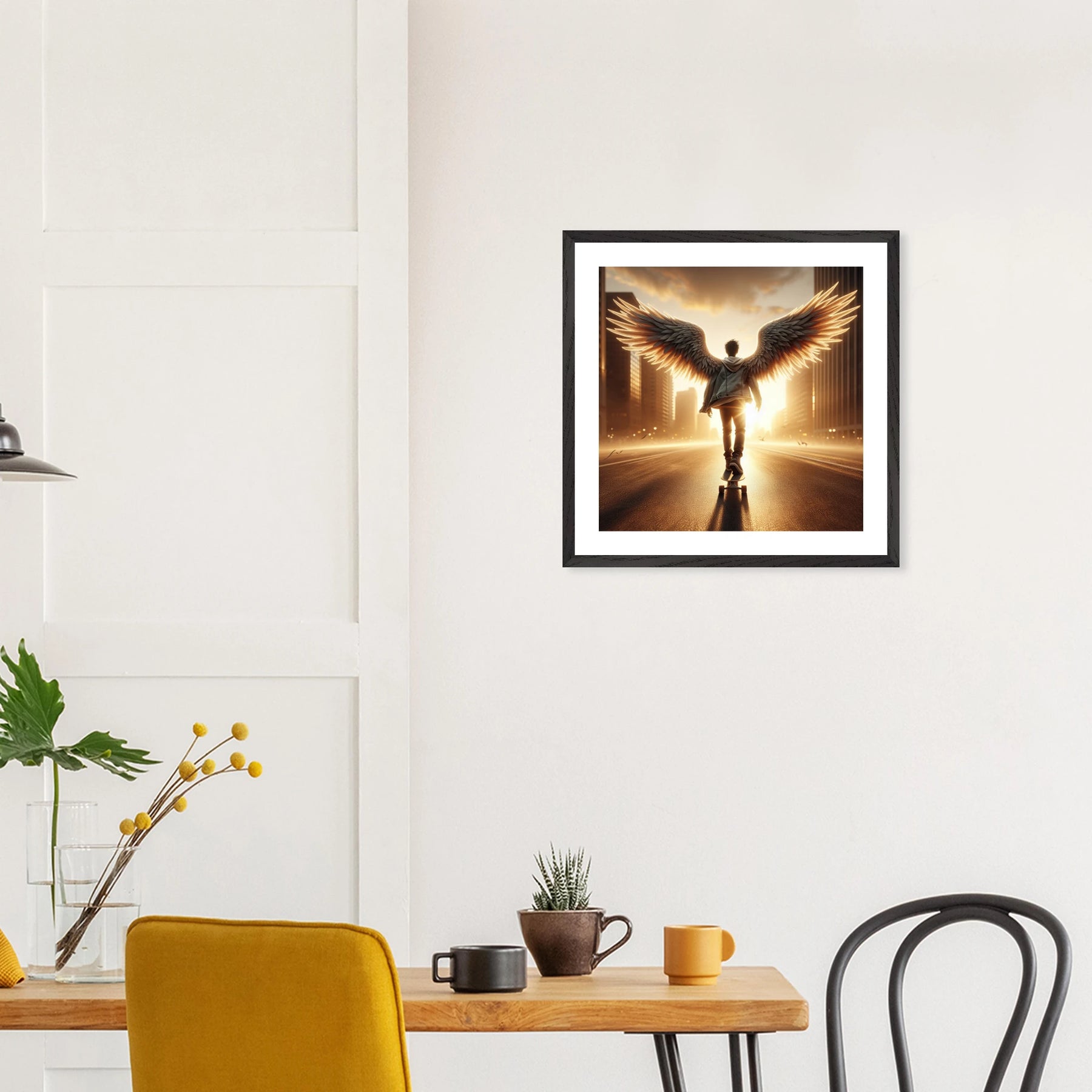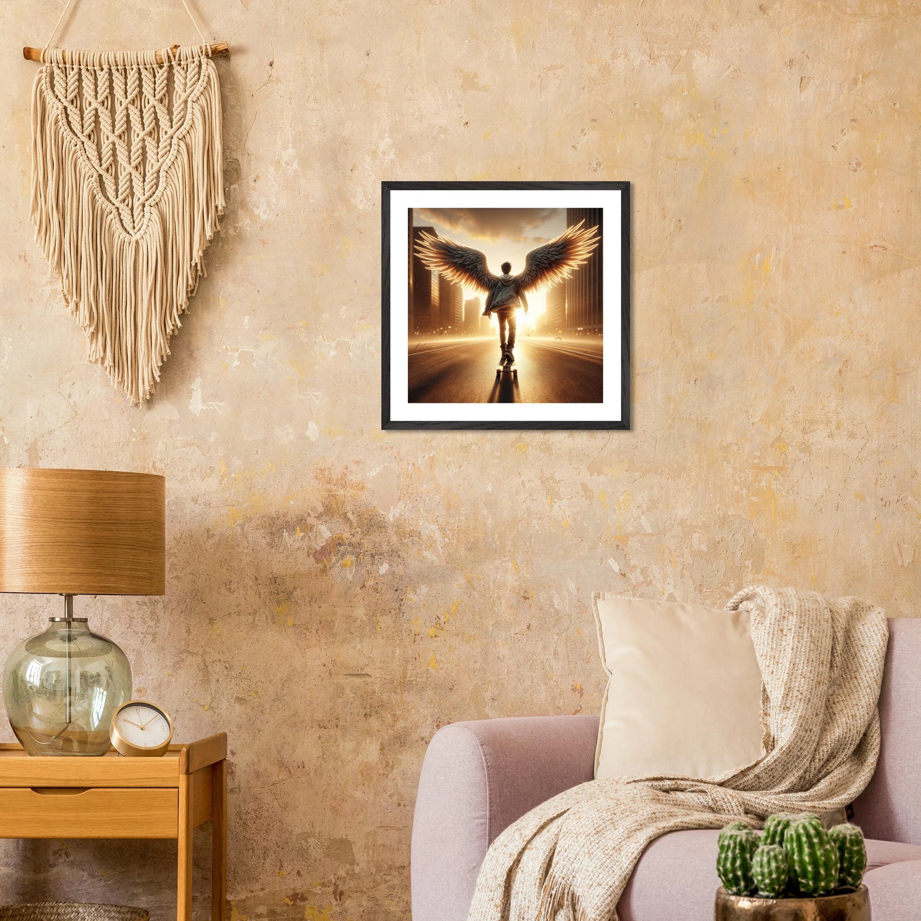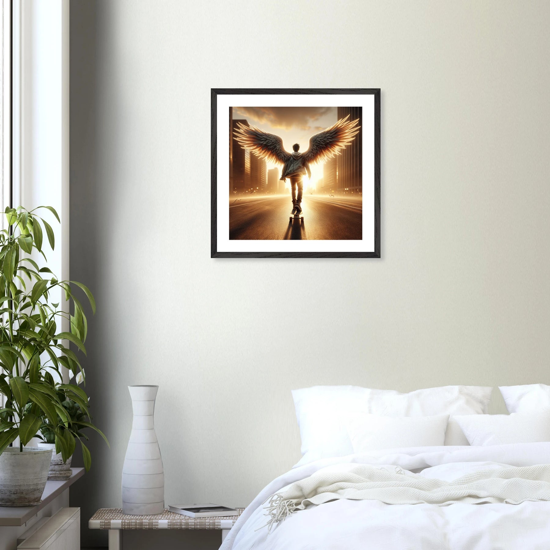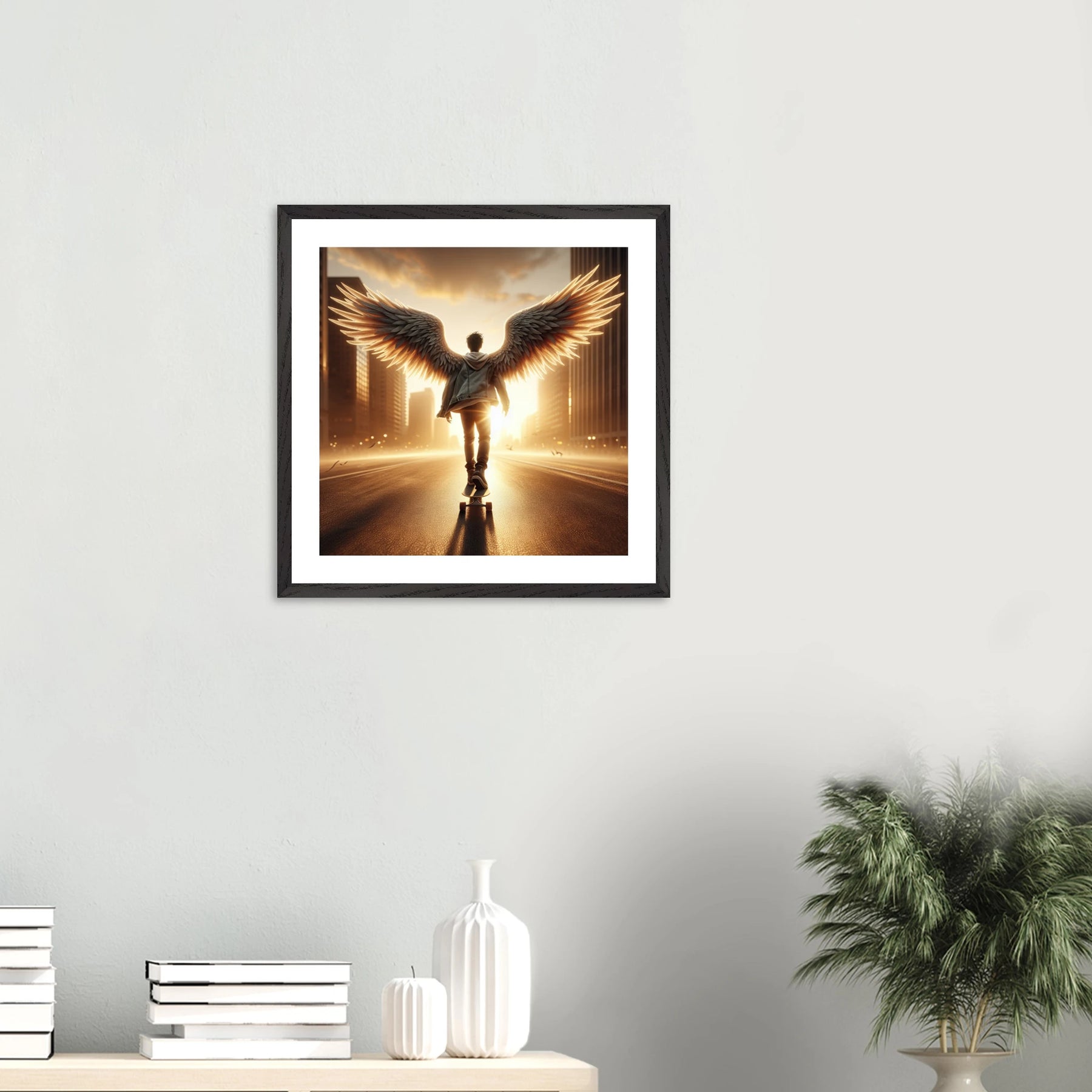 Dieses edle Premium-Poster aus der Urban Angel-Serie bringt urbane Tiefe und moderne Eleganz in deine vier Wände. Der FSC-zertifizierte Holzrahmen und das matte Kunstdruckpapier sorgen gemeinsam für eine hochwertige, langlebige Präsentation deines Motivs.