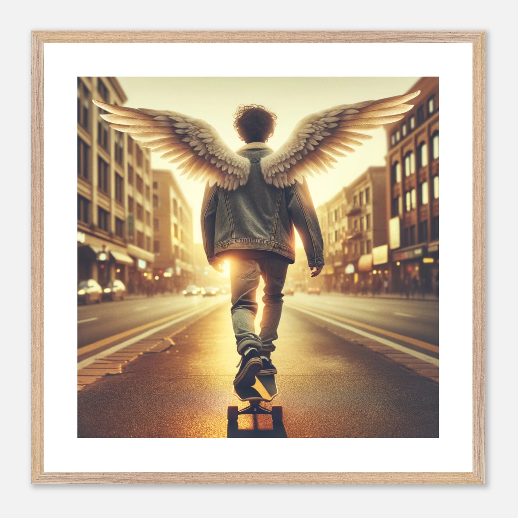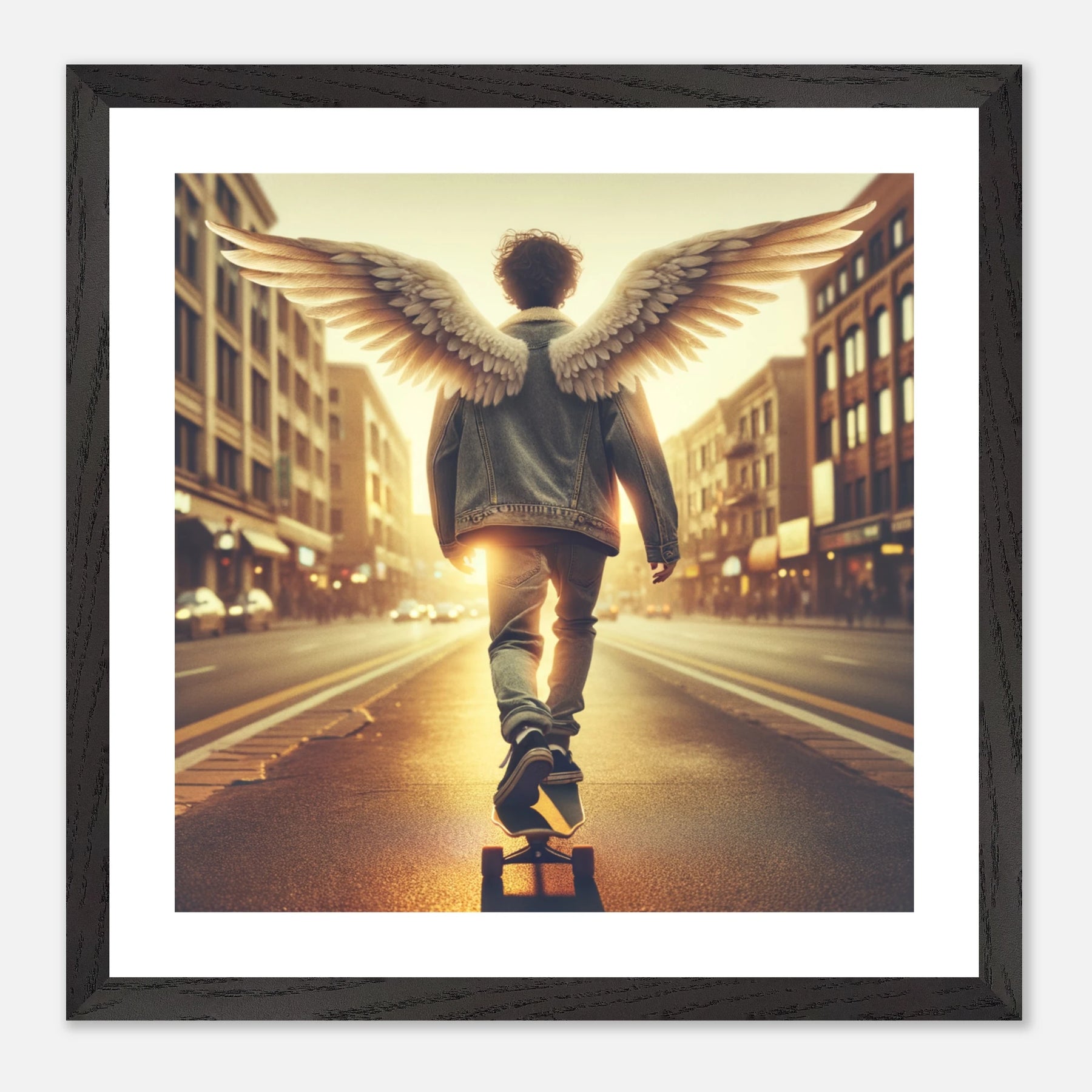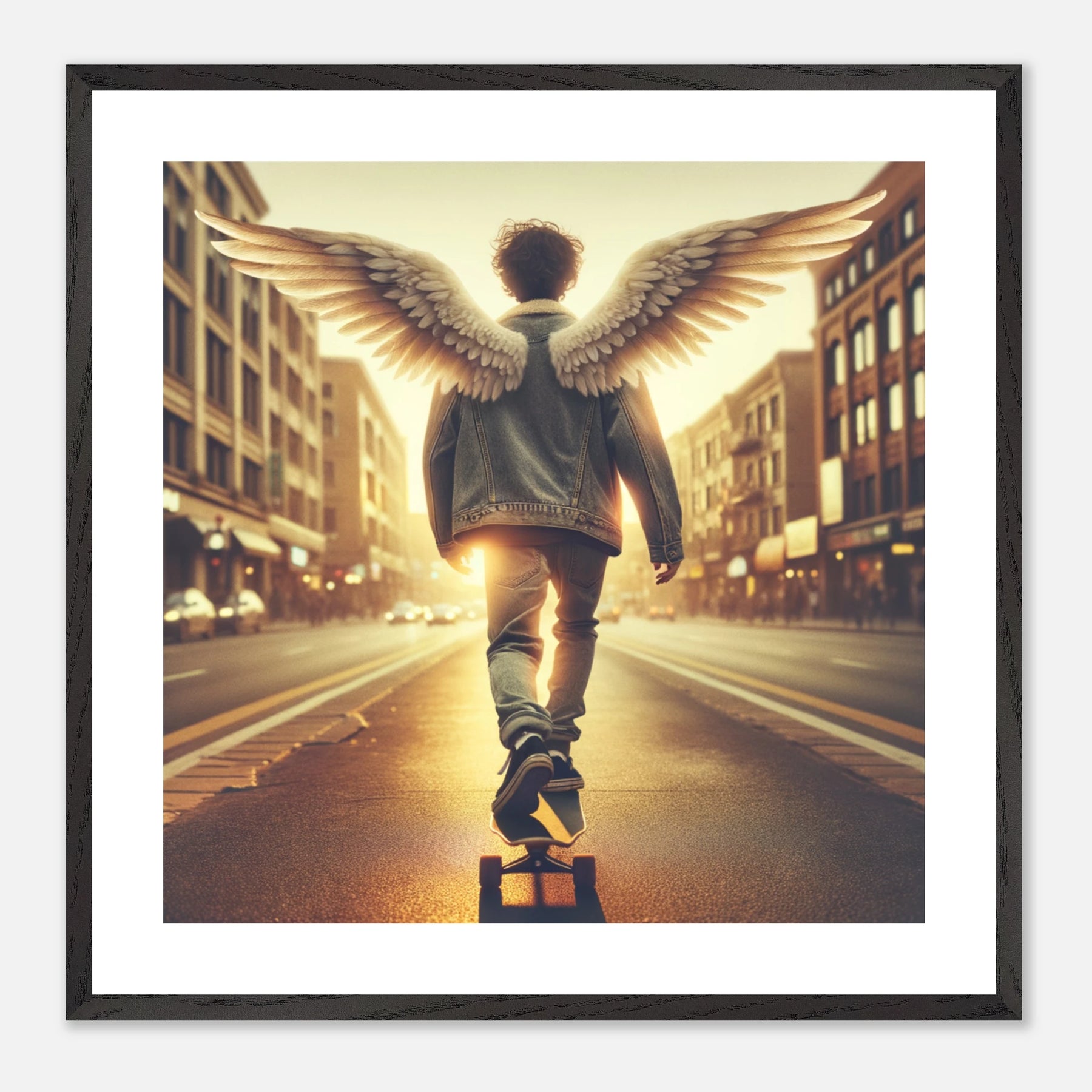 Engel-Skaterkind auf dem Weg ins Jenseits – Golden Hour Guardian Skater Kid Poster, himmlische Reise und Trost